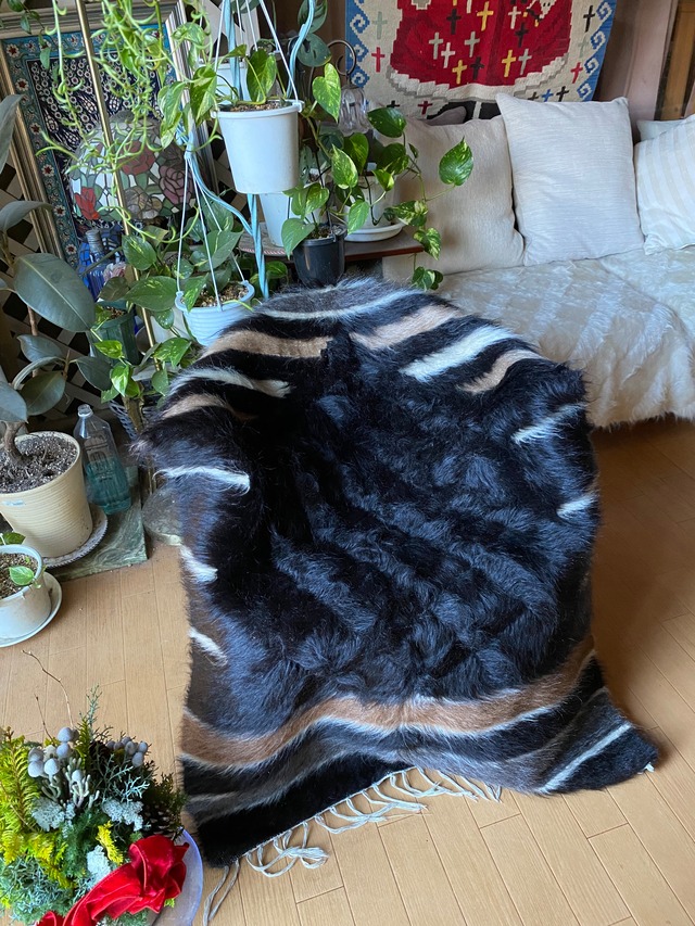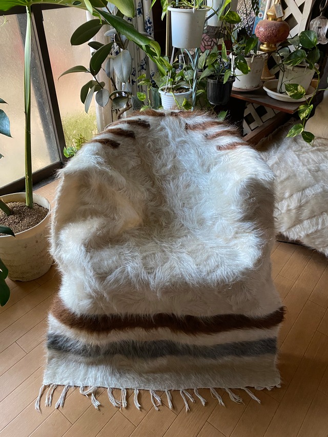 大人気ふわふわ!ヴィンテージシイルトバッタニイェ/アンゴラヤギの最高級のモヘアで織り機で織られた毛布/染料無しの山羊さんの毛のみで人にも動物にも優しい!適度な厚みみもあり、ラグにもちろんベッドカバーやソファカバーにも!バッタニイェは現地直輸入卸売価格の当店で!