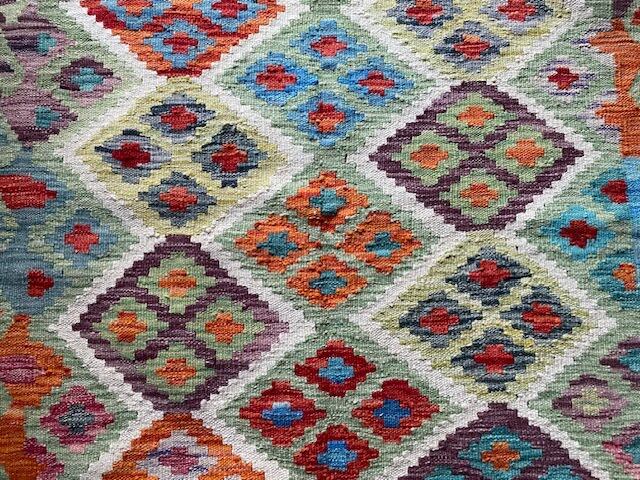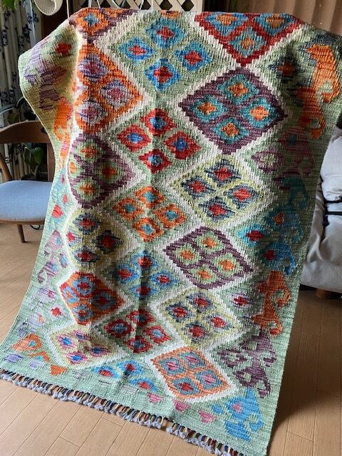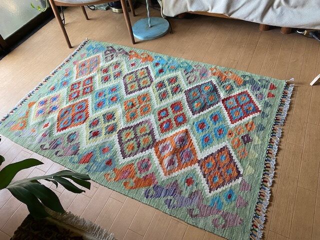 アフガニスタンの素敵なキリムをご紹介させていただきます。 日本ではご紹介されていない当店のみの素敵なキリムです。 新しいキリムになります。 ウールで織られています。 アフガニスタンはバルーチを始め、大変質の良いウールで織られた味のある部族系のキリムや絨毯が多いです。 こちらは、新しいニューキリムと呼ばれるキリムで、もちろん100%ウールです。 草木染をつかい、カラフルで、とても素敵なキリムで、観葉植物にもあう素敵なキリムです。是非お部屋のアクセントに 手に入れませんか? 今回お試しで仕入れましたのでかなりリーズナブルにご紹介しております。在庫は数枚のみの為、ぜひ手に入れてください。 素敵なキリム、絨毯は、30年近いトルコ在住経験があり、25年の販売実績のある当店で手に入れてください!
