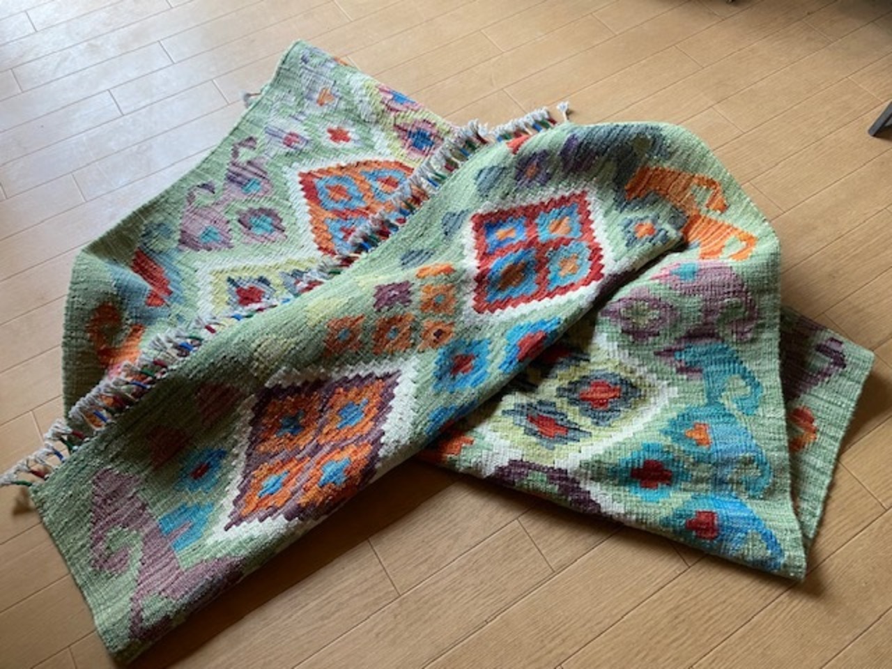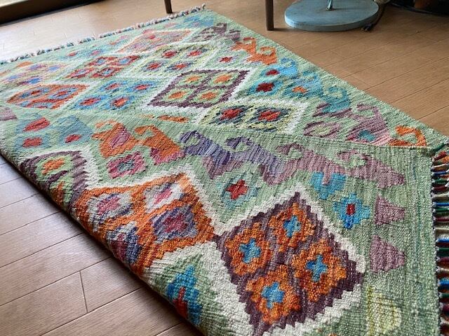 秋からキリムのある素敵な暮らしをご提案!147×100リビングやダイニングにピッタリ!ウール100手織り草木染アフガニスタンキリム送料込