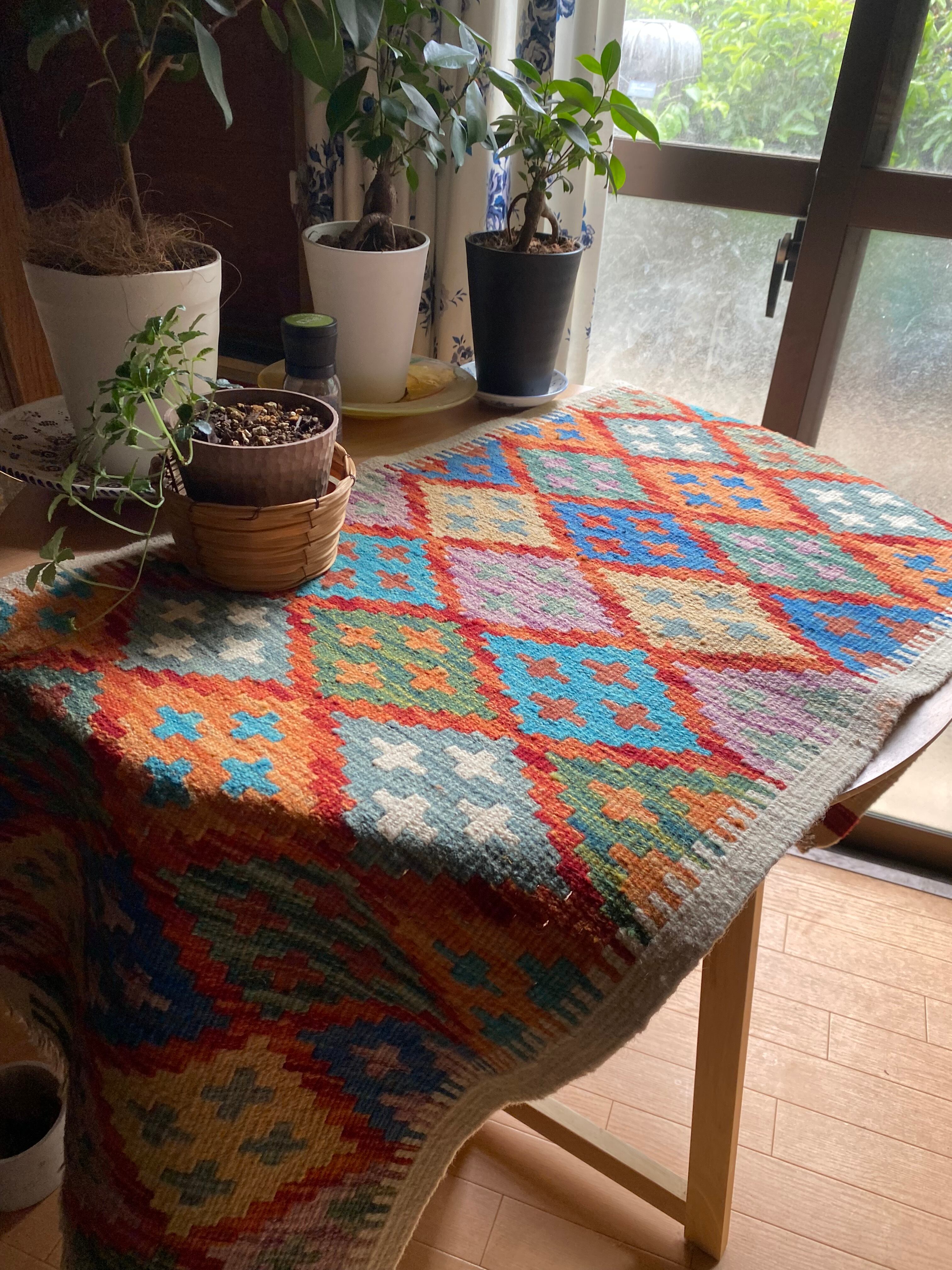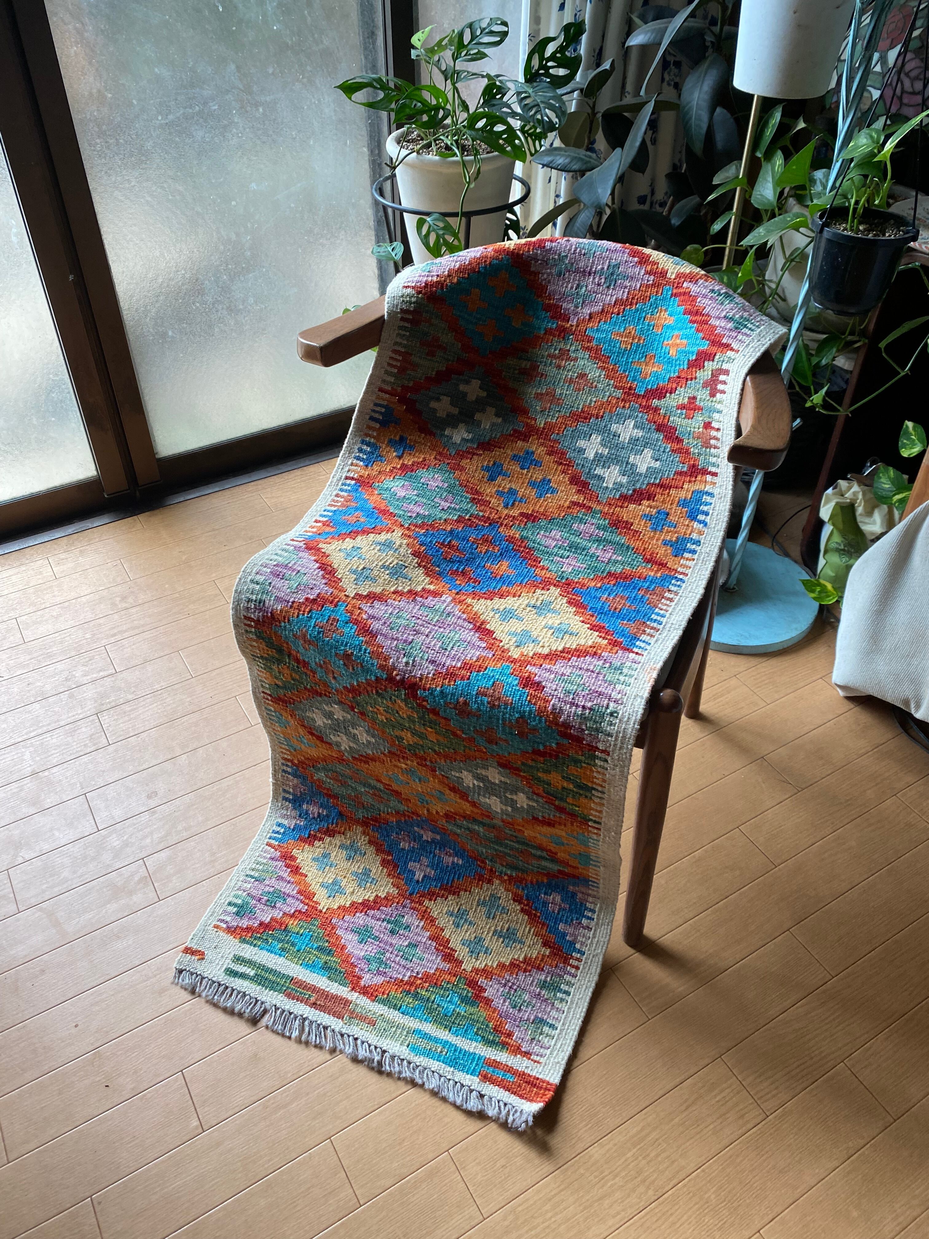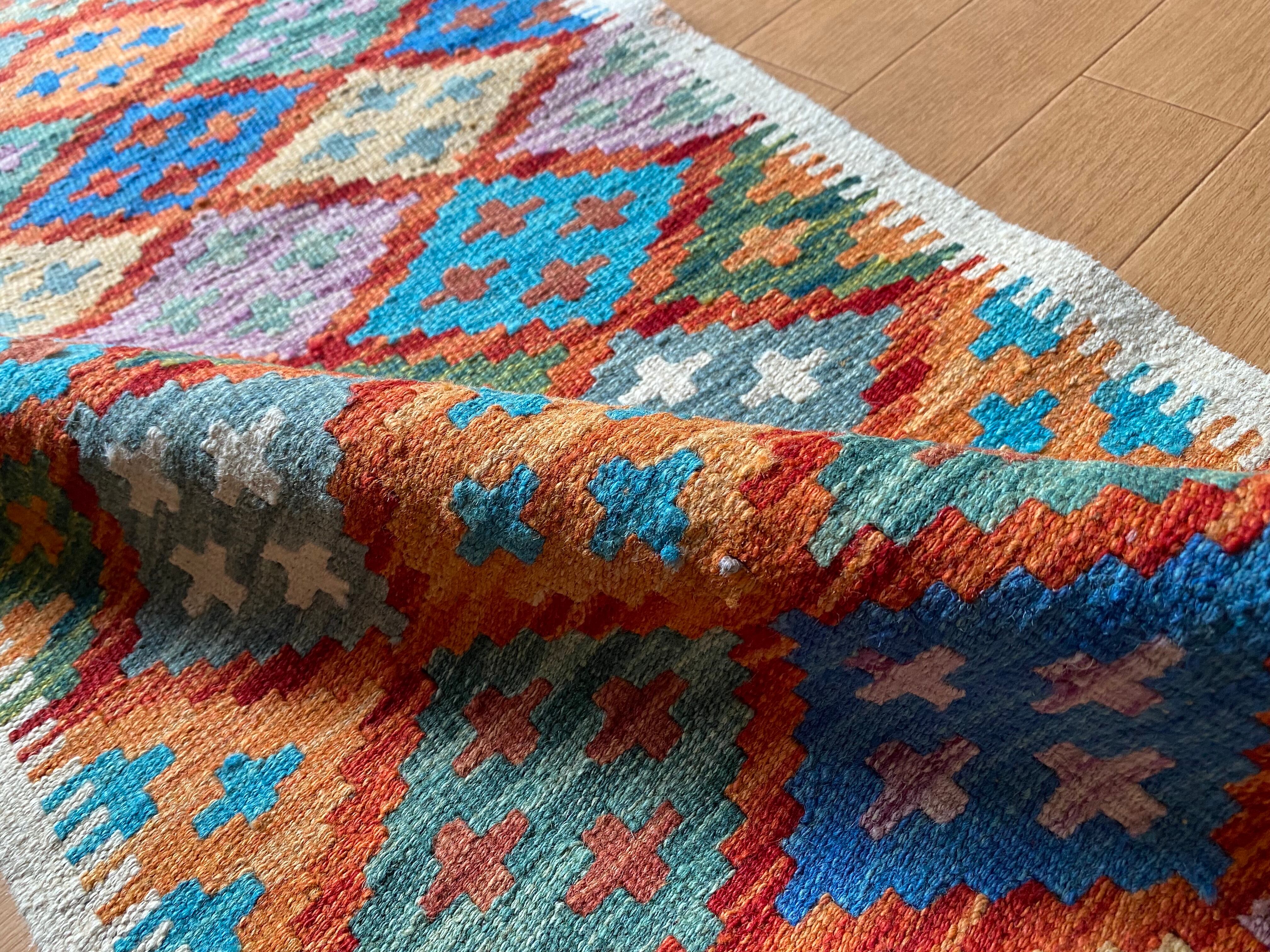 キリムの季節到来!一枚あれば簡単にお部屋の模様替え!とても織りと色柄の良い素敵なアフガニスタンのキリム和室にも合います!送料込み
