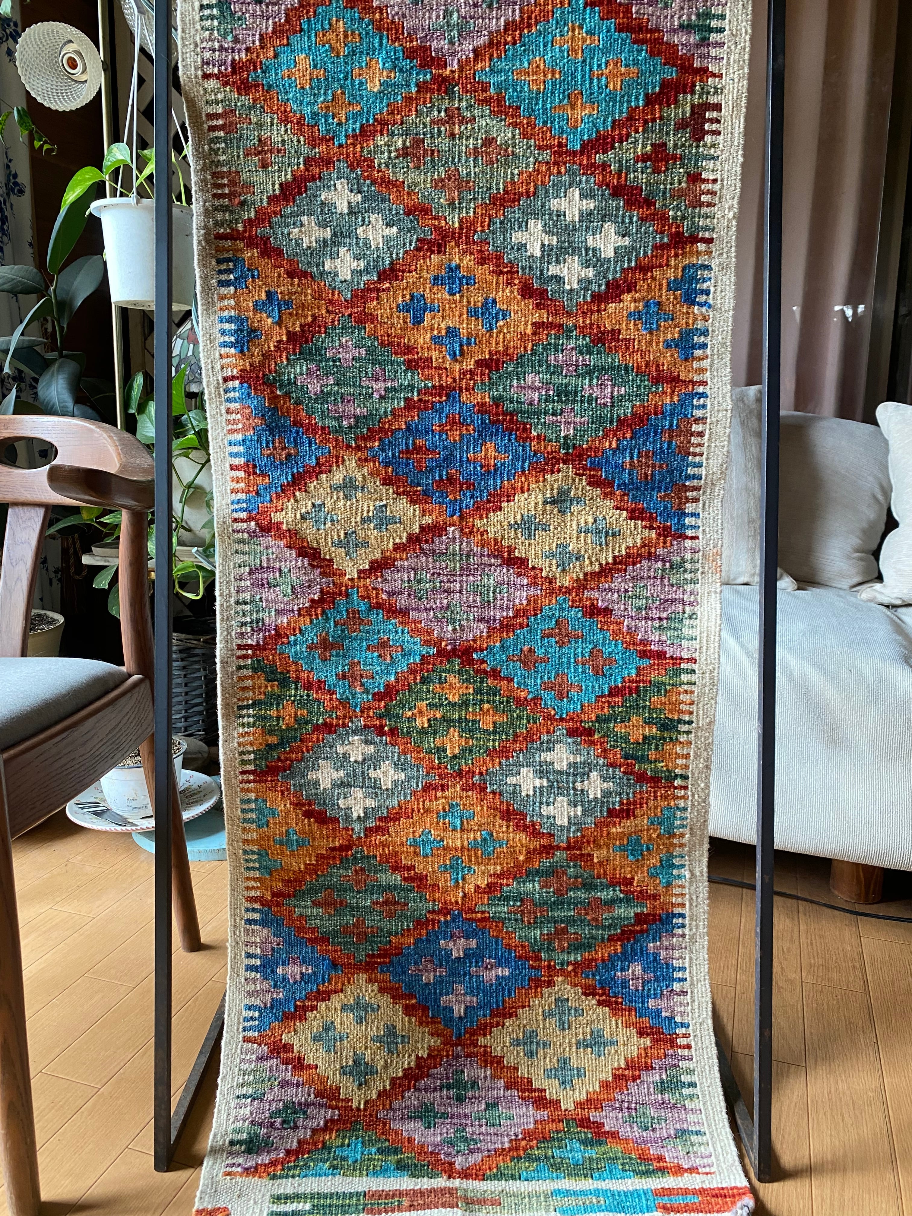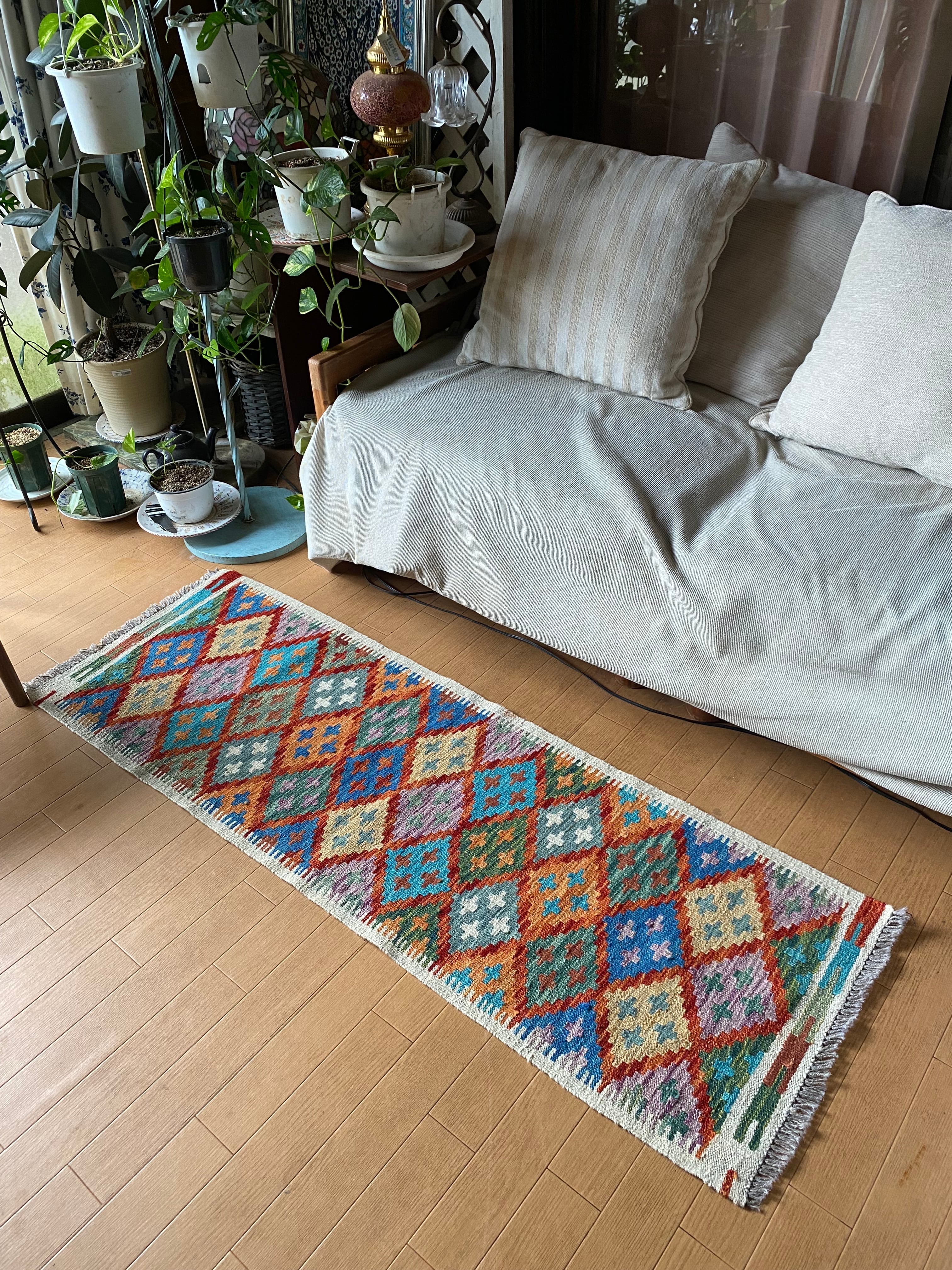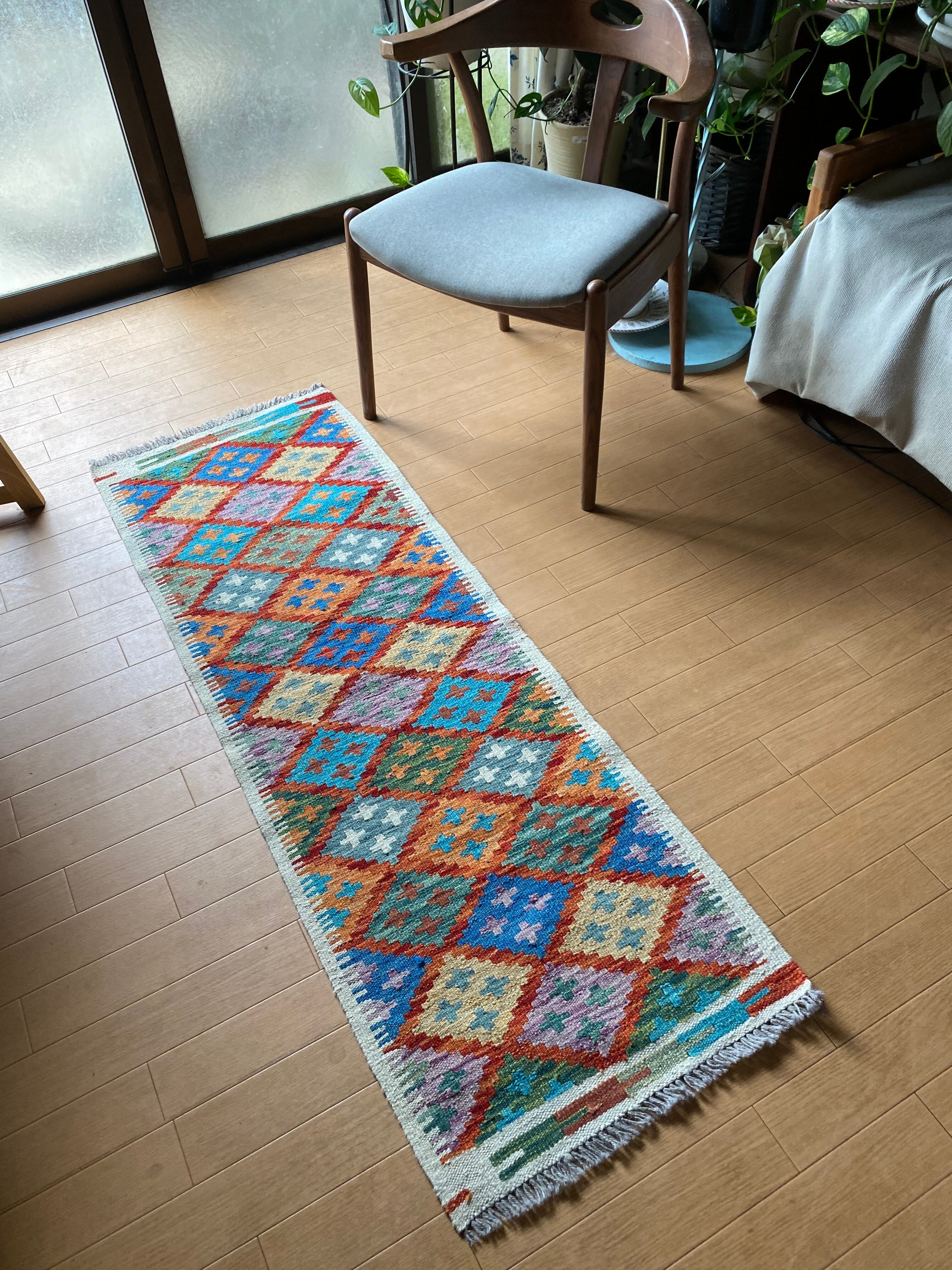 キリムの季節到来!一枚あれば簡単にお部屋の模様替え!とても織りと色柄の良い素敵なアフガニスタンのキリム和室にも合います!送料込み