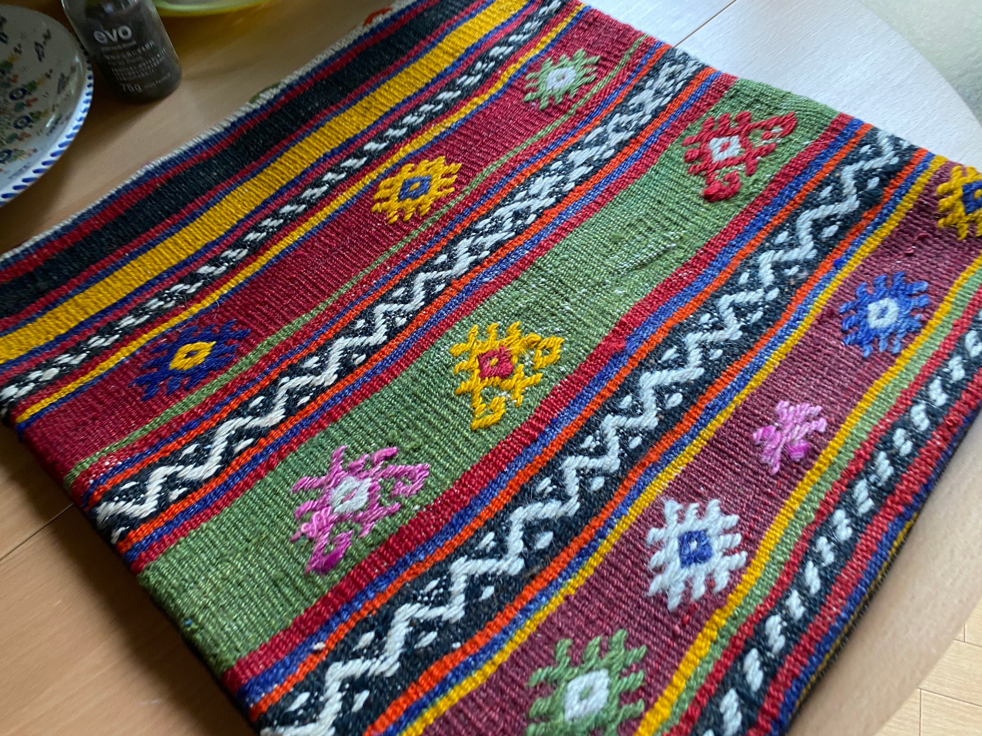 キリム初 めての方もこのクッションカバーを手に入れれば絶対にキリムがお好きになるは ず!まずはだまされたと思ってご入札ください!!クッション1枚から始まるキリ ムの世界です!!ぜひ現地よりいいものを手に入れてください!