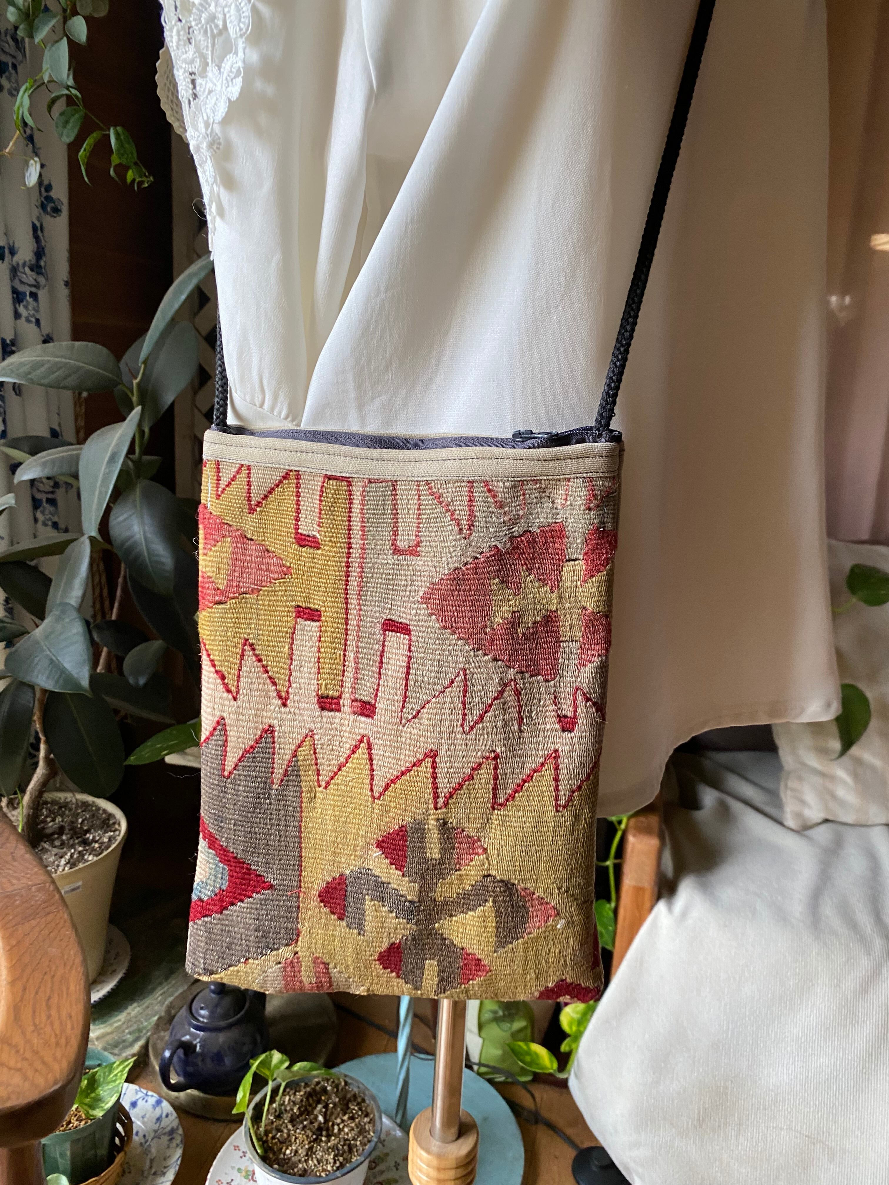 トルコ直輸入!素敵なキリムサコッシュ(ポシェット)はキリム絨毯販売25年以上の当店で!便利で素敵!壁にいくつ飾っても!カイセリ産使用