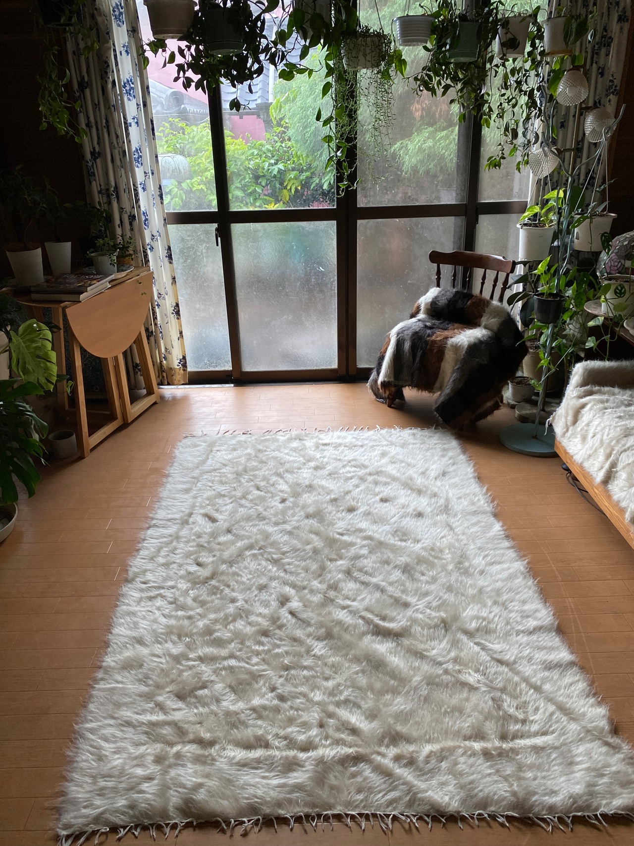 冬は毛がある面で、夏は裏面でキリムとしてお使いいただける優れものです。