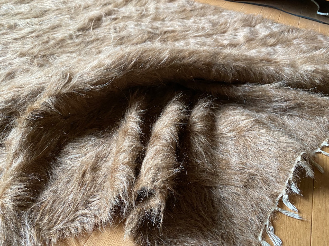 ほぼ新品未使用ですが、40年ほど織られたもので今織られたものよりさらに密でモヘアの質が大変良いです。新古品になります。