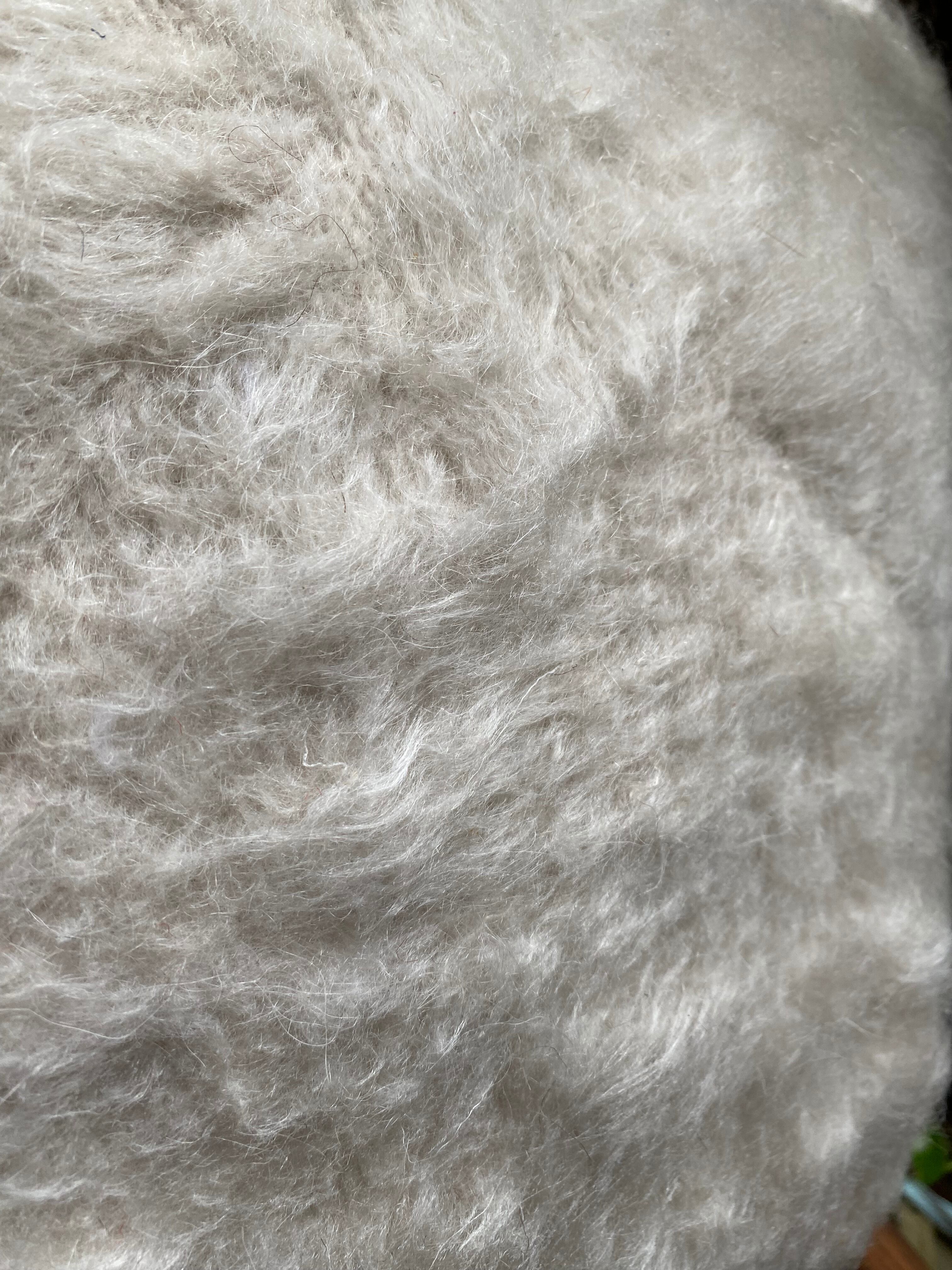 自然のヤギの毛で織られていますので、独特のくるくるとした感じも可愛く、とてもナチュ ラルな感じです。アンゴラ山羊は18世紀の中ごろまでオスマントルコが飼育を独占していたらしいです。 その後改良され、良質のモヘアとして世界的に発展していったそうです。モヘアと言えば、カシミヤと並ぶ素材ですね。山羊の毛ですので、羊より高級で暖かです。