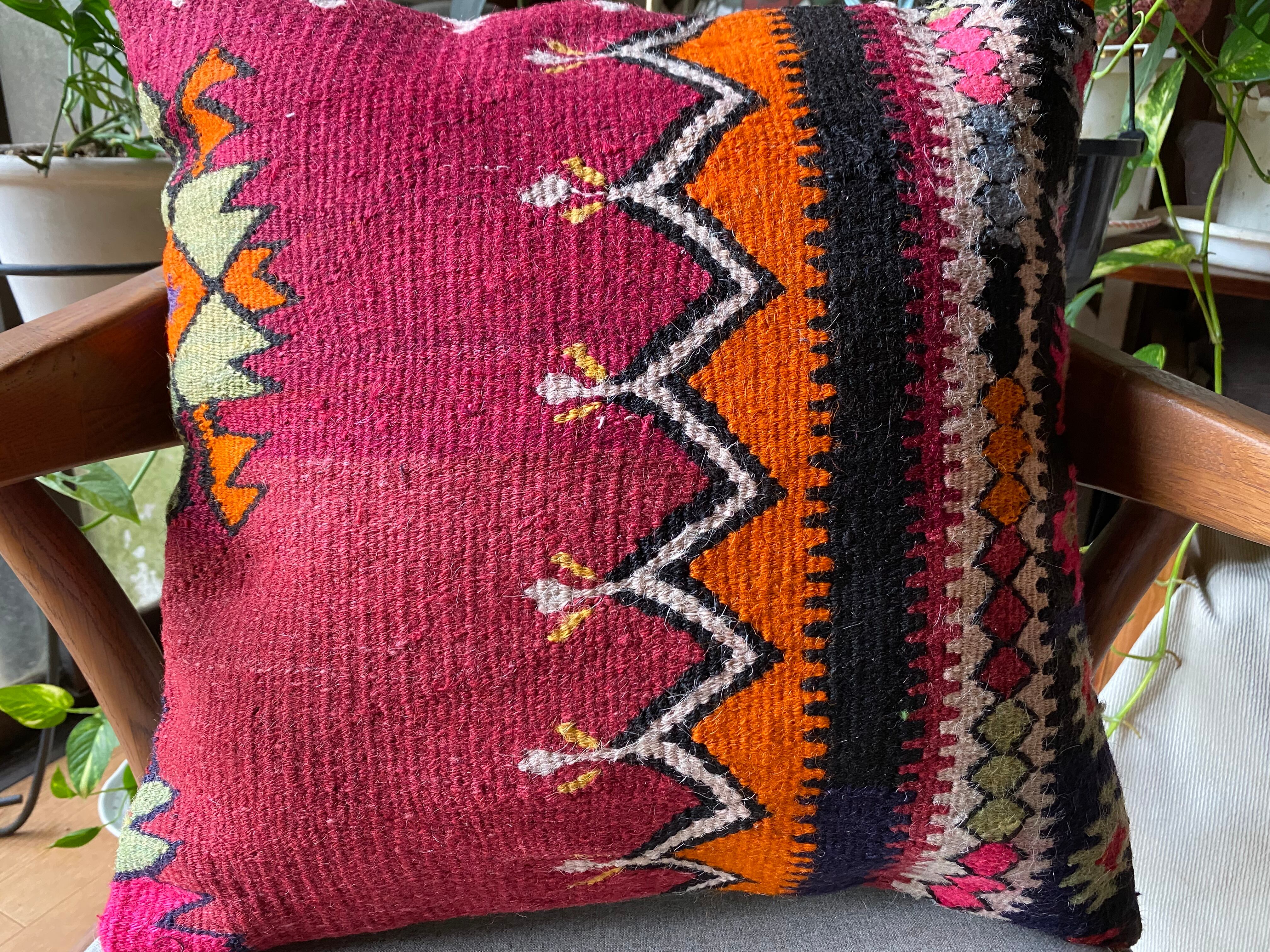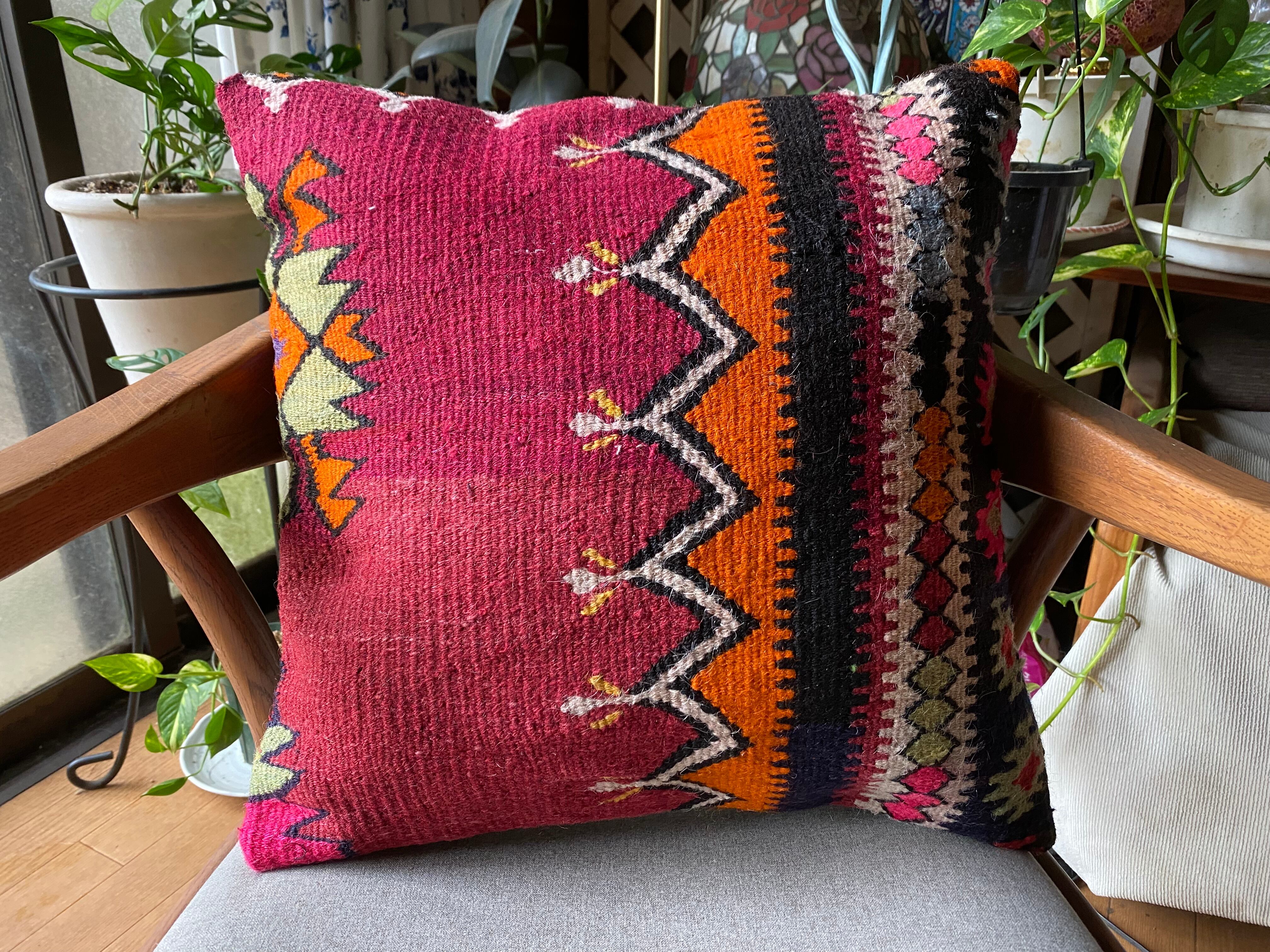 トルコ直輸入!キリムのある生活トルコの東アルメニアとの国境カルスらしい色合いと柄が素敵なしっかり織られたキリム使用クッションカバー