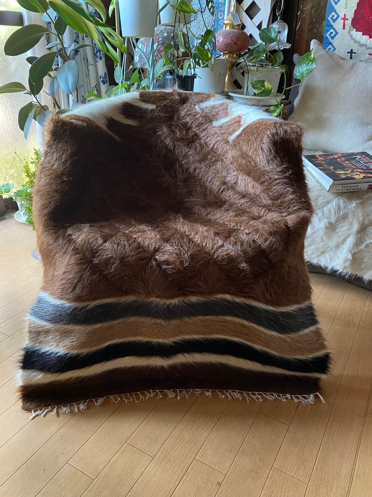 こちら通常の新しいシイルトバッタ二エにくらべ、毛量が多めの素晴らしいアンゴラ山羊100%のシイルトです!