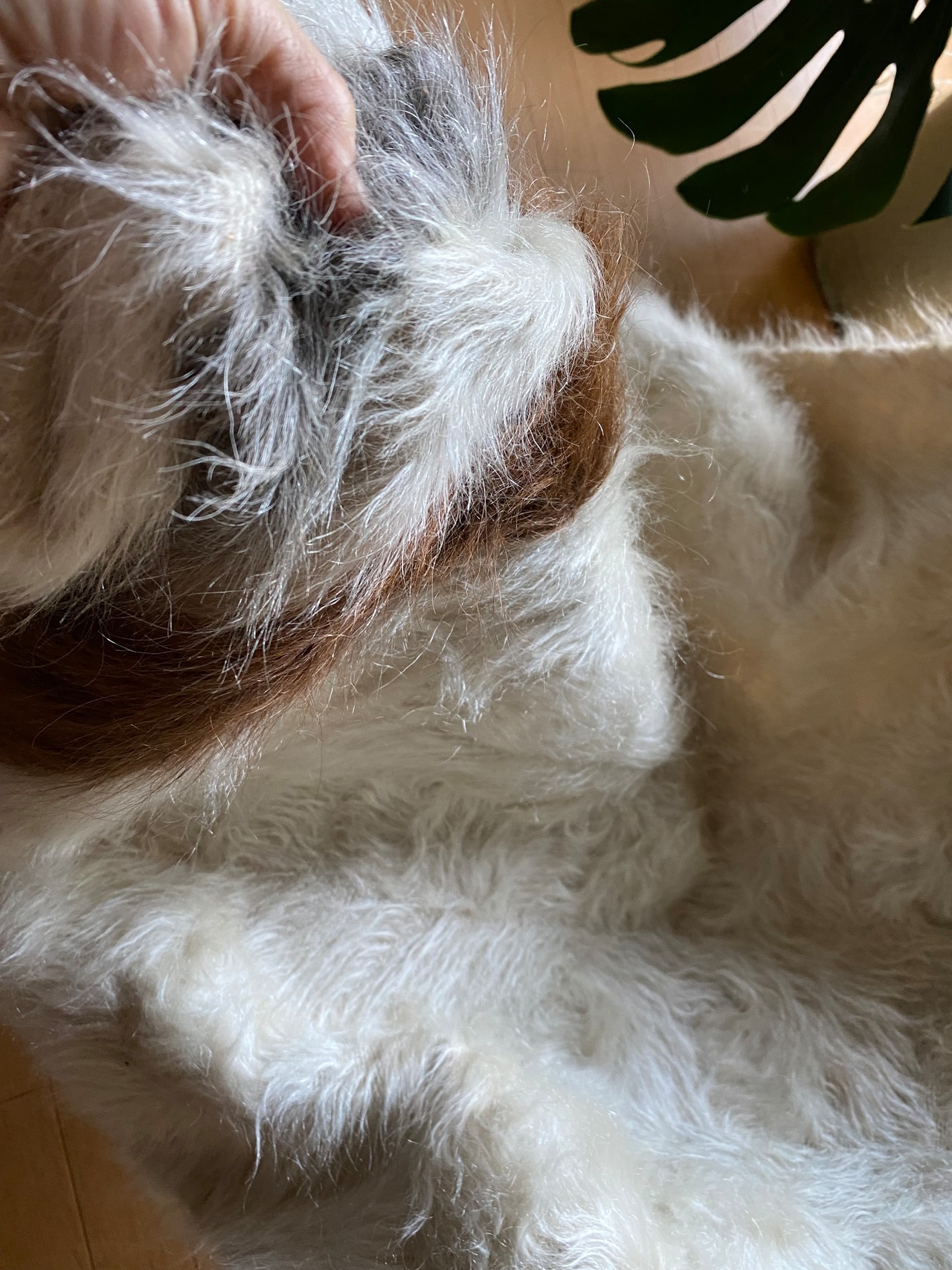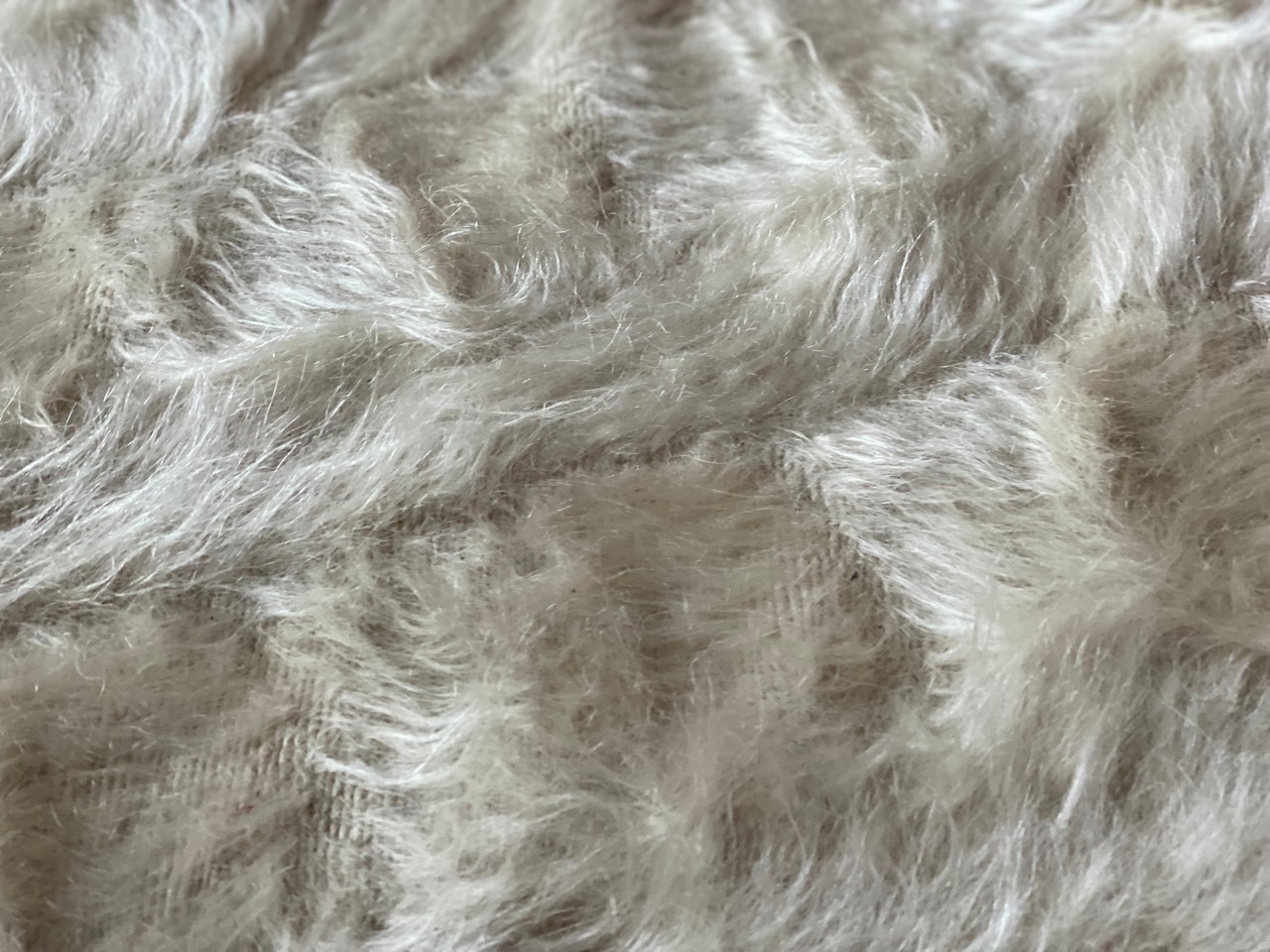こちら通常の新しいシイルトバッタ二エにくらべ、毛量が多めの素晴らしいアンゴラ山羊100%のシイルトです!