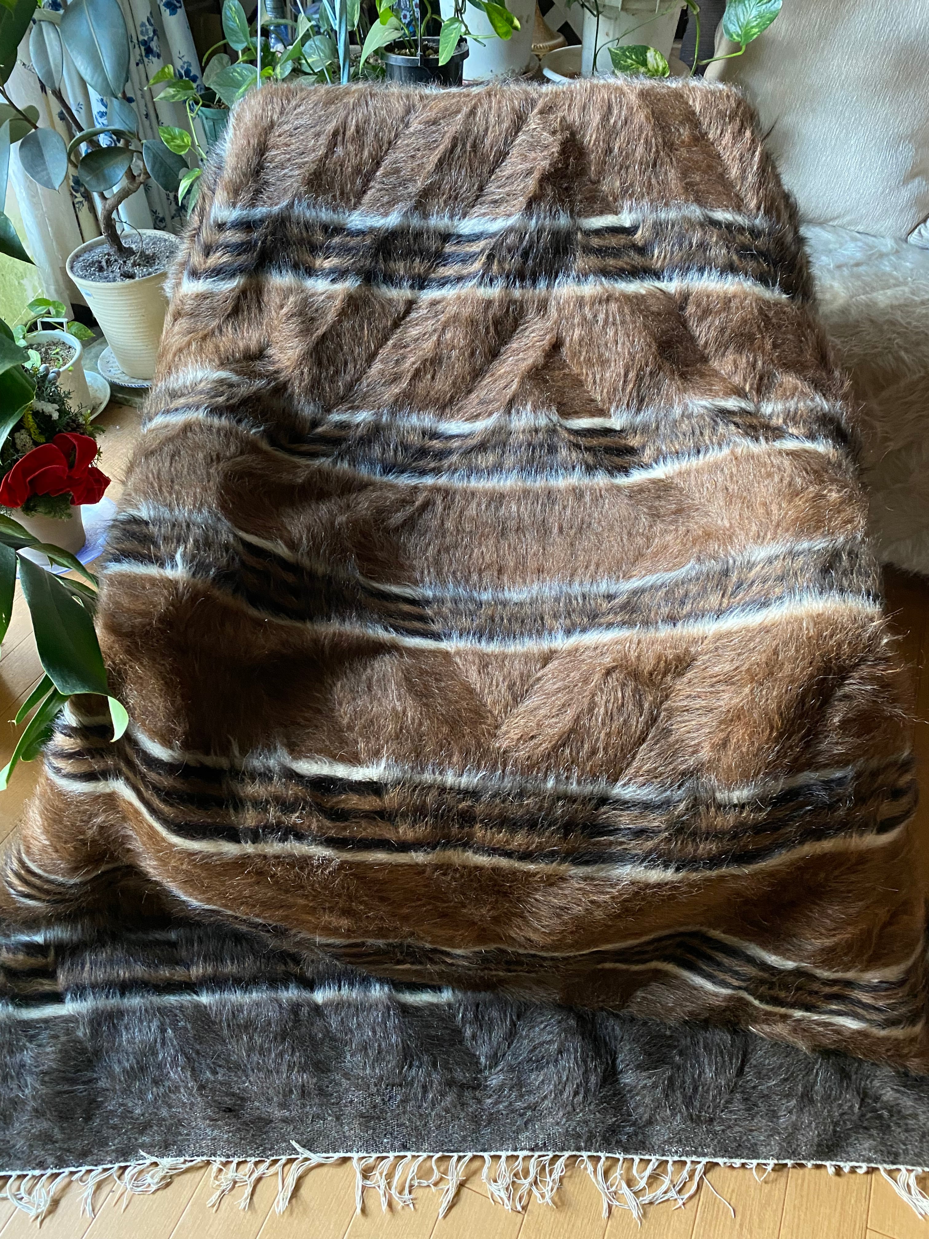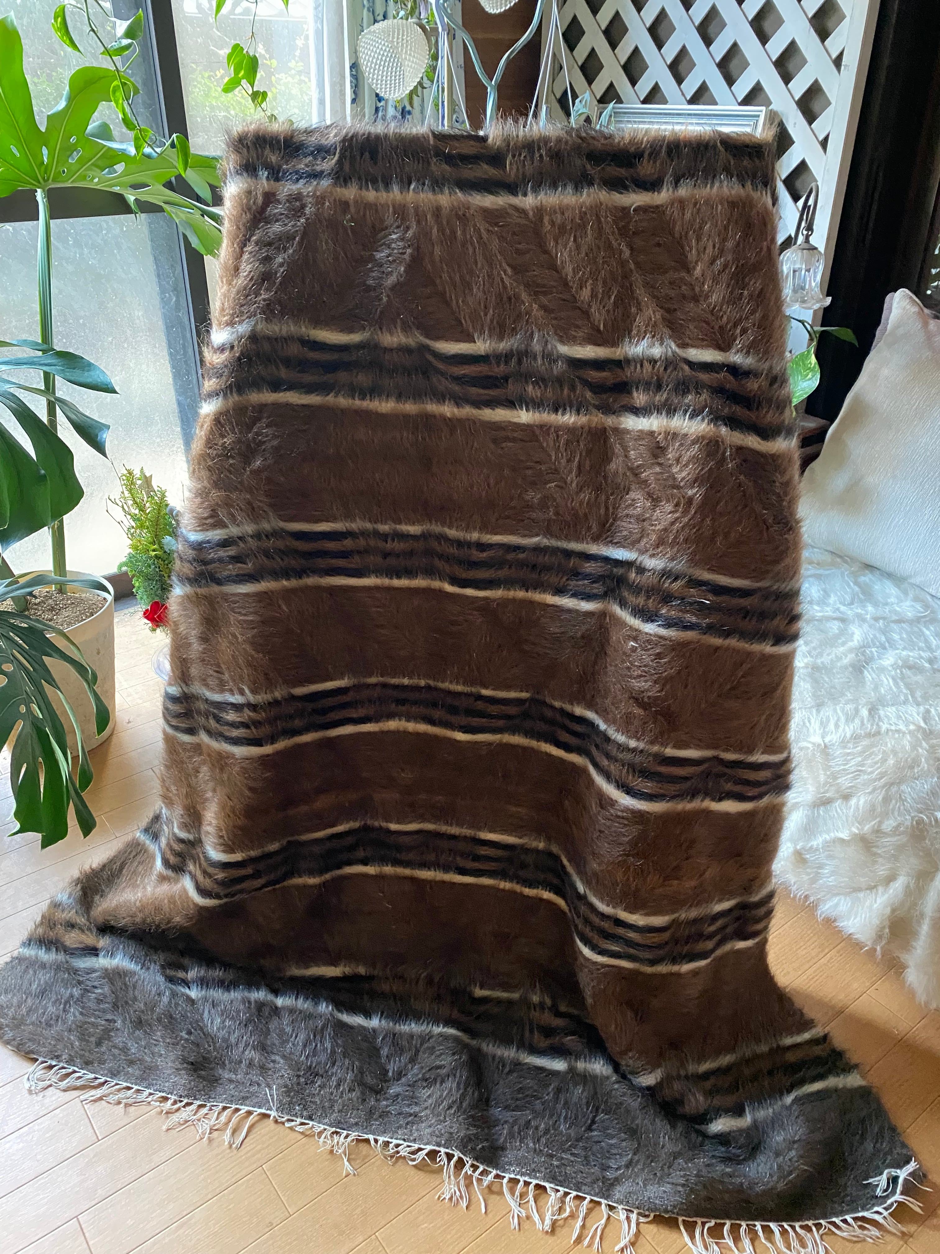アンゴラヤギのモヘアで織られたほぼ新品未使用ですが、40年ほど織られたもので今織られたものよりさらに密でモヘアの質が大変良いです。新古品になります。