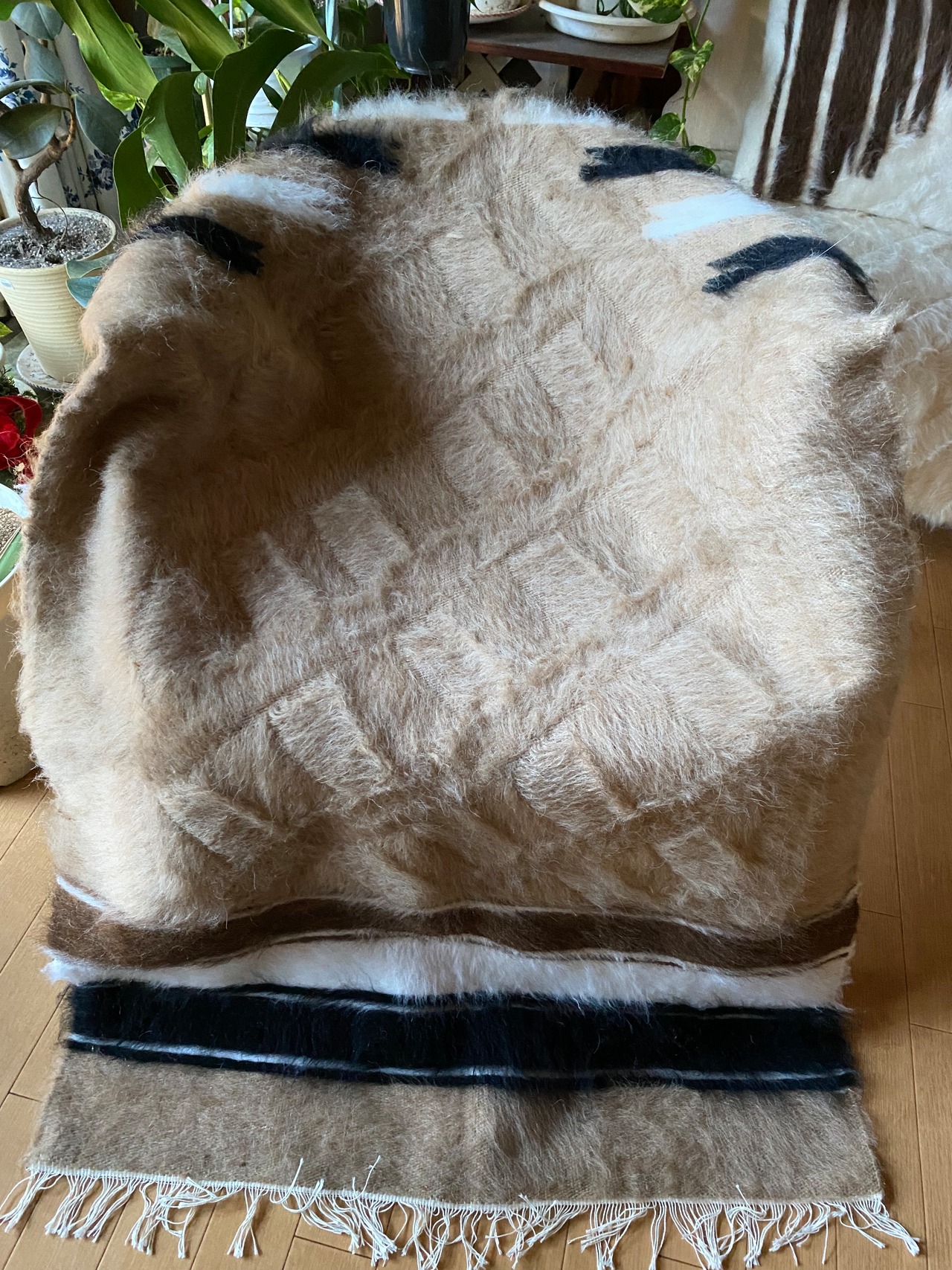 大人気の新しいシイルトバッタニイェ!厚みあり毛量も多いおすすめのバッタニイェ!アンゴラヤギのモヘアで織り機で織られた暖かい毛布!ラグにはもちろんソファや椅子カバーにも!当店27年現地直輸入卸売価格上質のシイルトバッタニイェもお任せください!少し長めの125cm