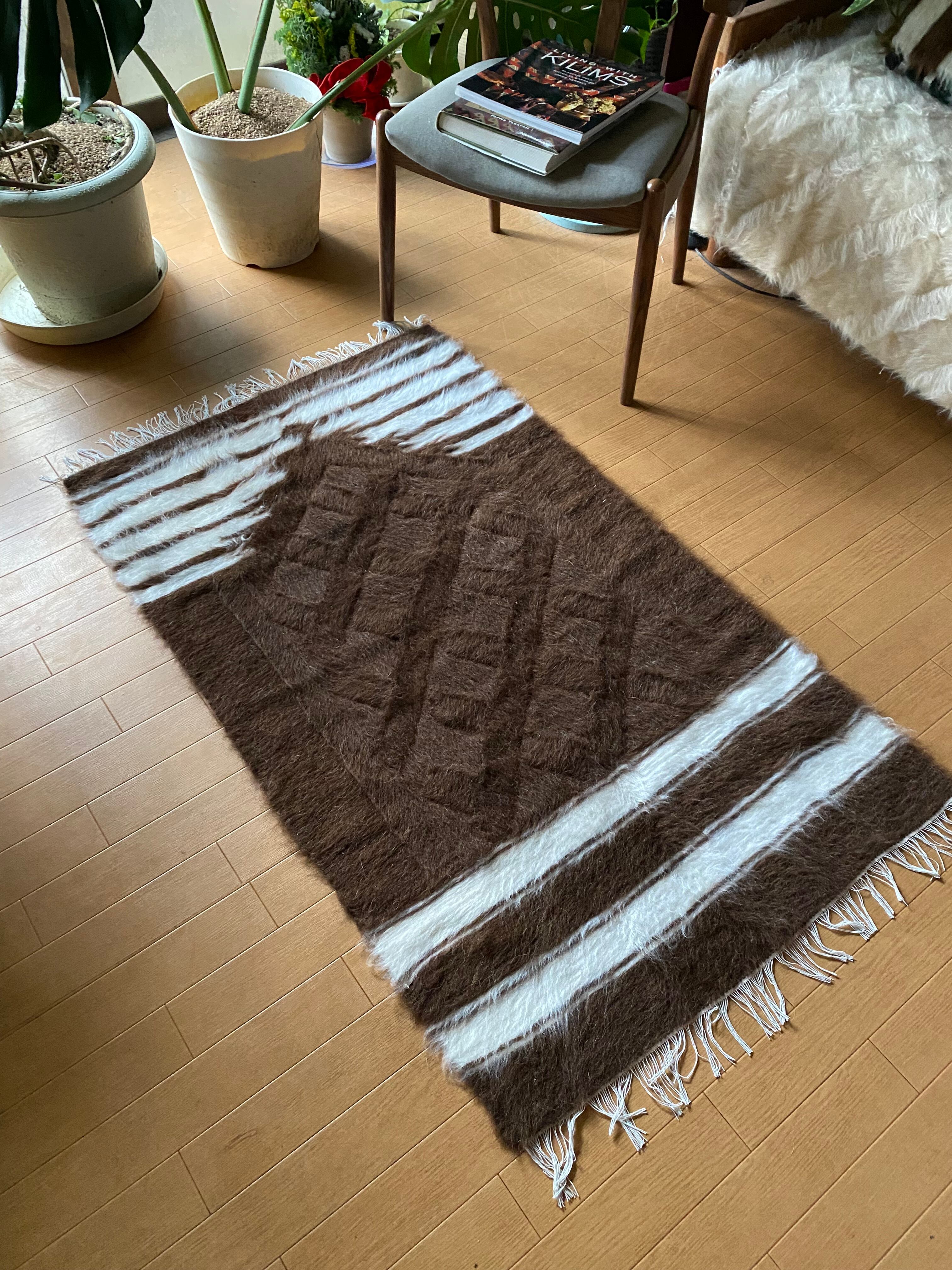 貴重なチョコレート茶毛量の多い新しいシイルトバッタニイェ!アンゴラヤギのモヘアの手織りの毛布ラグだけではなく椅子カバーやソファカバーにも!寒い日も色々重宝!当店27年トルコ直輸入卸売販売で実現の価格是非一枚インテリアに!人にも動物にも優しいシイルトバッタニイェ