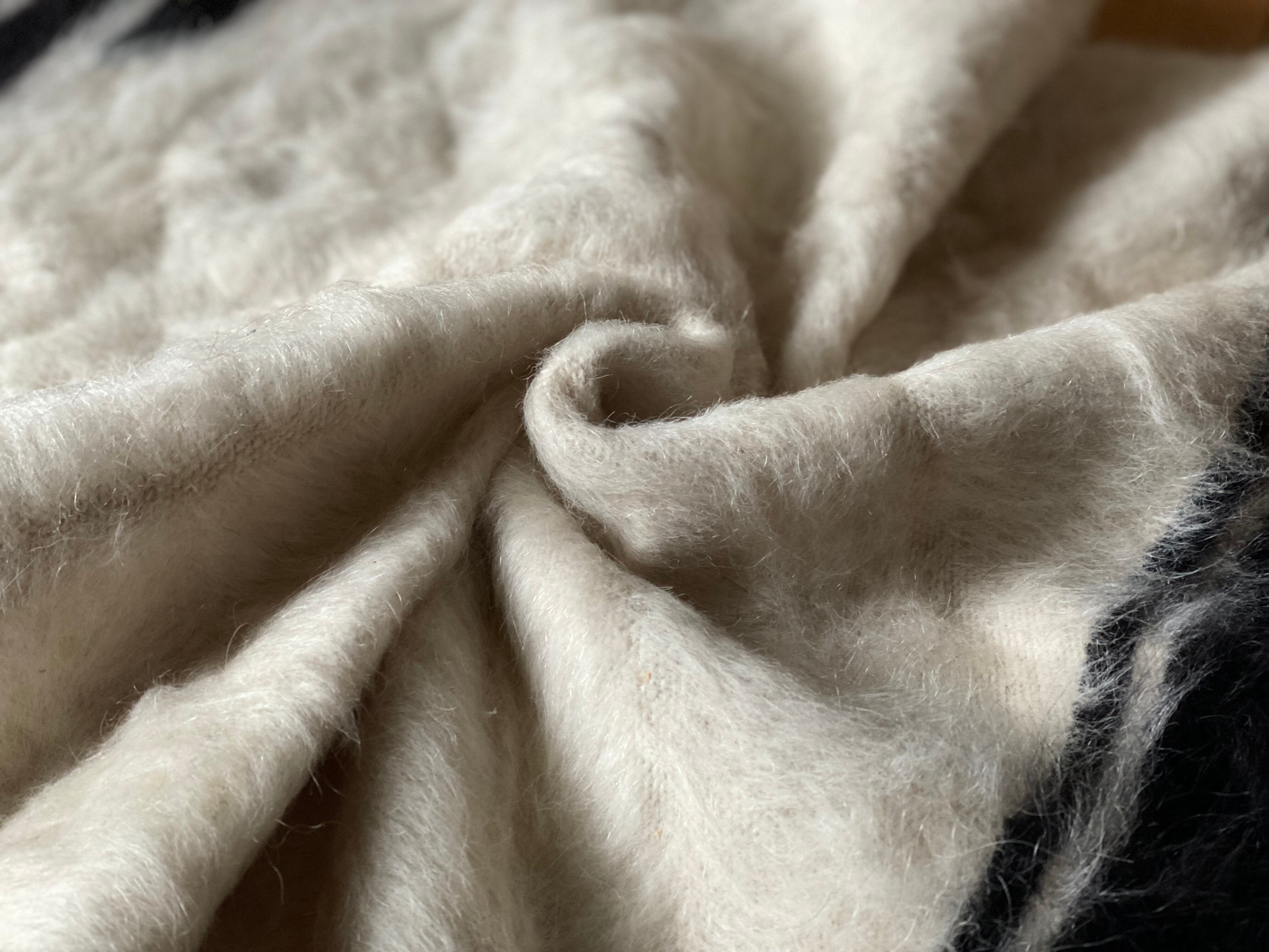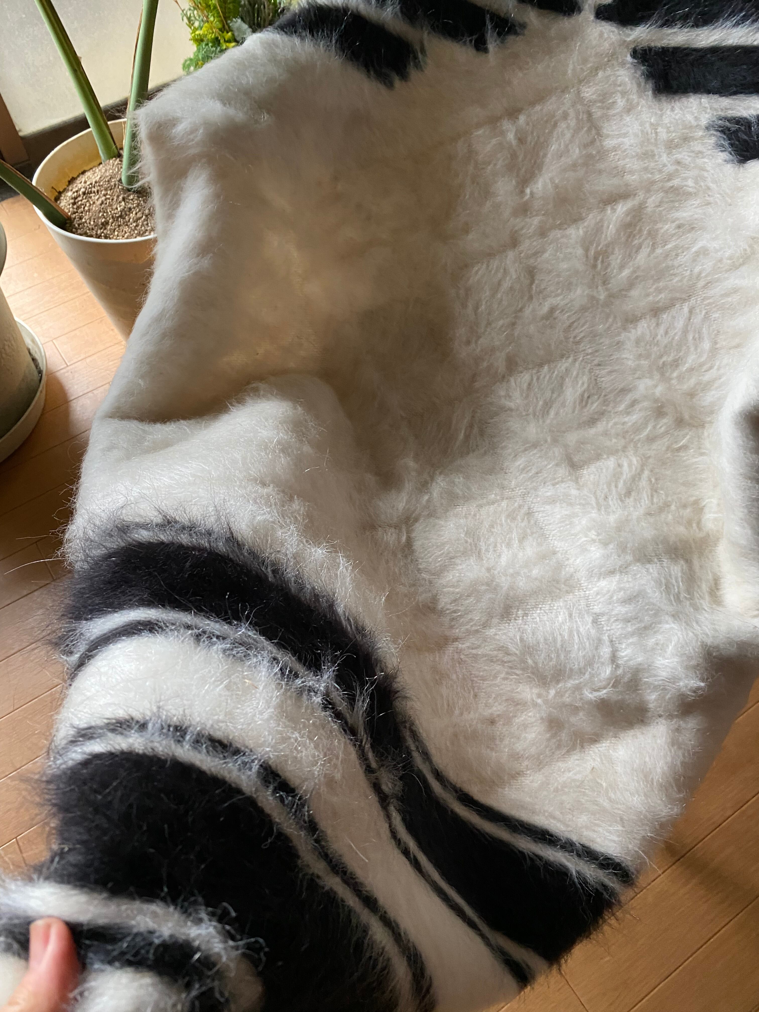 アンゴラヤギのモヘアで織られたほぼ新品未使用ですが、40年ほど織られたもので今織られたものよりさらに密でモヘアの質が大変良いです。新古品になります。