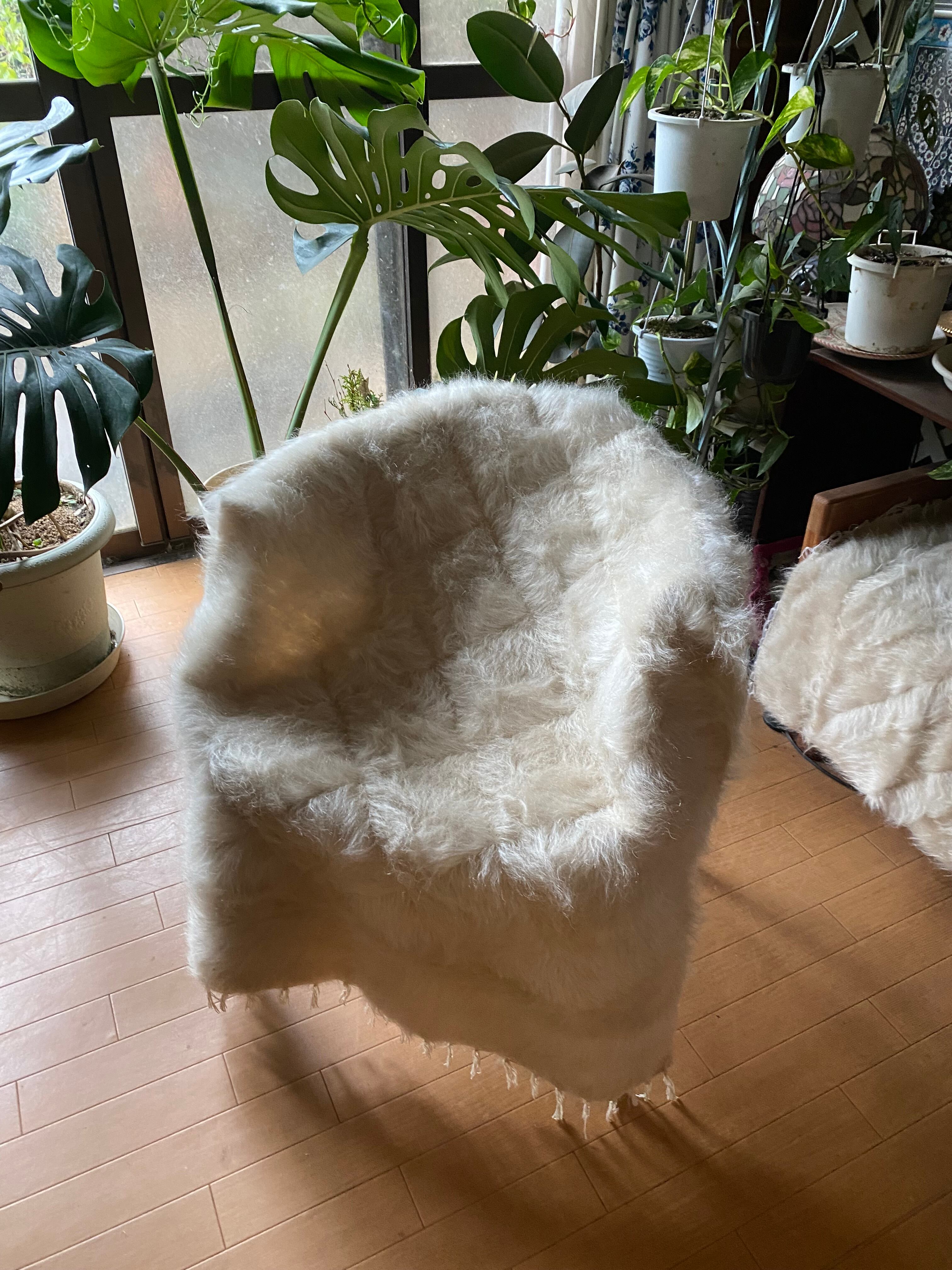 モフモフふわふわ感半端ない一枚!トルコ発シイルトバッタニイェ!少し大きめお得!人気の白いシイルトバッタニイェ!アンゴラヤギの贅沢モヘア100の毛布!ラグや膝掛けソファにも!車にもあると便利!当店オリジナルのサイズ!この質価格27年来現地直輸入卸売当店のみの価格