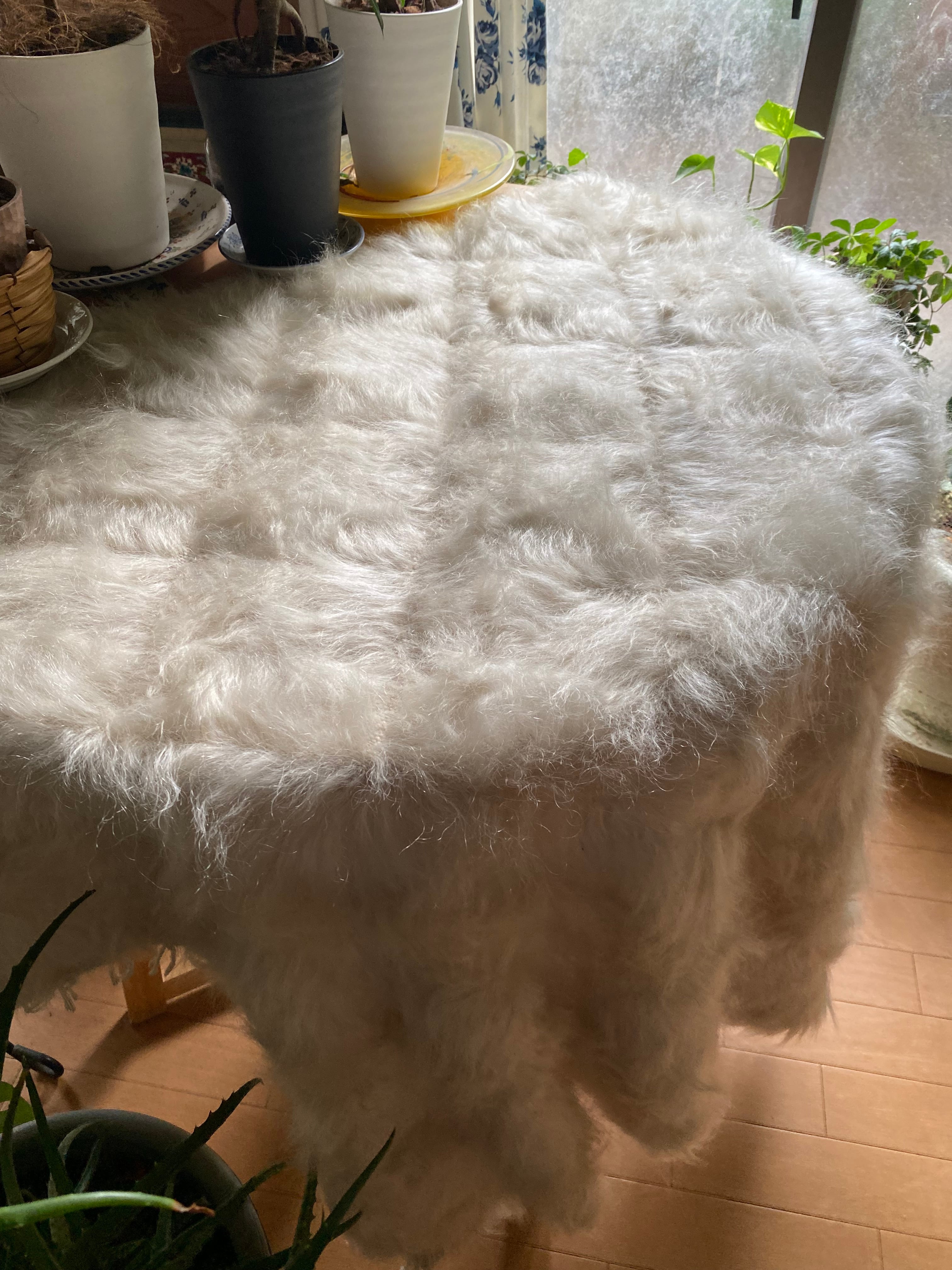 こちら通常の新しいシイルトバッタ二エにくらべ、毛量が多めの素晴らしいアンゴラ山羊100%のシイルトです!!