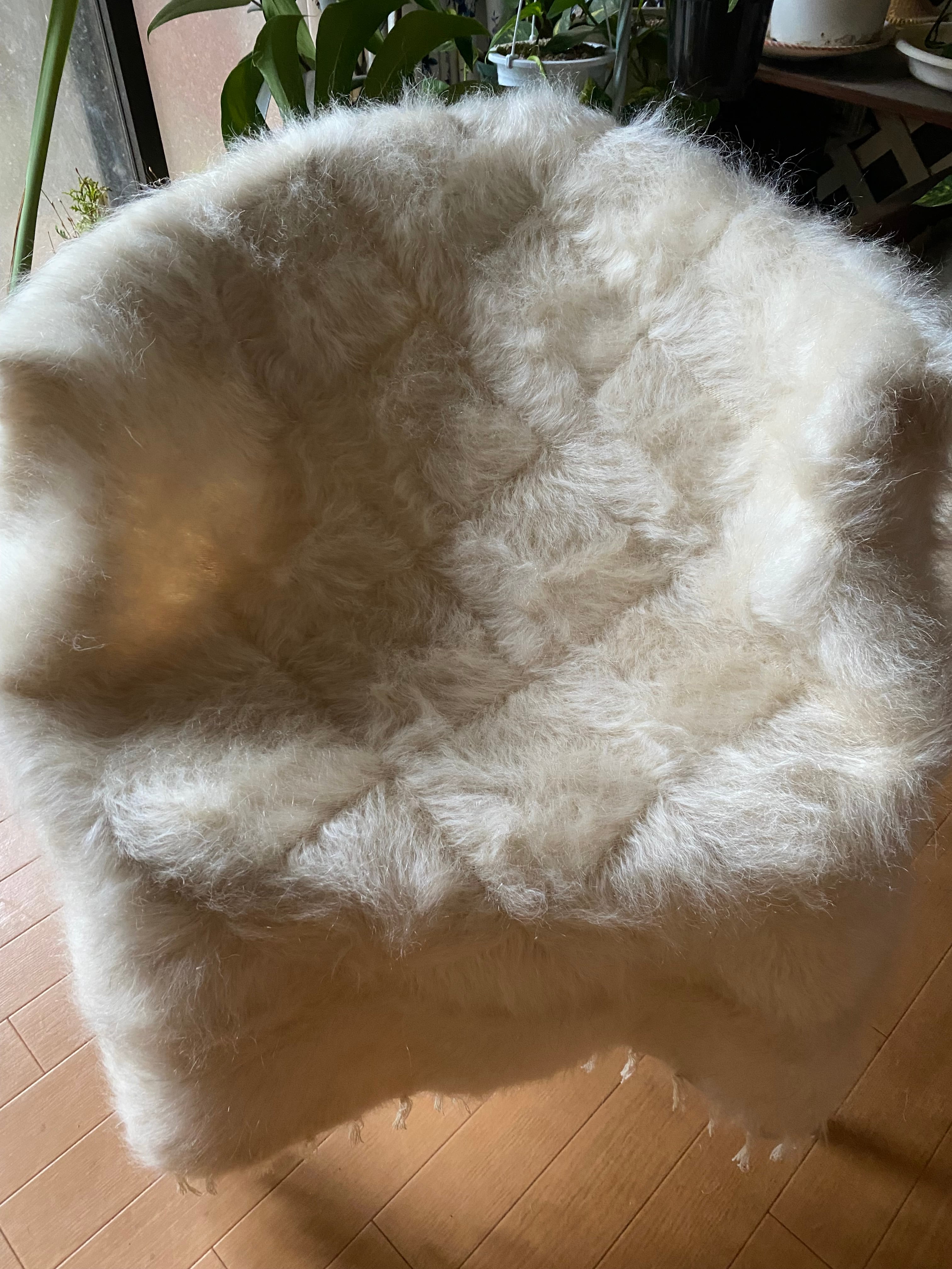 知ってください!トルコのシイルトバッタニエ!当店オリジナルサイズ!ギフトにも最適!人気の白!アンゴラヤギのモヘアの手織りの毛布140年前からトルコの東シイルトだけで織られている贅沢なモヘアの毛布!ヴィンテージ未使用便モフモフふわふわ椅子やソファ車にあると便利!