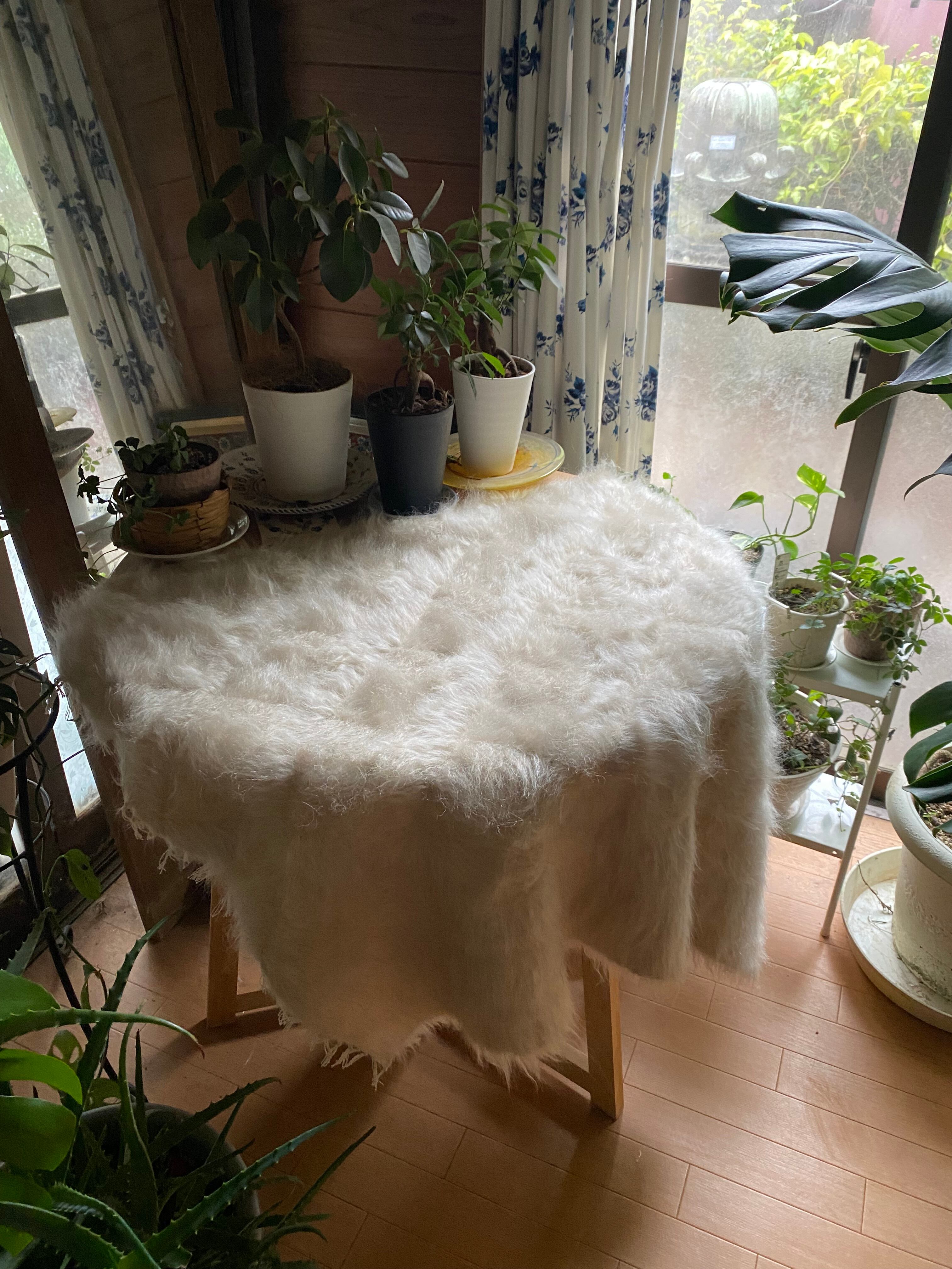 アンゴラヤギのモヘアで織られたほぼ新品未使用ですが、40年ほど織られたもので今織られたものよりさらに密でモヘアの質が大変良いです。新古品になります。