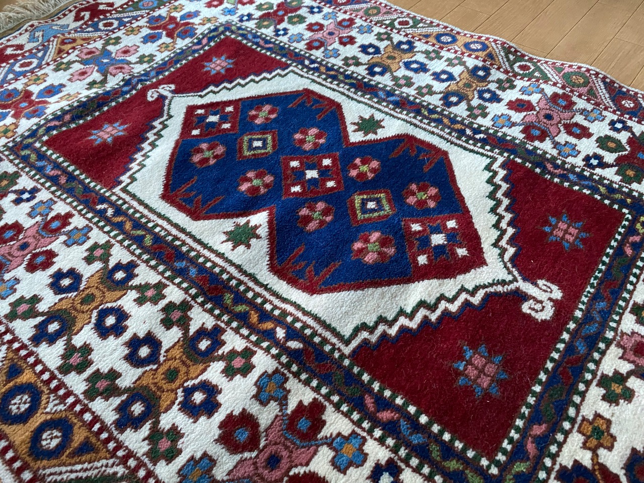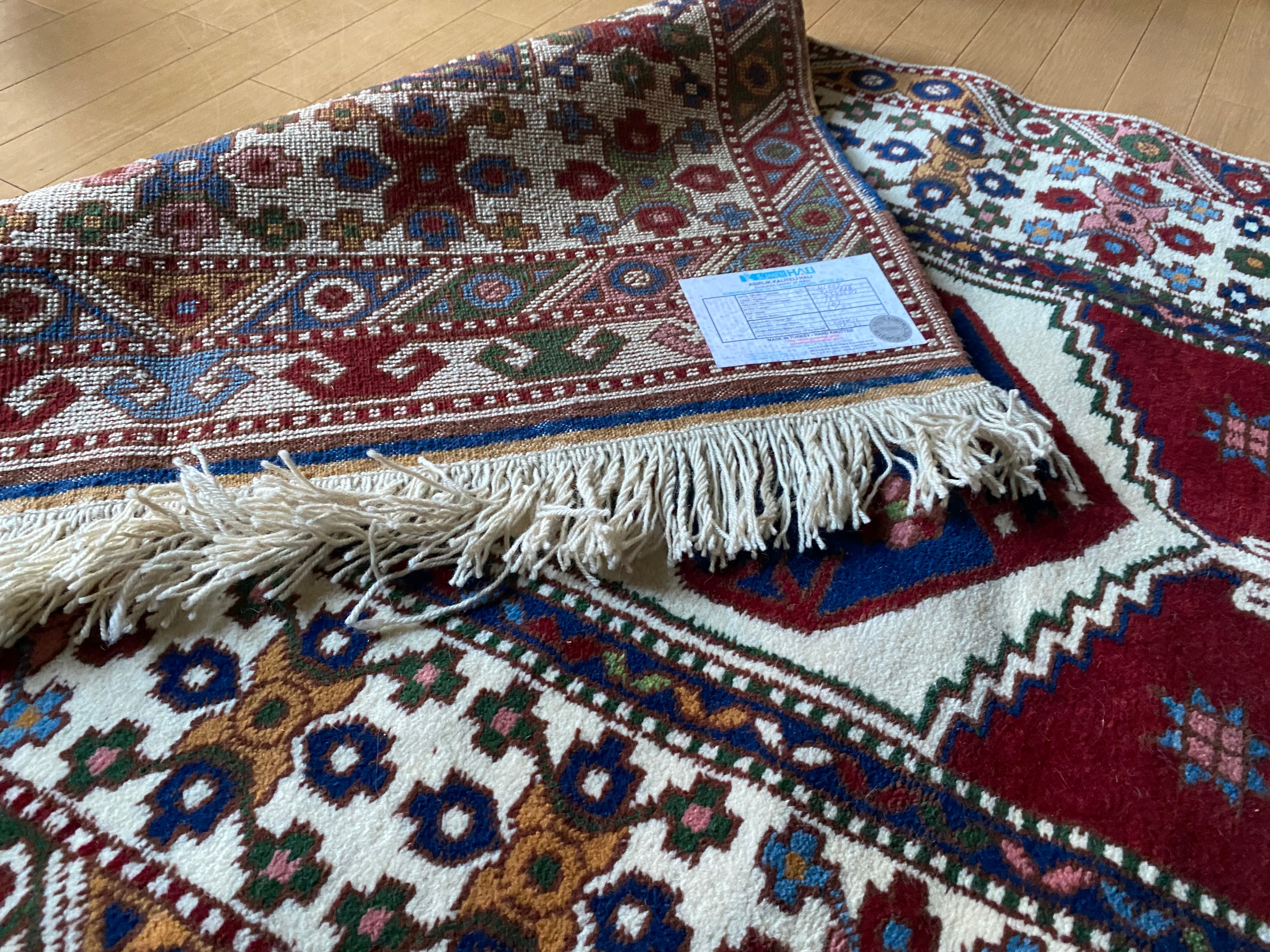 いま新しく織られたら18万以上する絨毯です。