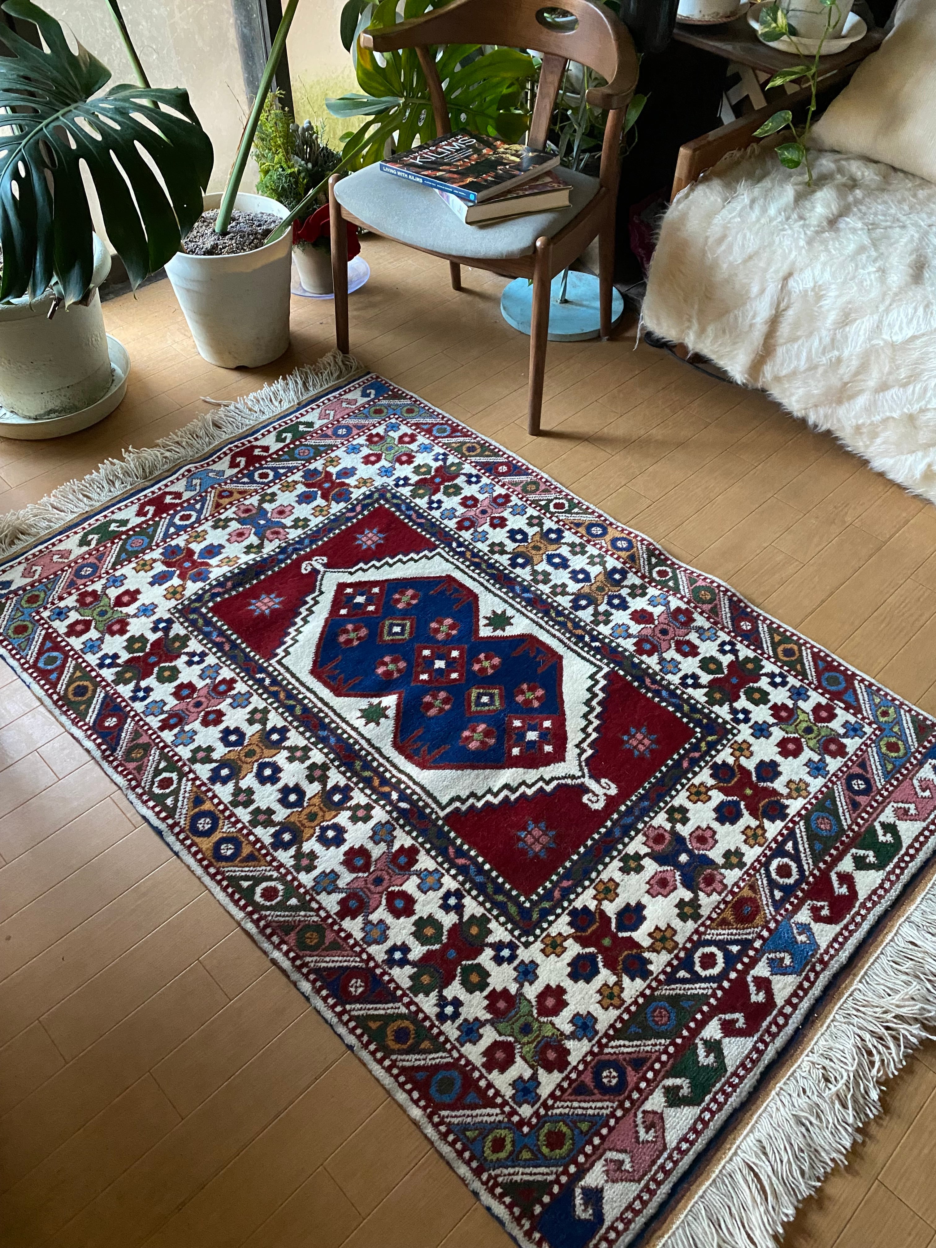 ありますので、リビングやお気に入りのスペースに如何でしょうか? またこちら、シュメル工房のもので、今では当店以外手に入らない絨毯です。