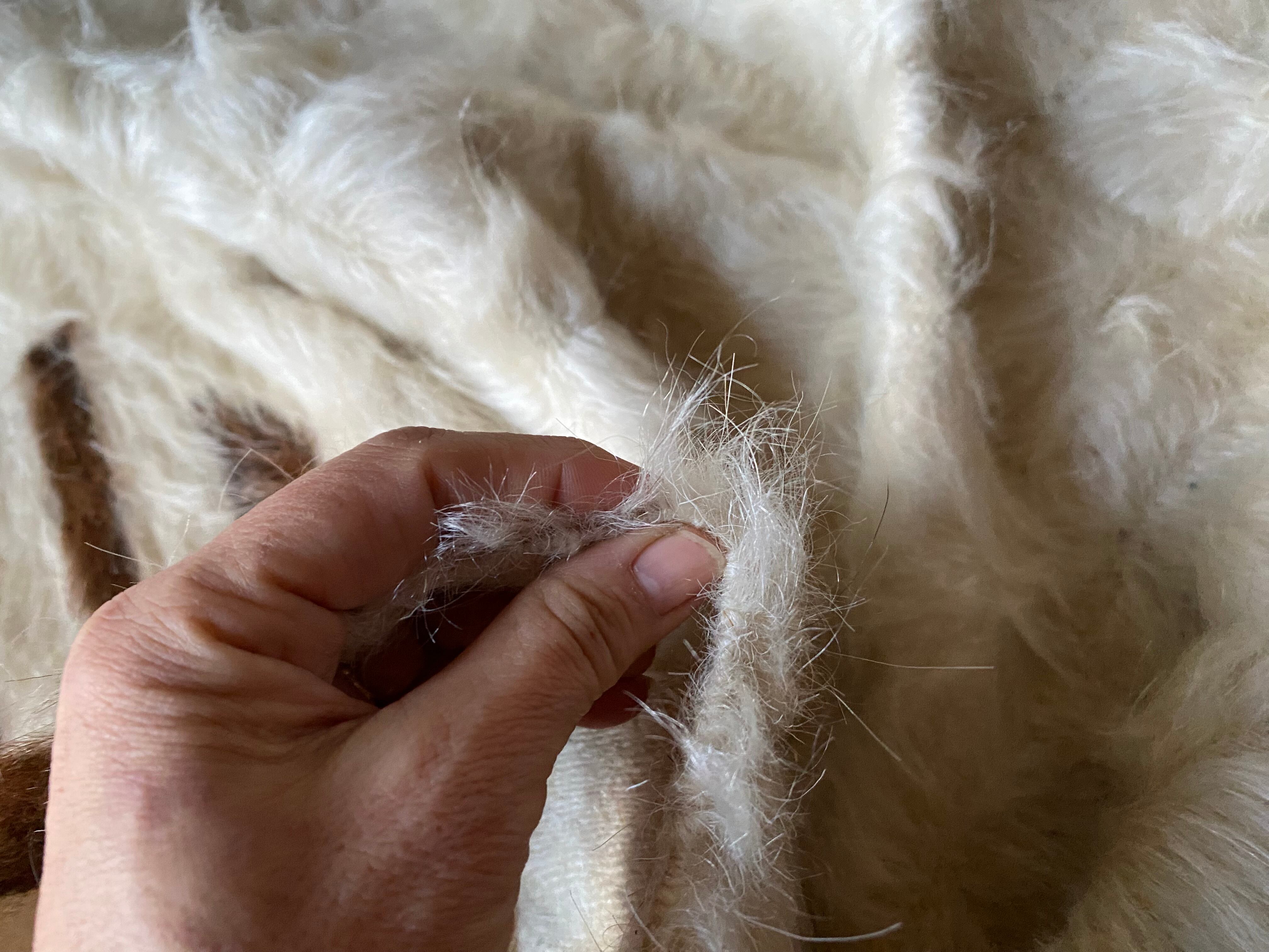 こちら通常の新しいシイルトバッタ二エにくらべ、毛量が多めの素晴らしいアンゴラ山羊100%のシイルトです!