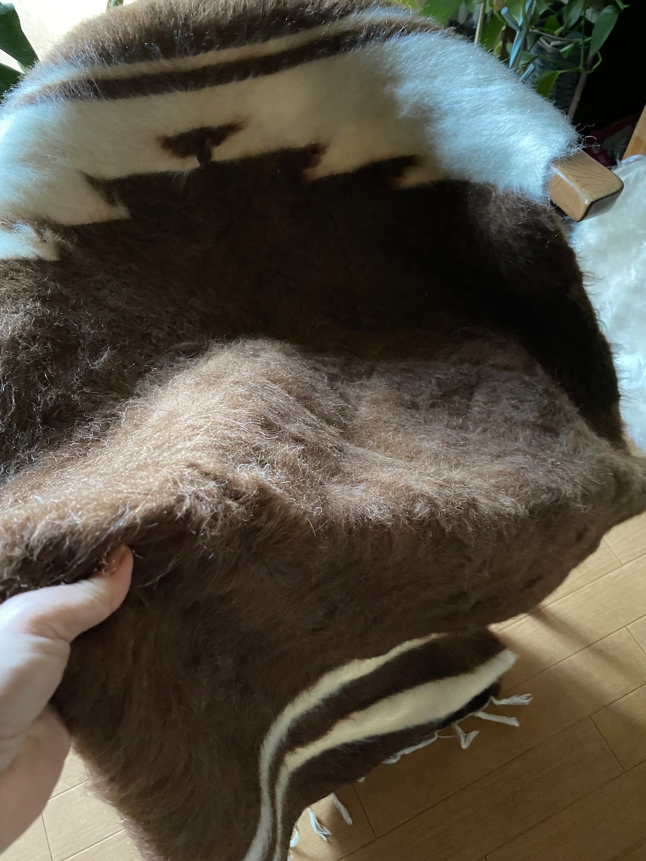 こちら通常の新しいシイルトバッタ二エにくらべ、毛量も多く艶の良い素晴らしいアンゴラ山羊100%のシイルトです!