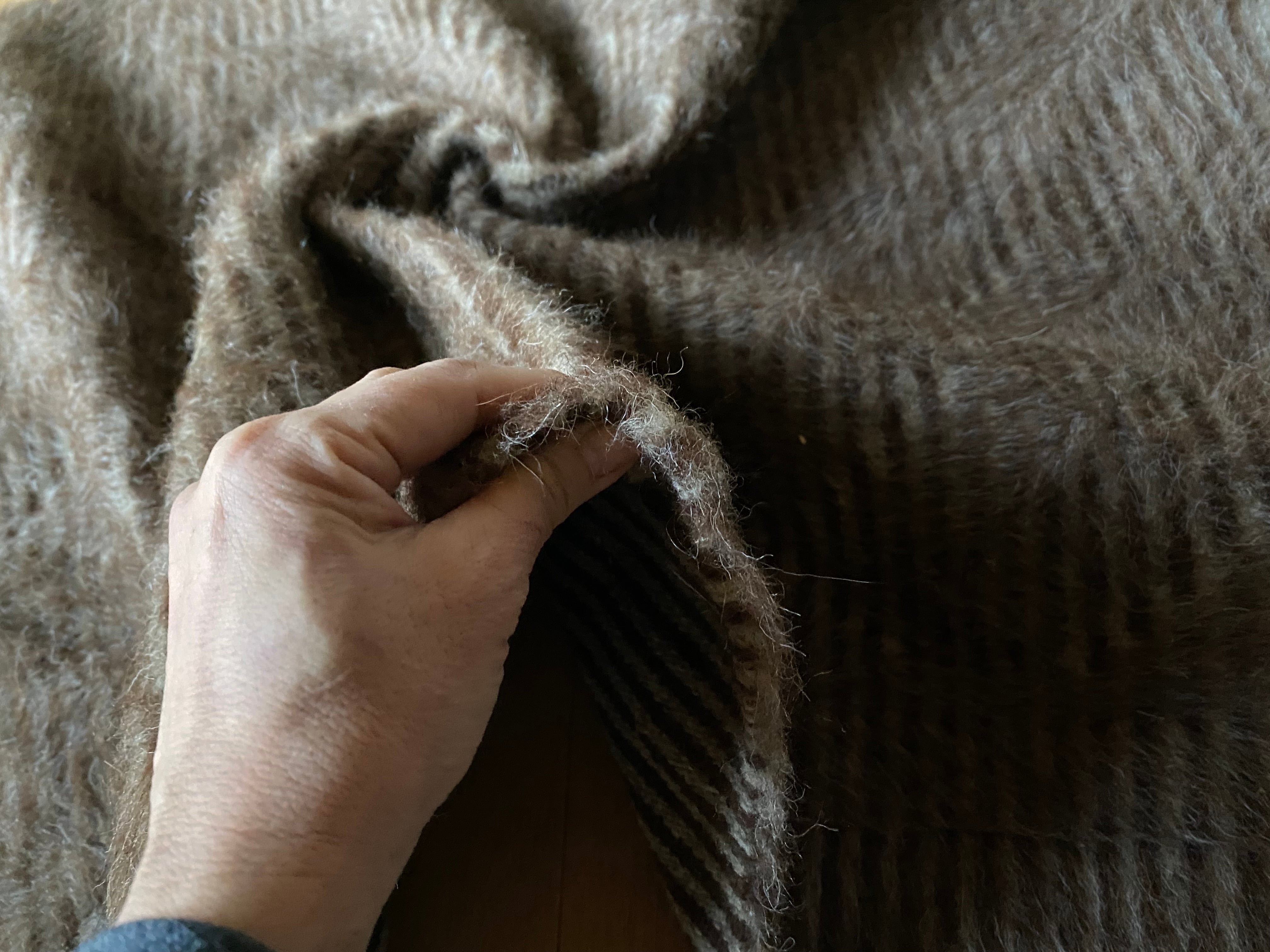 また、毛をけば立てて幾何学模様が入っておりますが、ウールではこのような毛羽立ちの模様はできないそうです。