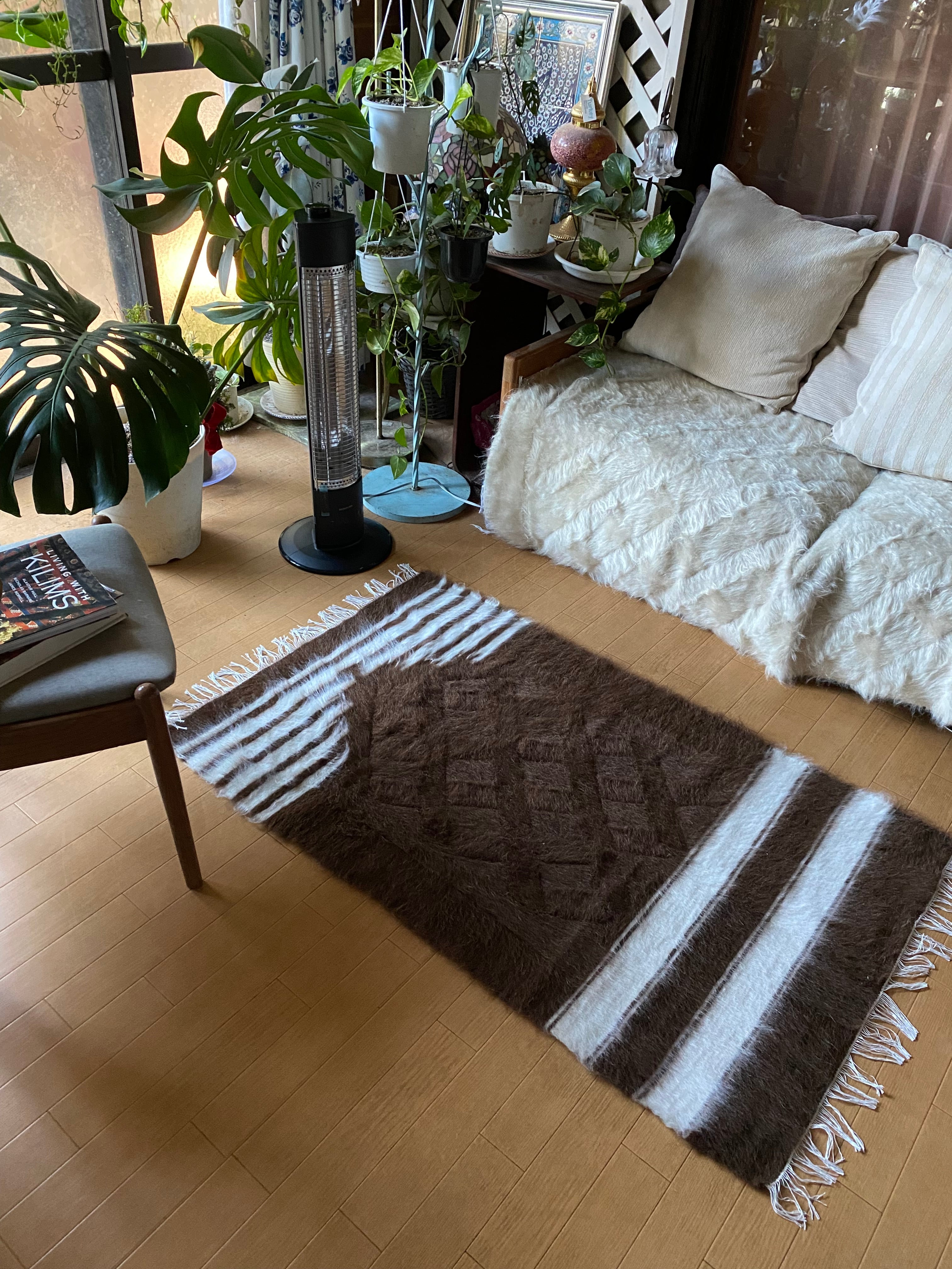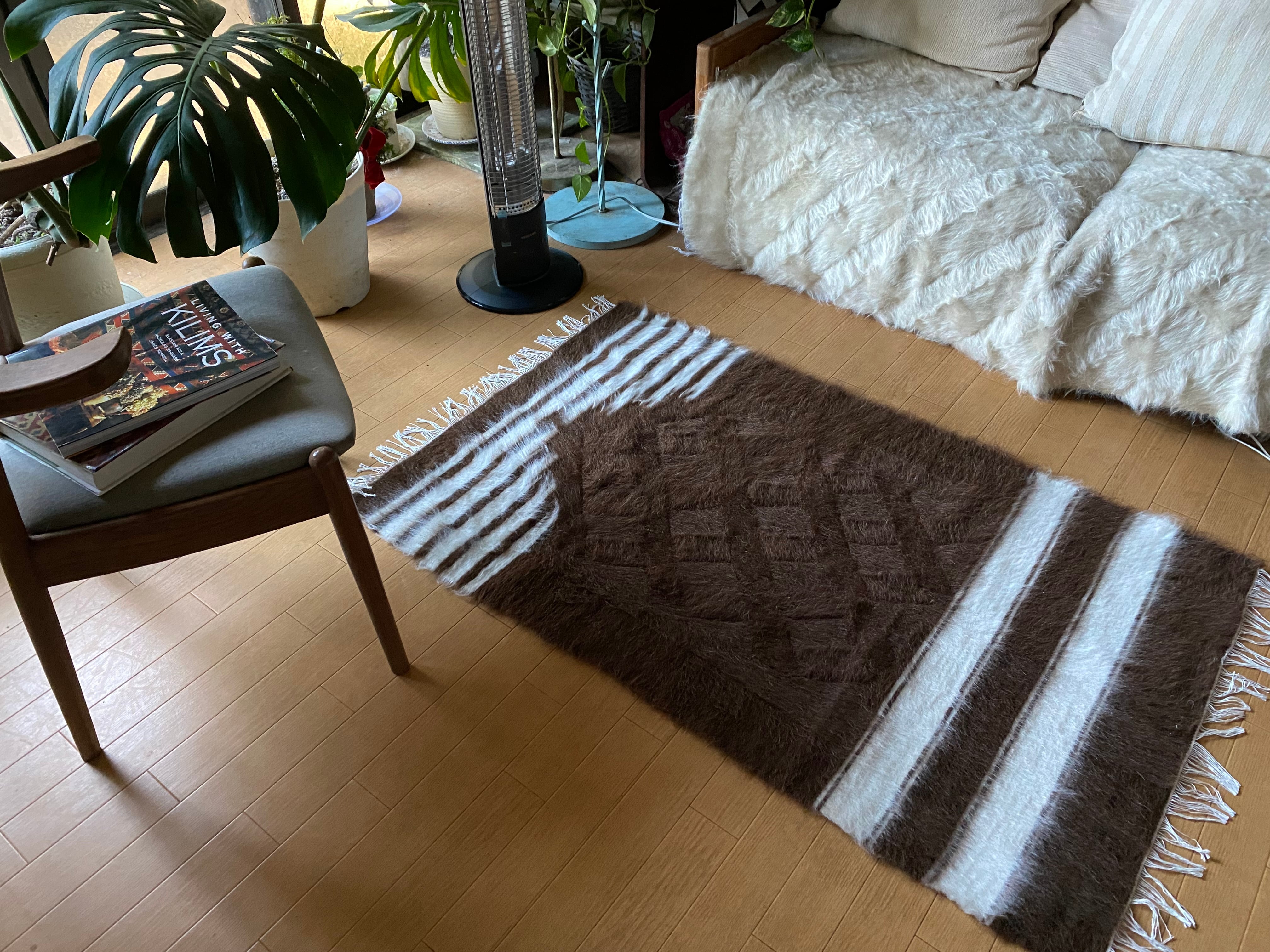 トルコのシイルトバッタニエを知っていますか?アンゴラ山羊のモヘアで織られた遊牧民の毛布!暖かくお洒落なミフラブ柄!チョコレー茶と白のシックな色合人気です!人にも動物にも優しい、ラグだけではなく椅子やソファにや車にも重宝!シイルトバッタニエは卸売価格の当店で!