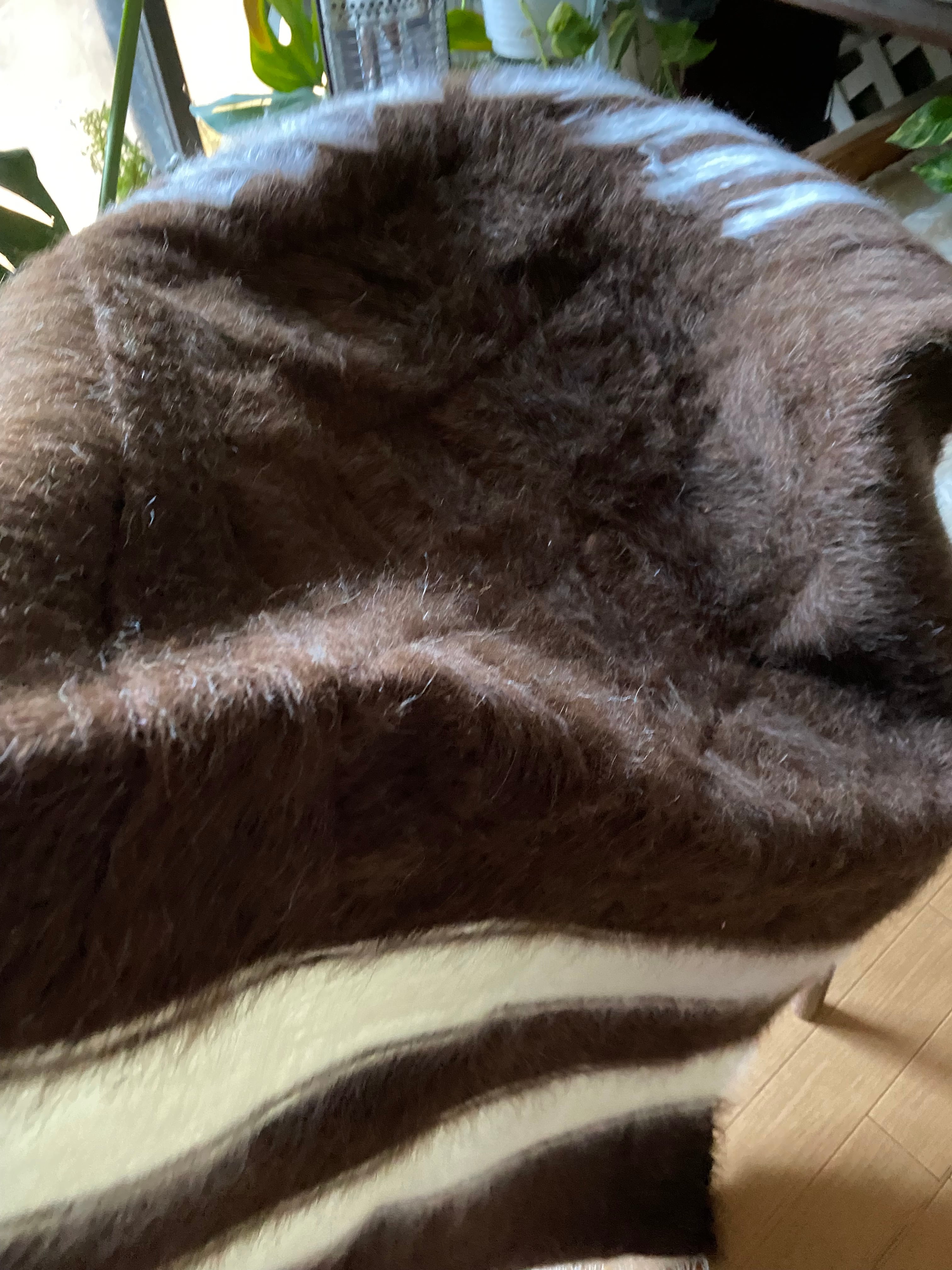 また、毛をけば立てて幾何学模様が入っておりますが、ウールではこのような毛羽立ちの模様はできないそうです。