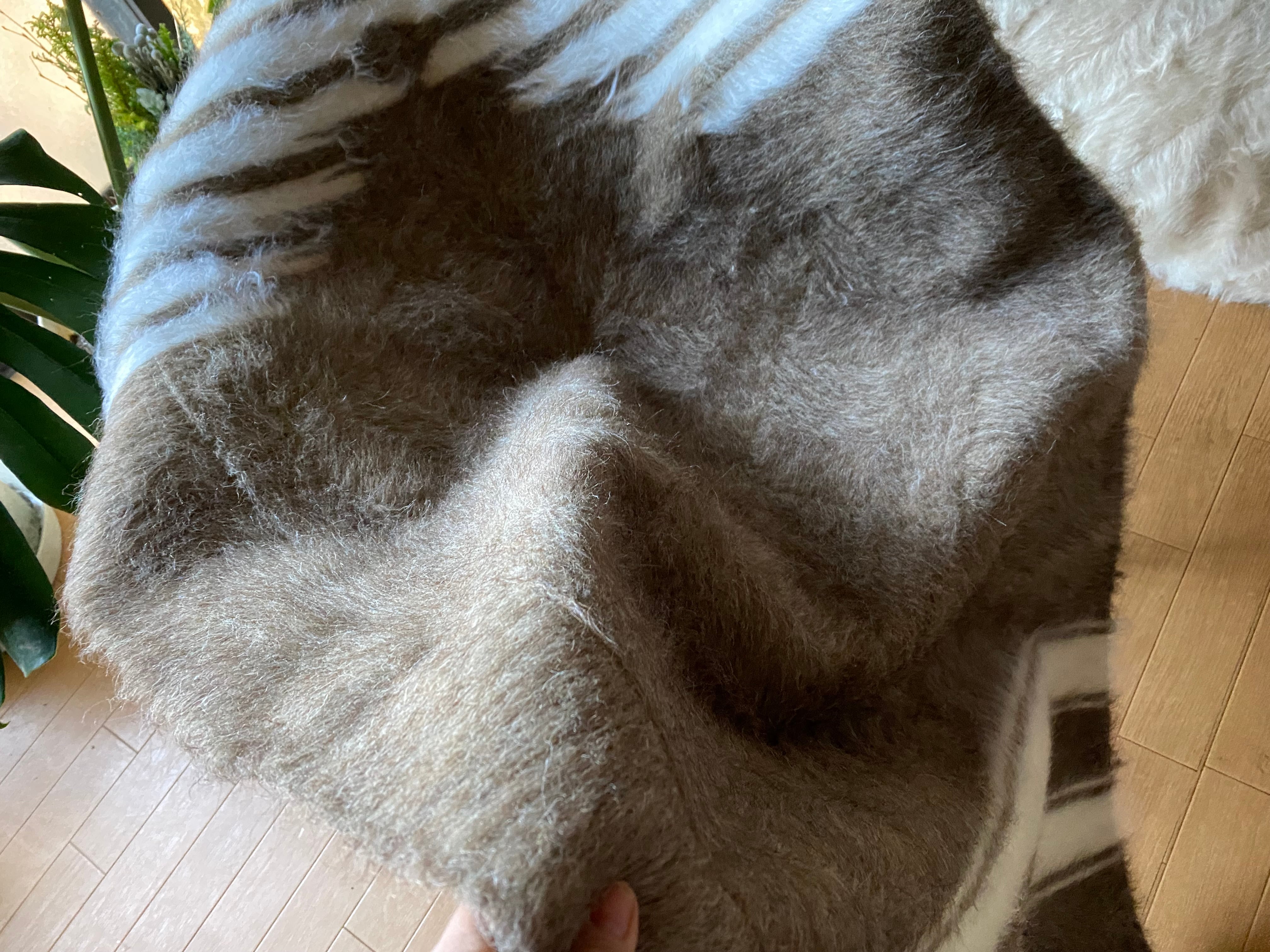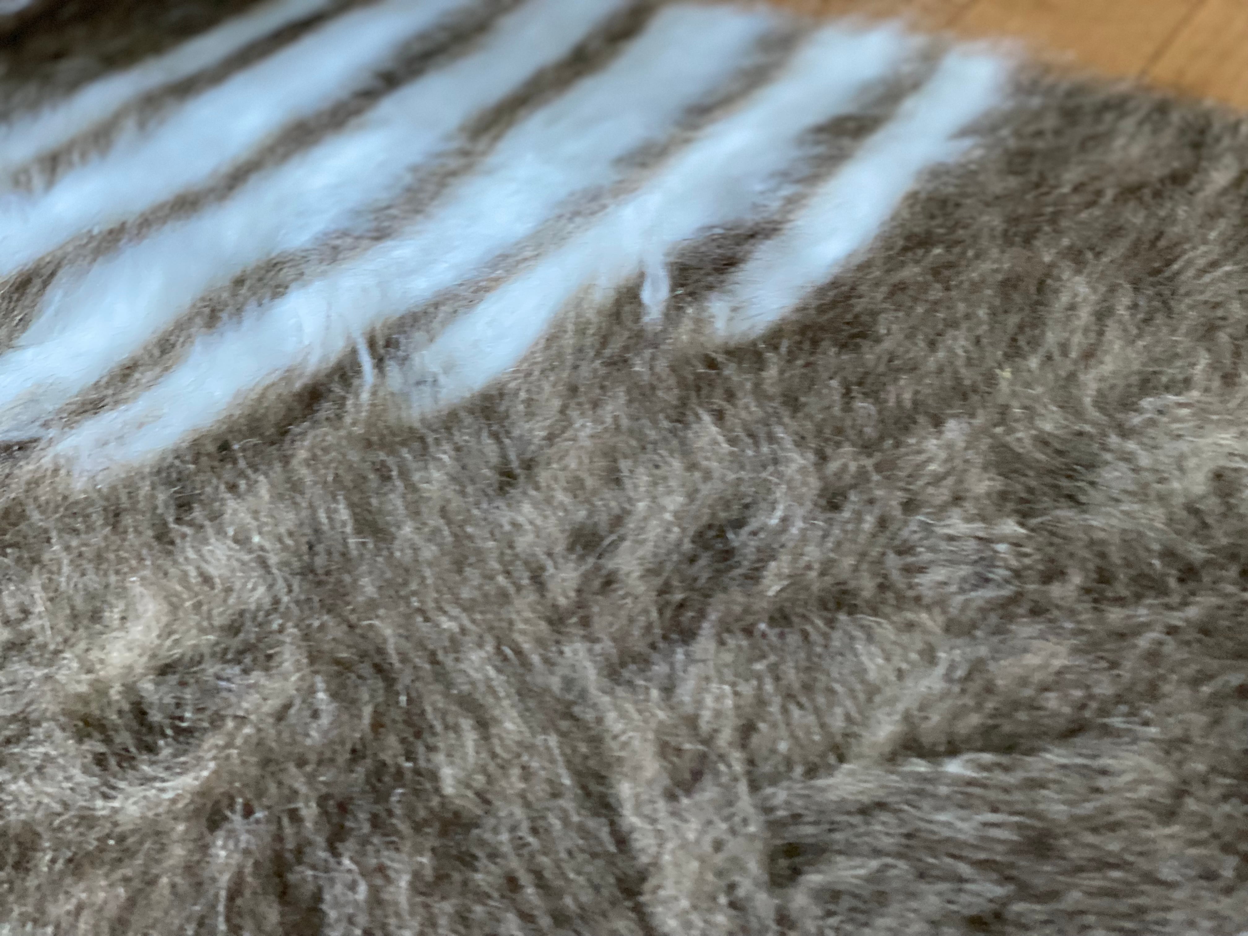 また、毛をけば立てて幾何学模様が入っておりますが、ウールではこのような毛羽立ちの模様はできないそうです。