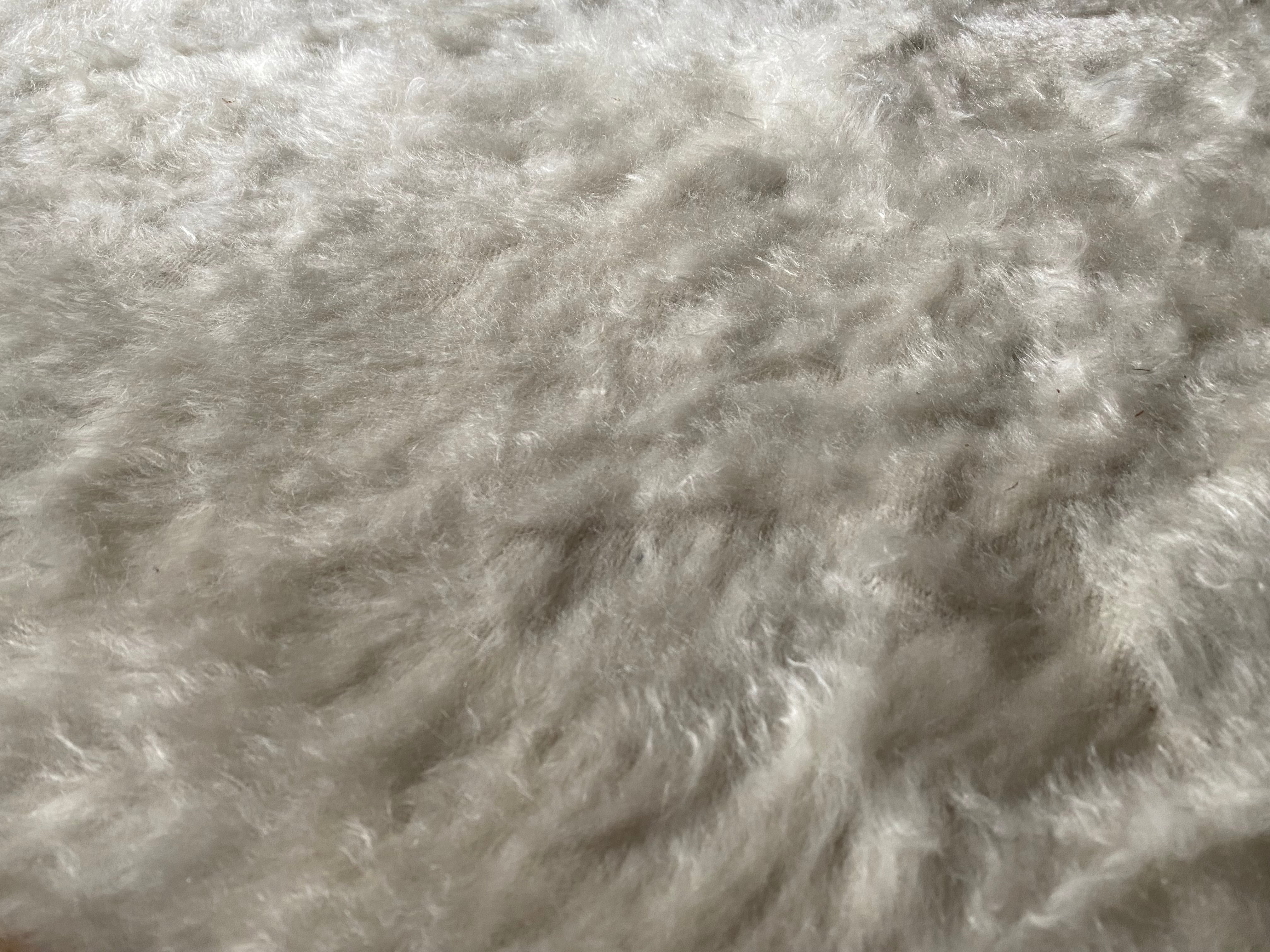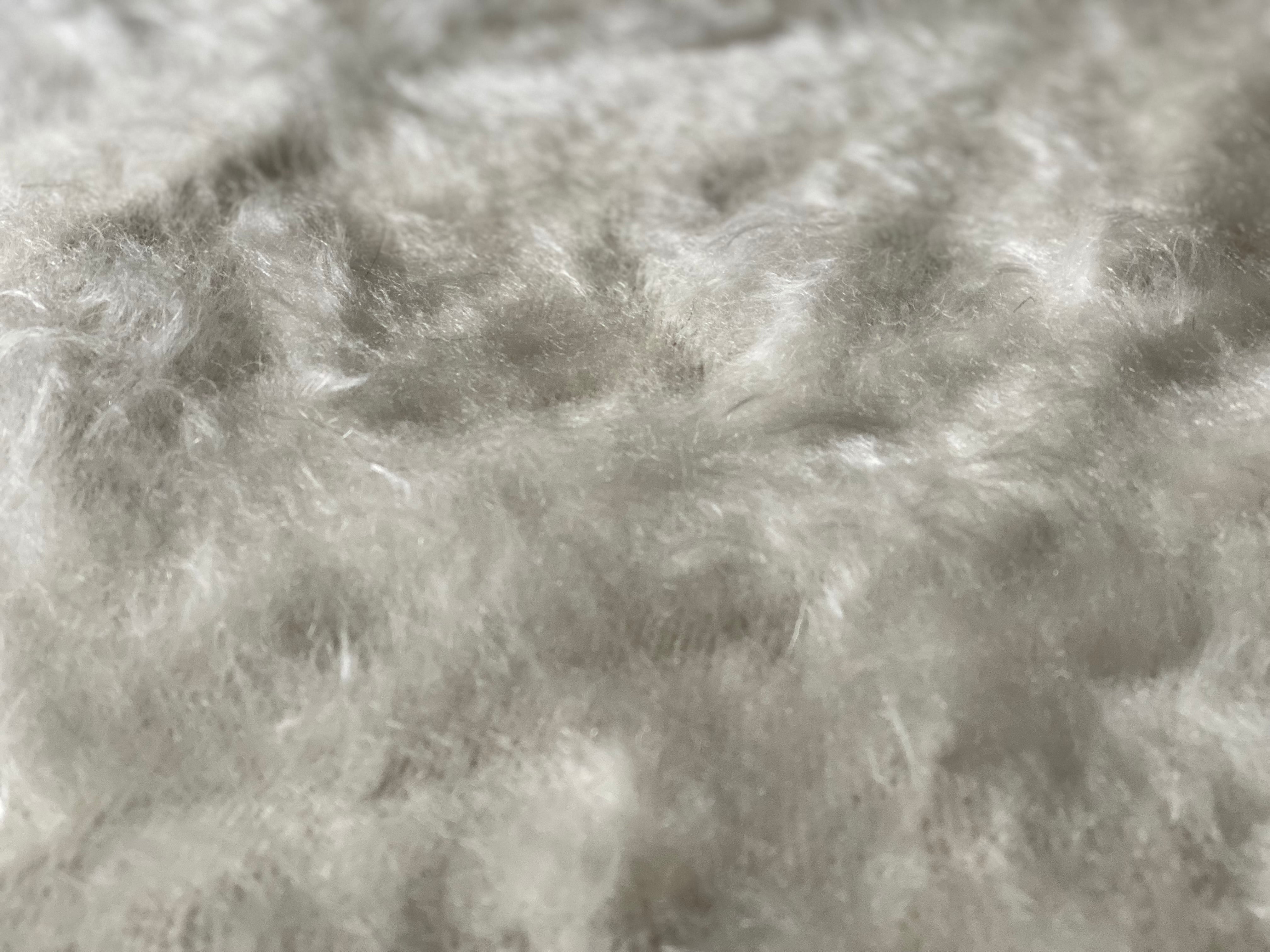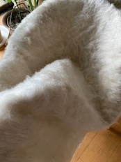 自然のヤギの毛で織られていますので、独特のくるくるとした感じも可愛く、とてもナチュ ラルな感じです。アンゴラ山羊は18世紀の中ごろまでオスマントルコが飼育を独占していたらしいです。 その後改良され、良質のモヘアとして世界的に発展していったそうです。モヘアと言えば、カシミヤと並ぶ素材ですね。山羊の毛ですので、羊より高級で暖かです。
