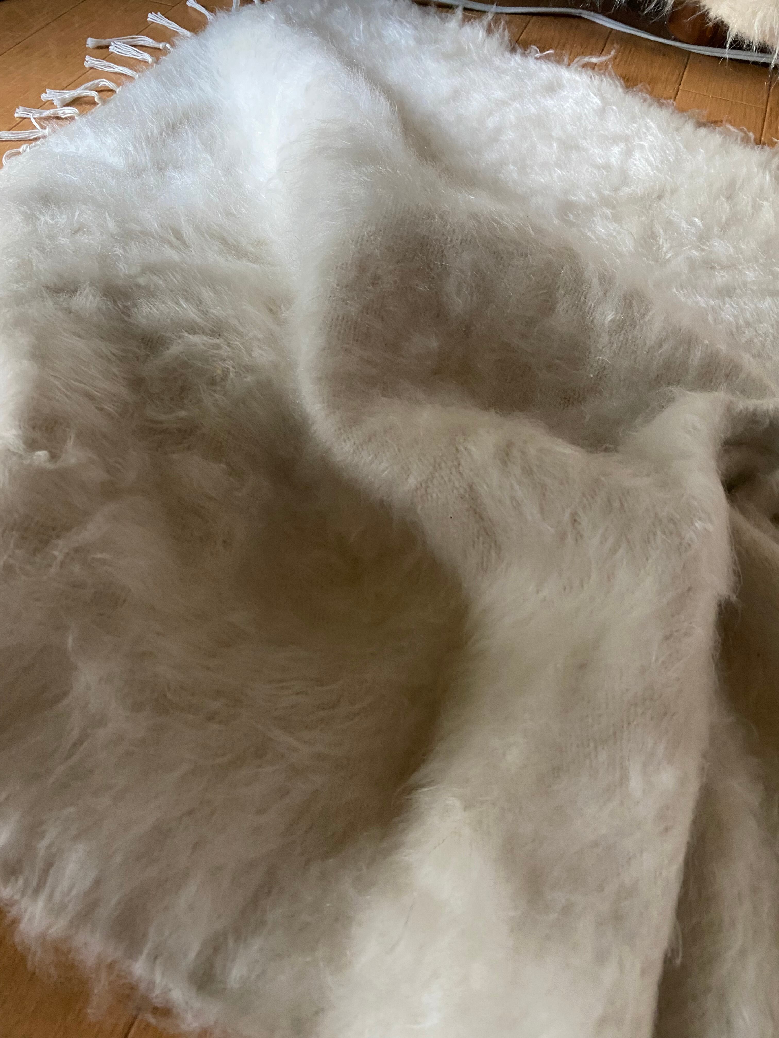 寒波の来る前に!やっぱり大人気のオールマイティ白い新しいシイルトバッタニイェ!トルコのシイルトのみで織られるアンゴラヤギのモヘアで織られた動物を傷つけない毛布!ラグや膝掛けや車にも!ペットさんにも大人気!四季を通じて重宝の人気の手織り物当店27年来トルコ直輸入