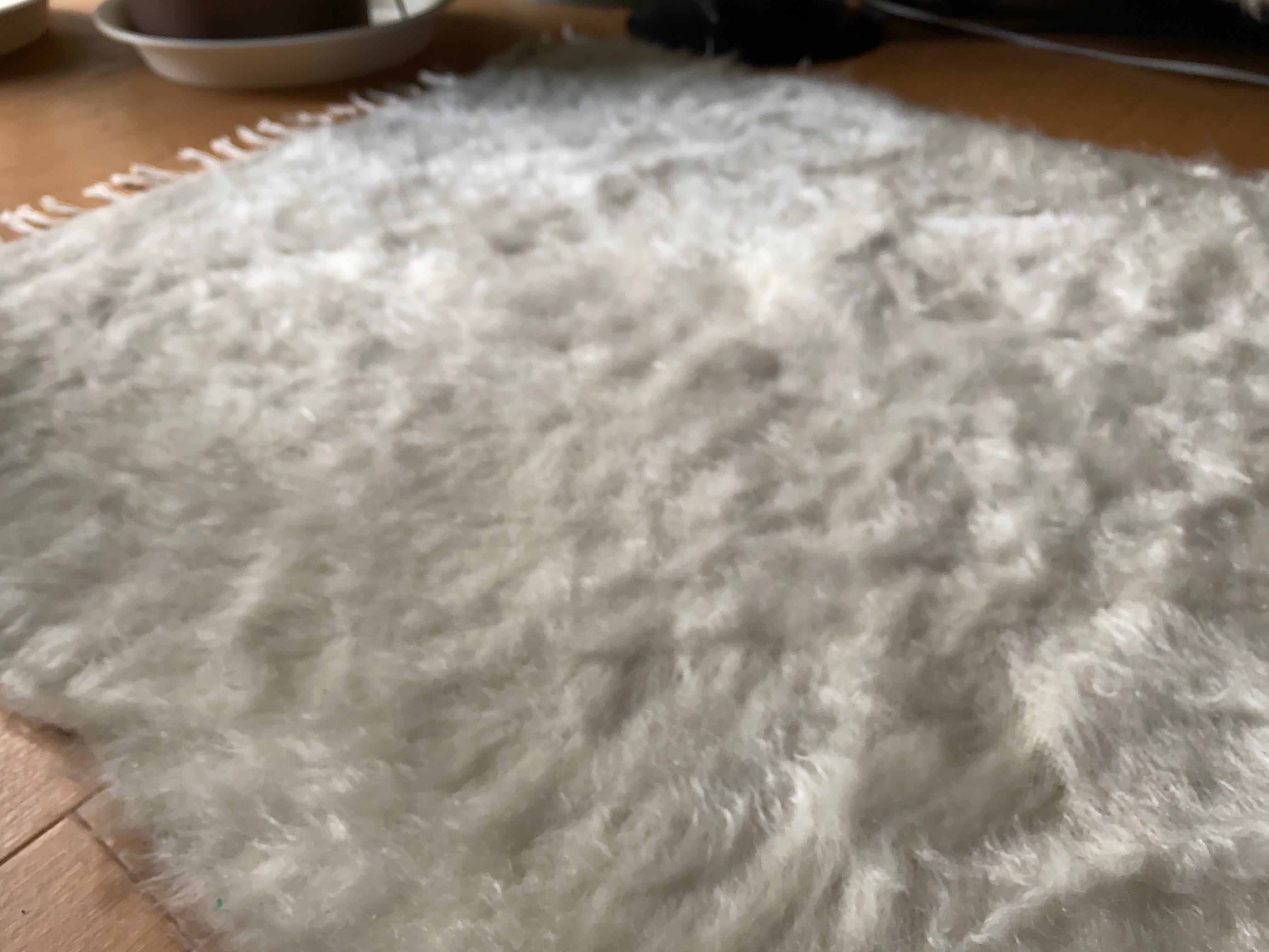 また、毛をけば立てて幾何学模様が入っておりますが、ウールではこのような毛羽立ちの模様はできないそうです。
