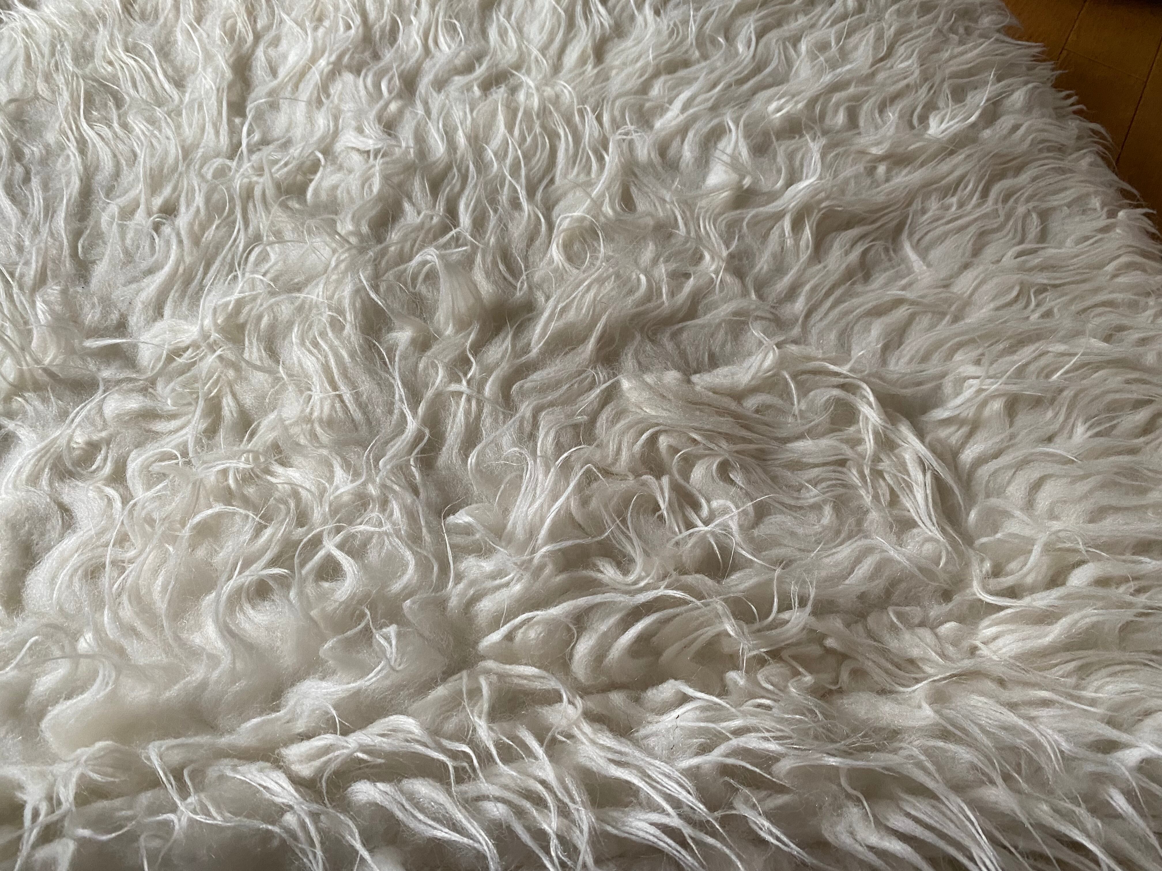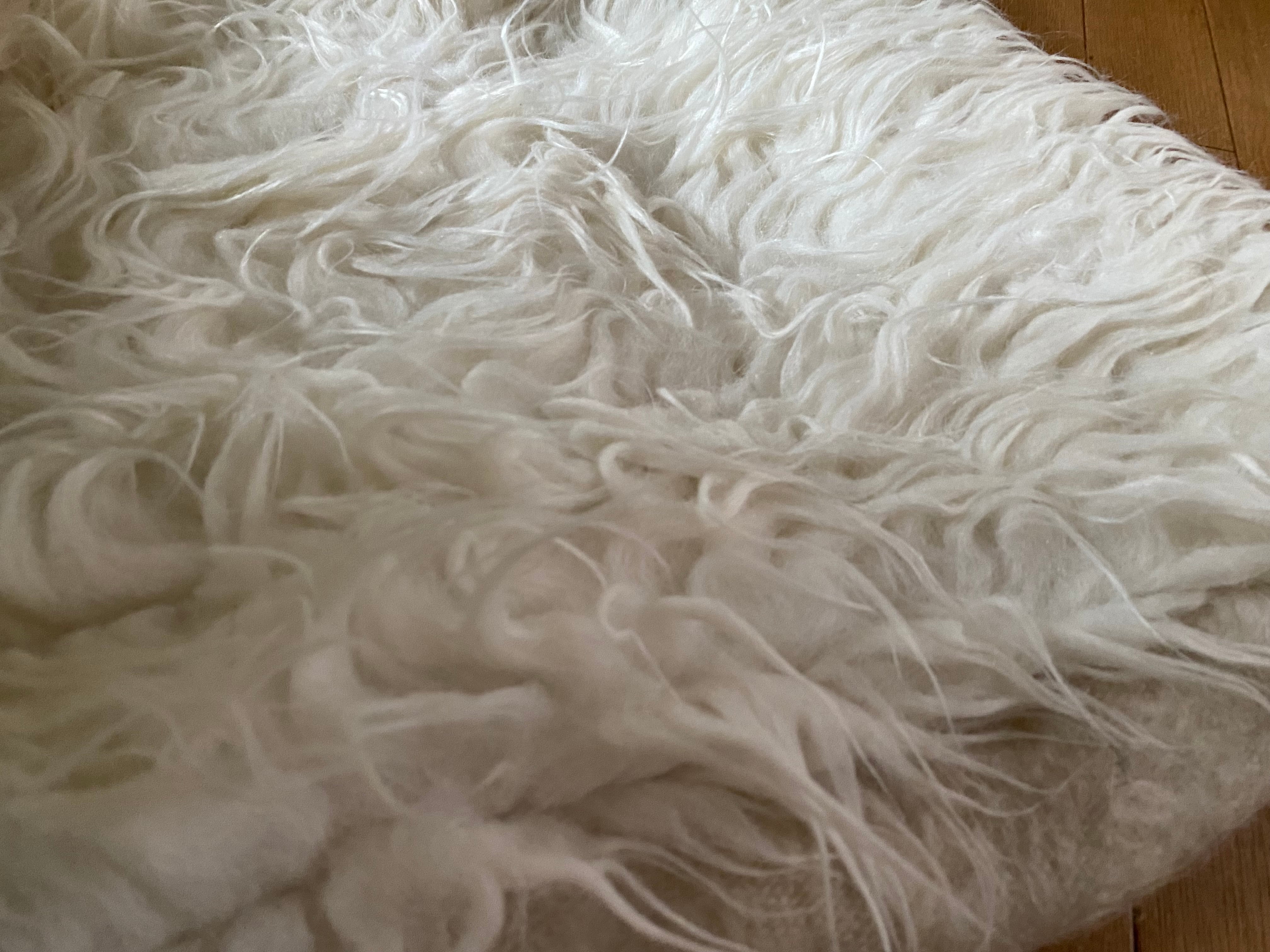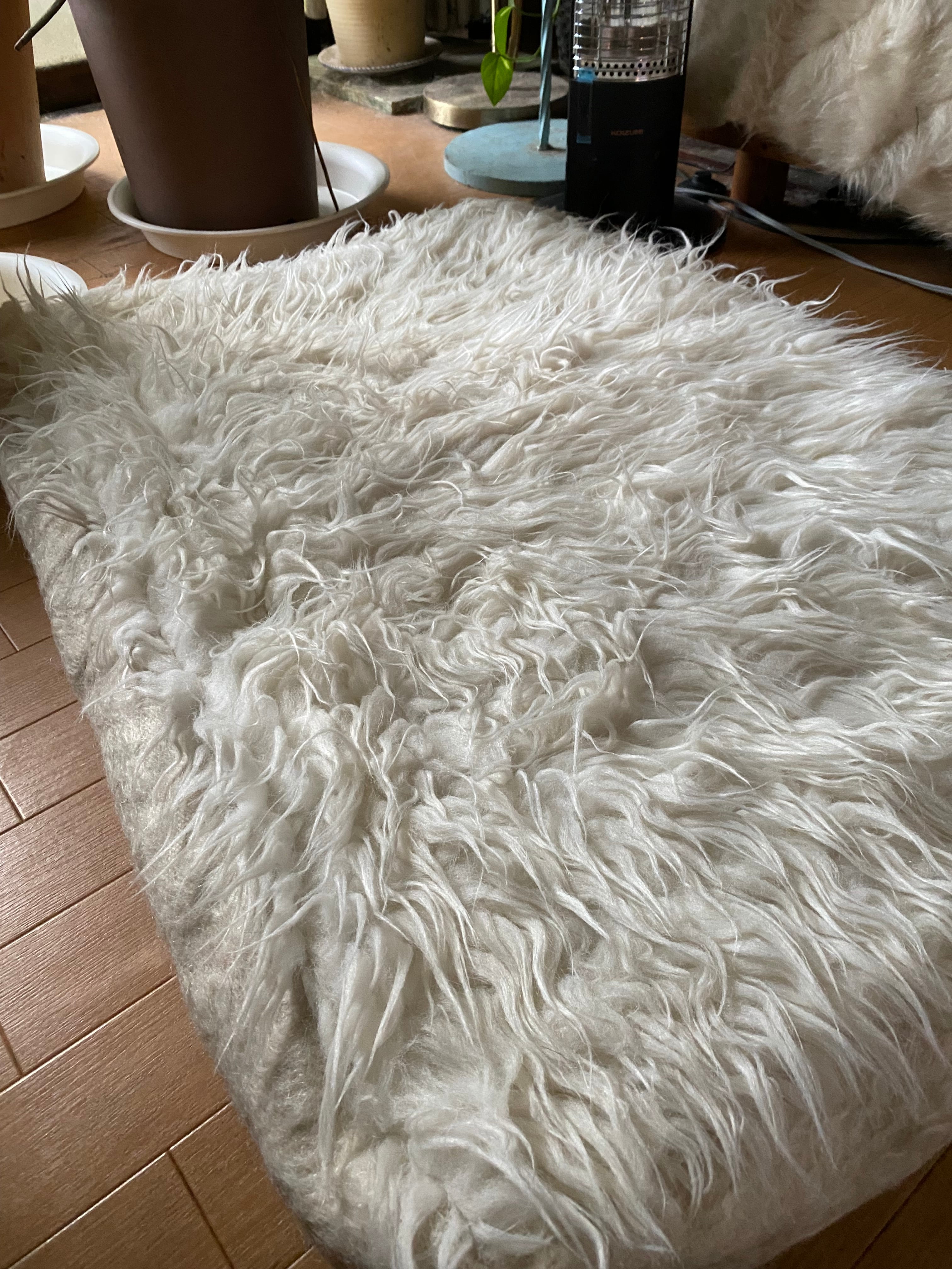 山羊ならではの模様をお楽しみください。 片面だけ毛が出ていて裏は毛がとってあるのだとおもいますので、裏面でお使いいただければ、普通のキリムとして も使えます。 冬は毛がある面で、夏は裏面でキリムとしてお使いいただける優れものです。 また毛のある表は毛をけばだたせて、模様も作っていますのでとてもおしゃれ度が高いです。 新品未使用品です。