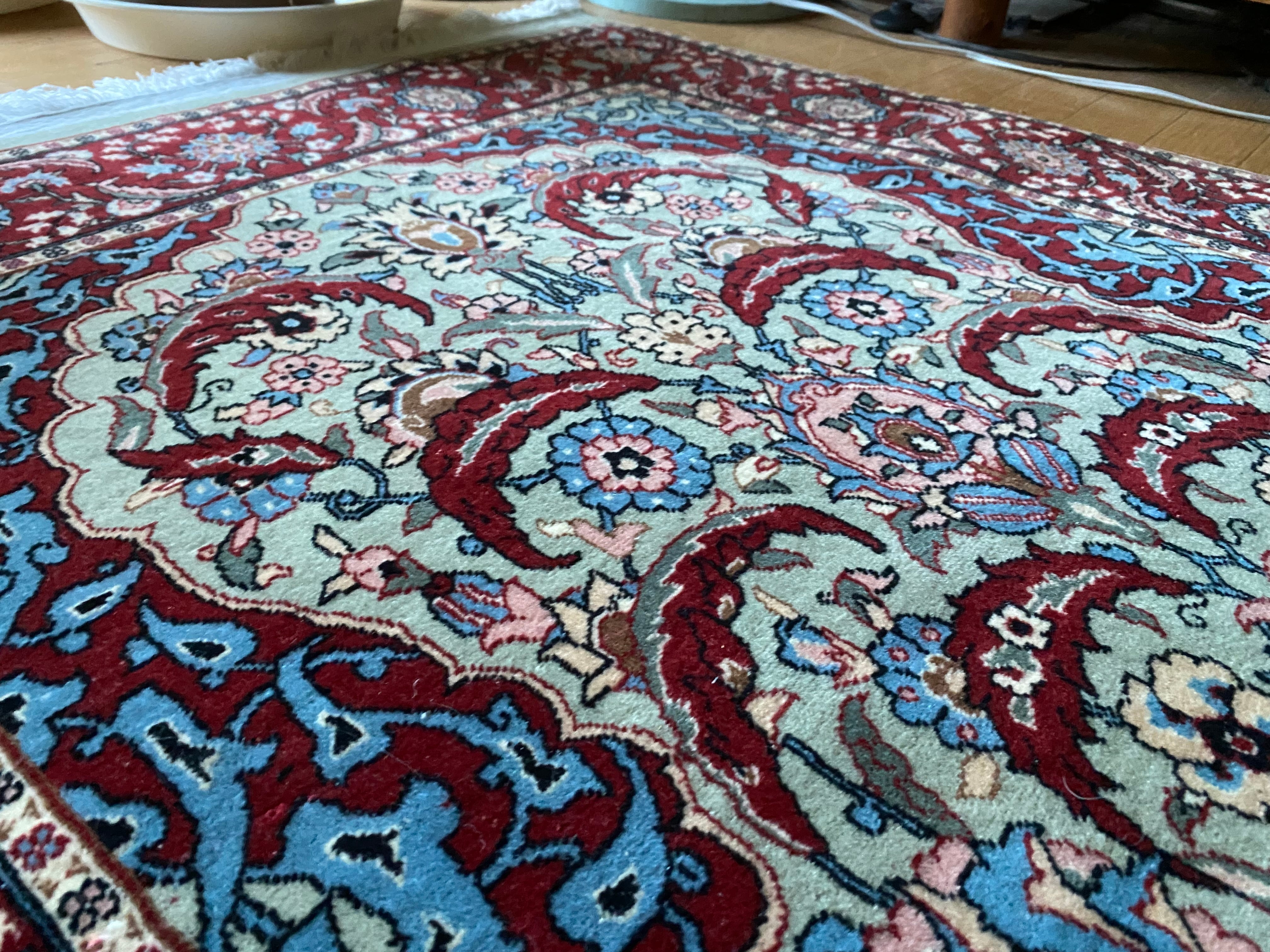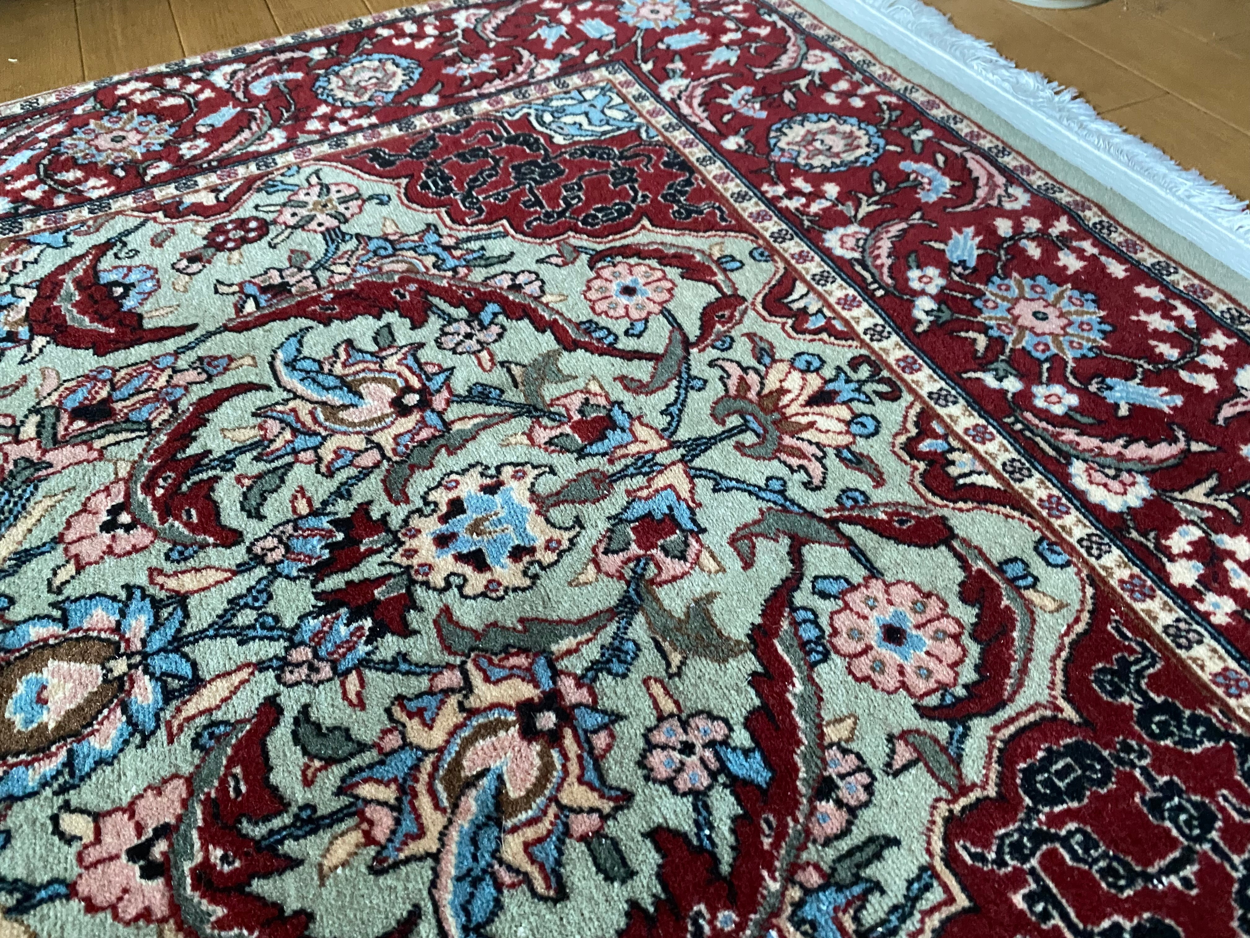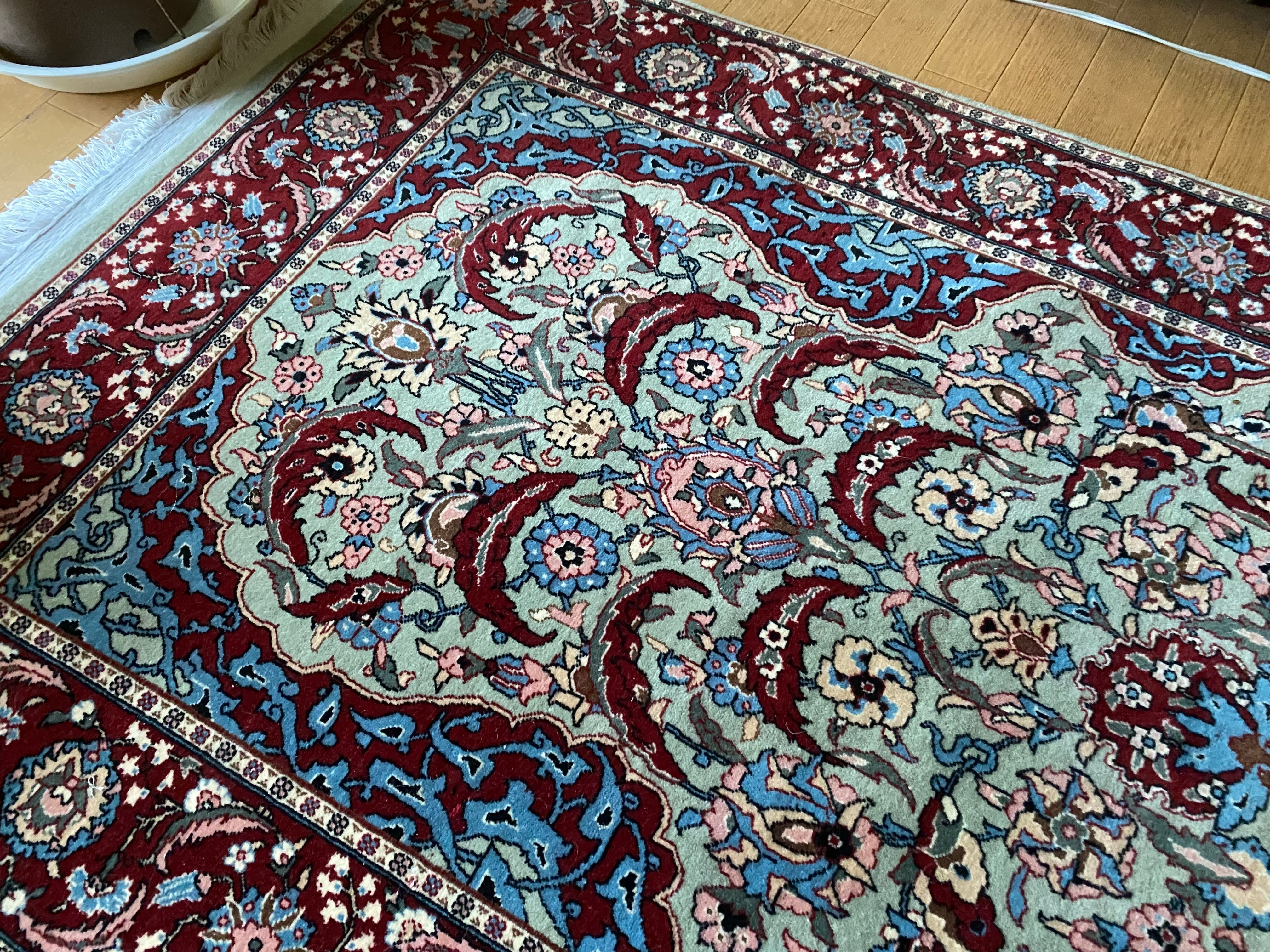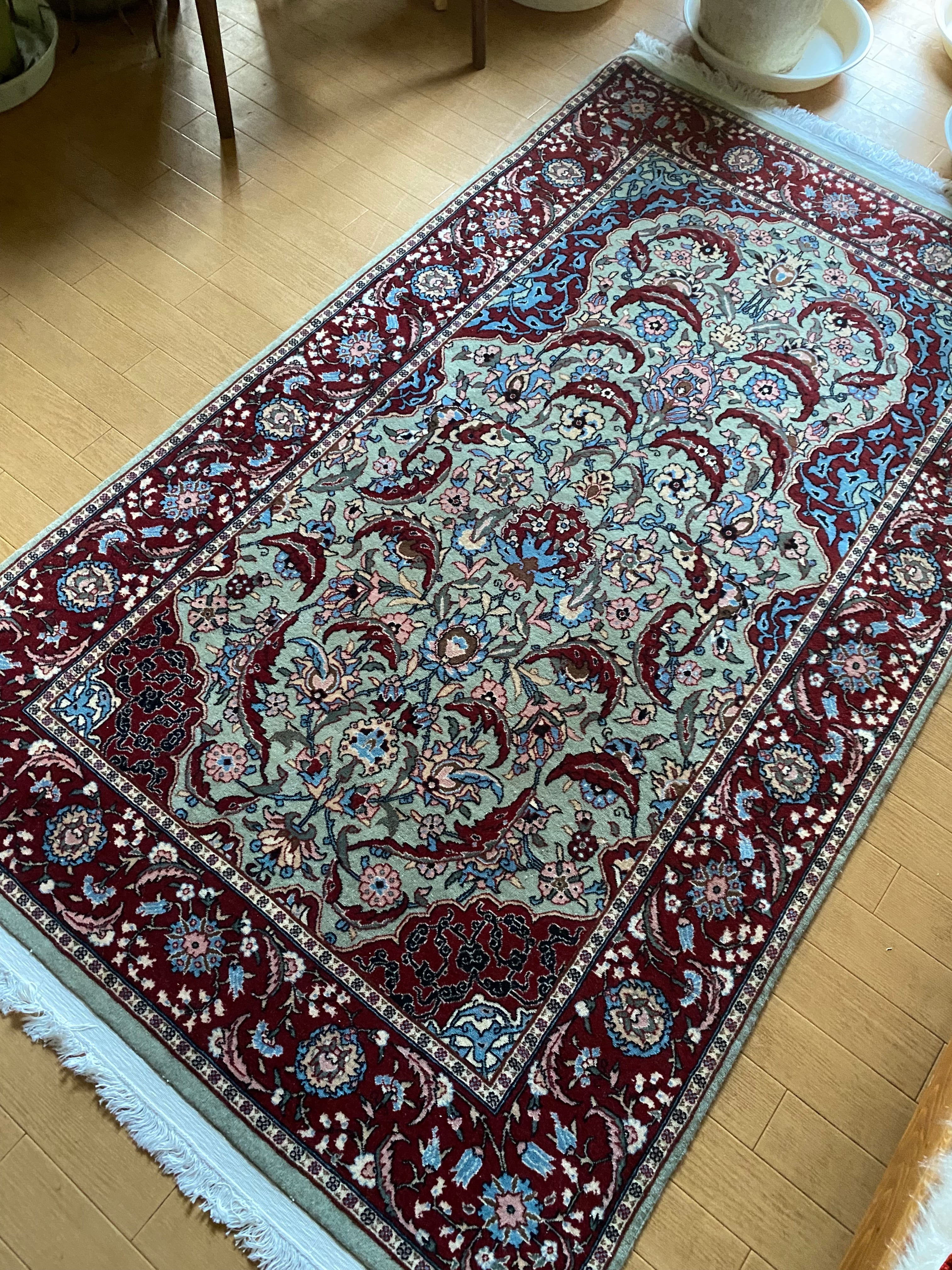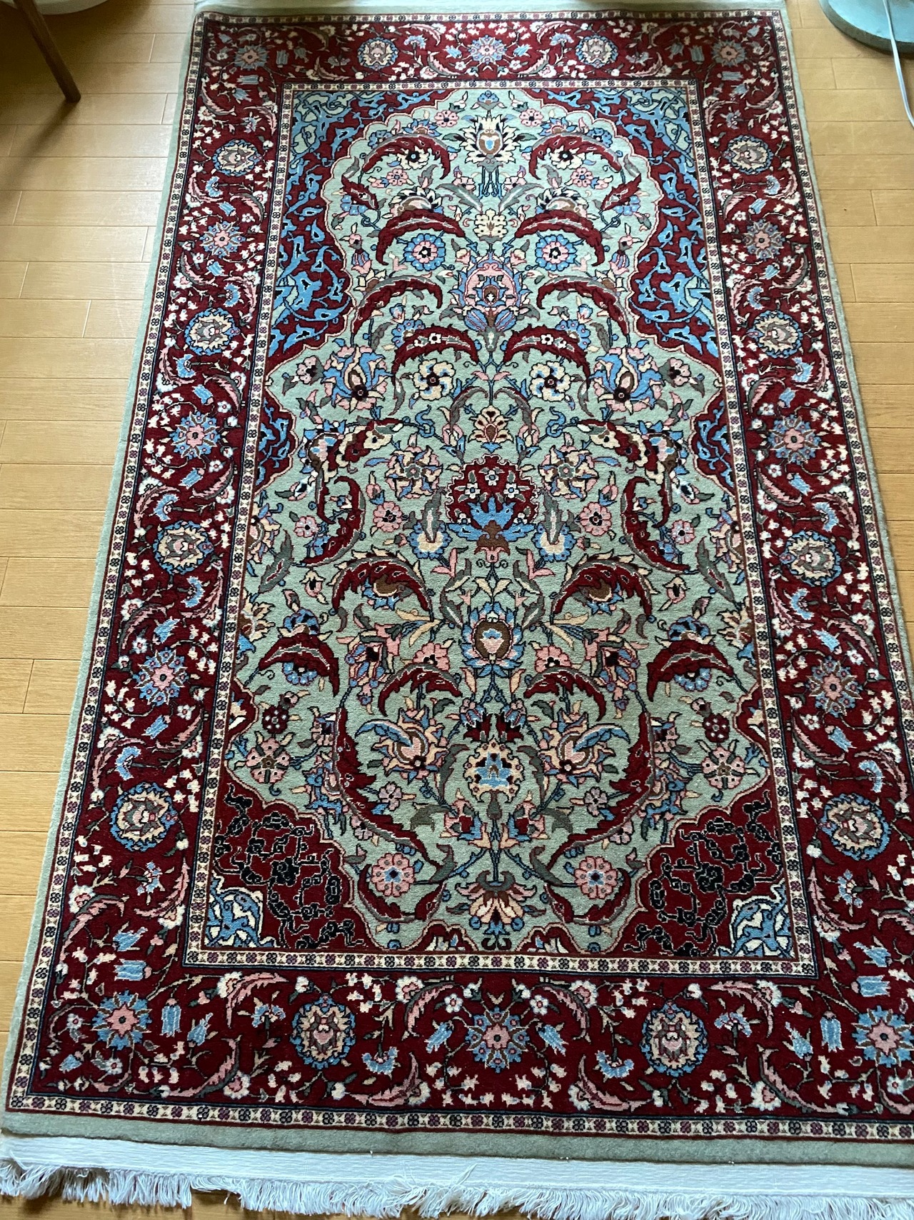 ホームセンターや、ネット販売で、なんということはない目の粗いラグでさえ、小さい物でも2~3万いたしますので、この絨毯がこのお値段はどのぐら全くお安いと思います。 最高の絨毯ですので良い物をご存じの方にお求めいただきたい絨毯です。 トルコでももはやシュメル工房にこだわらず、ヘレケの絨毯は入手困難になっております。