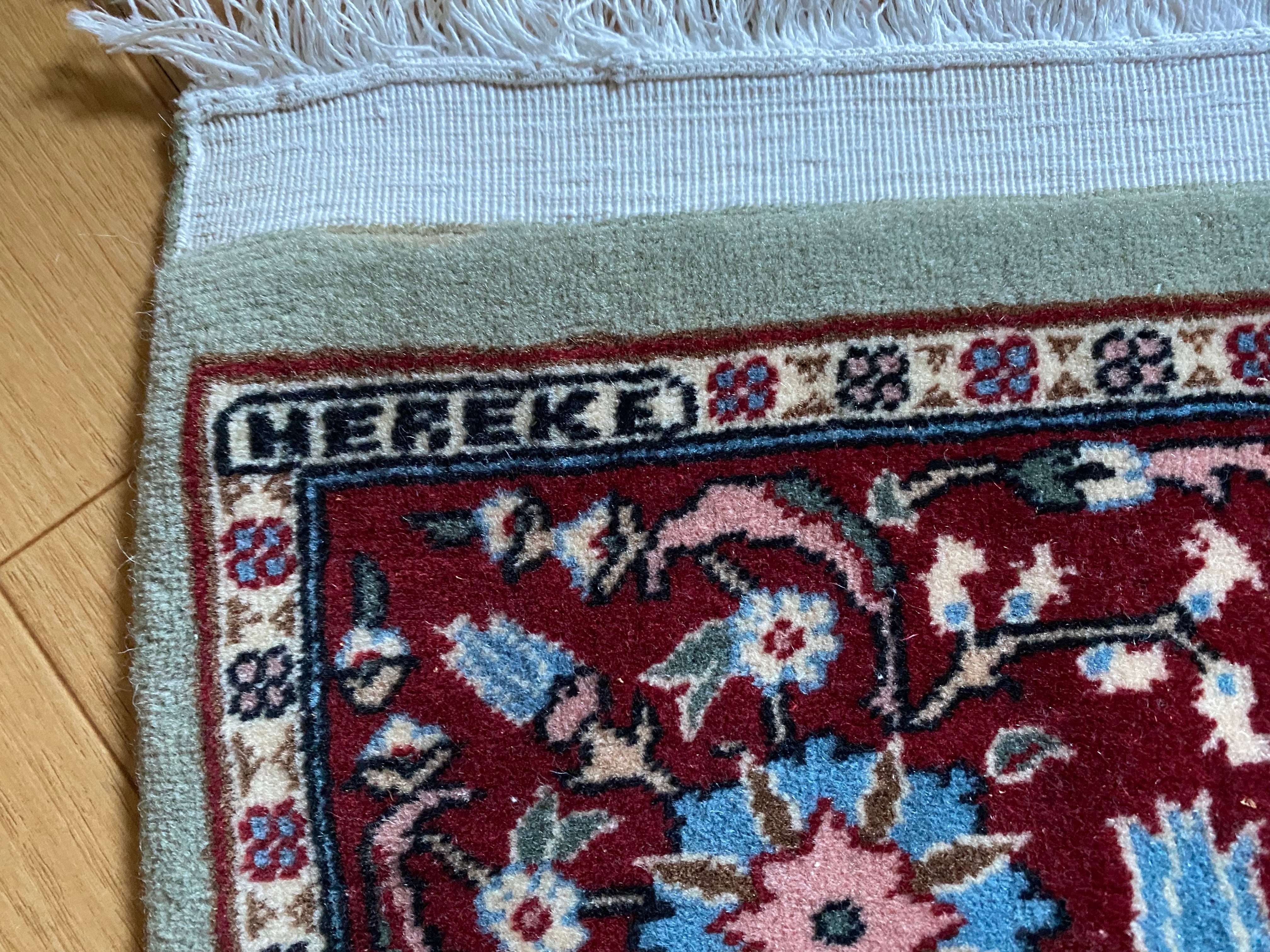 今やトルコ国内でも、ヘレケの絨毯はシュメル工房であってもなくても、1㎡150000円以上のお値段がついています。 シュメル工房のものですと尚のこと高いです。 世界一のトルコのヘレケ絨毯是非手に入れてください。 ヘレケは丈夫な絨毯で、ギネスにも載るほどです。いわゆるホームセンターで売っているふわふわのラグではなく、しっかりと密に織られたもので、ふわふわ感はありませんが、 本物の絨毯です。すべて総草木染の染料が使われています。 長期にわたりシュメル工房の倉庫で保管されていたものですので新品未使用品ですが、端の白いコットンの房の部分に錆が多少ついているものもございます。またHEREKEの文字があるものとないものがございますが、品質に変わりはありません。 ご理解いただける方のご入札をおねがいいたします。倉庫での長期間での保管になりますので、 房の多少の汚れや錆での返品交換は固くお断りいたします。よろしくお願いいたします。神経質な方のご入札はお断りいたします。画像でご判断ください。 トルコが誇るヘレケ絨毯ご満足して頂ける逸品です。