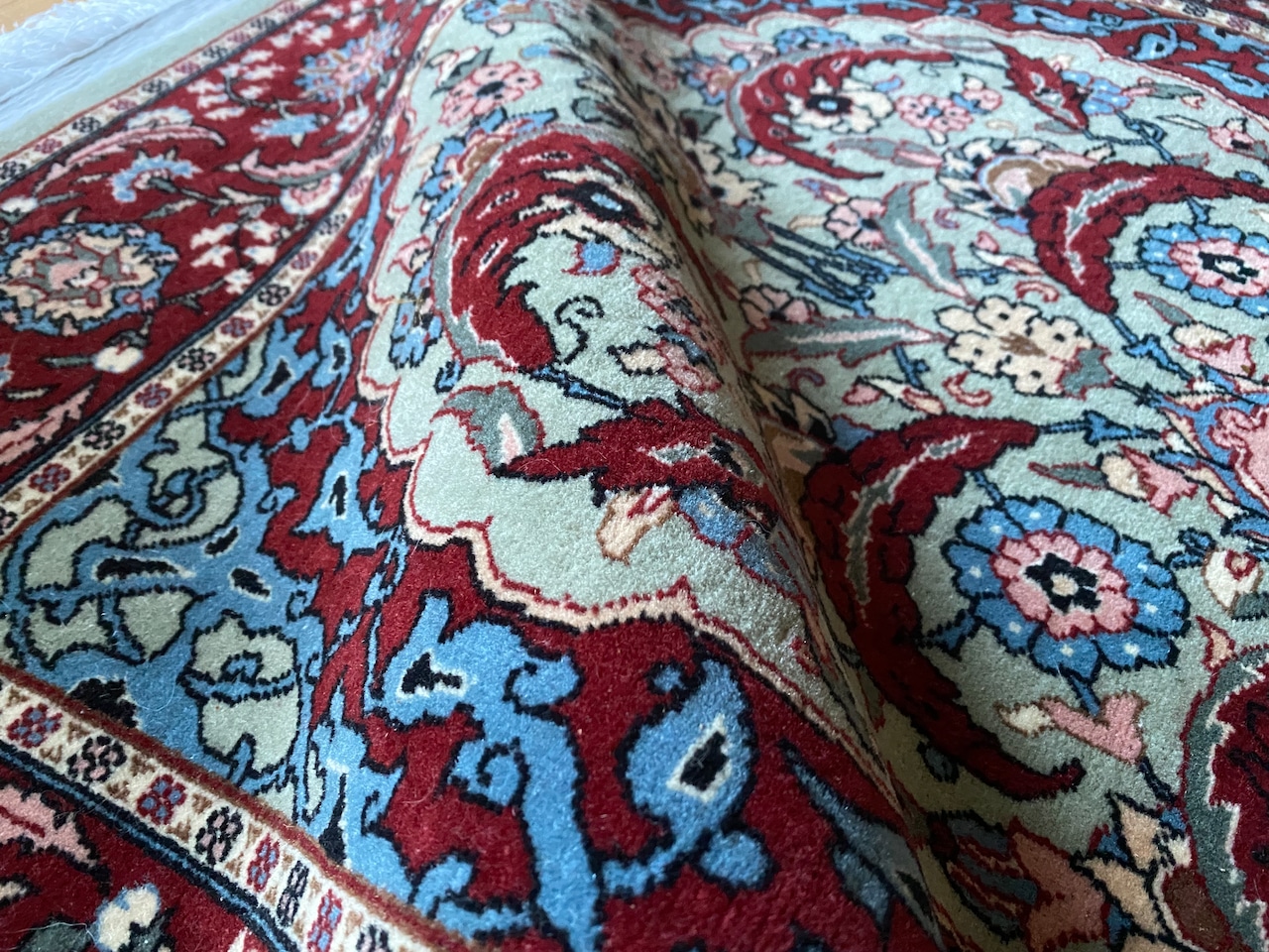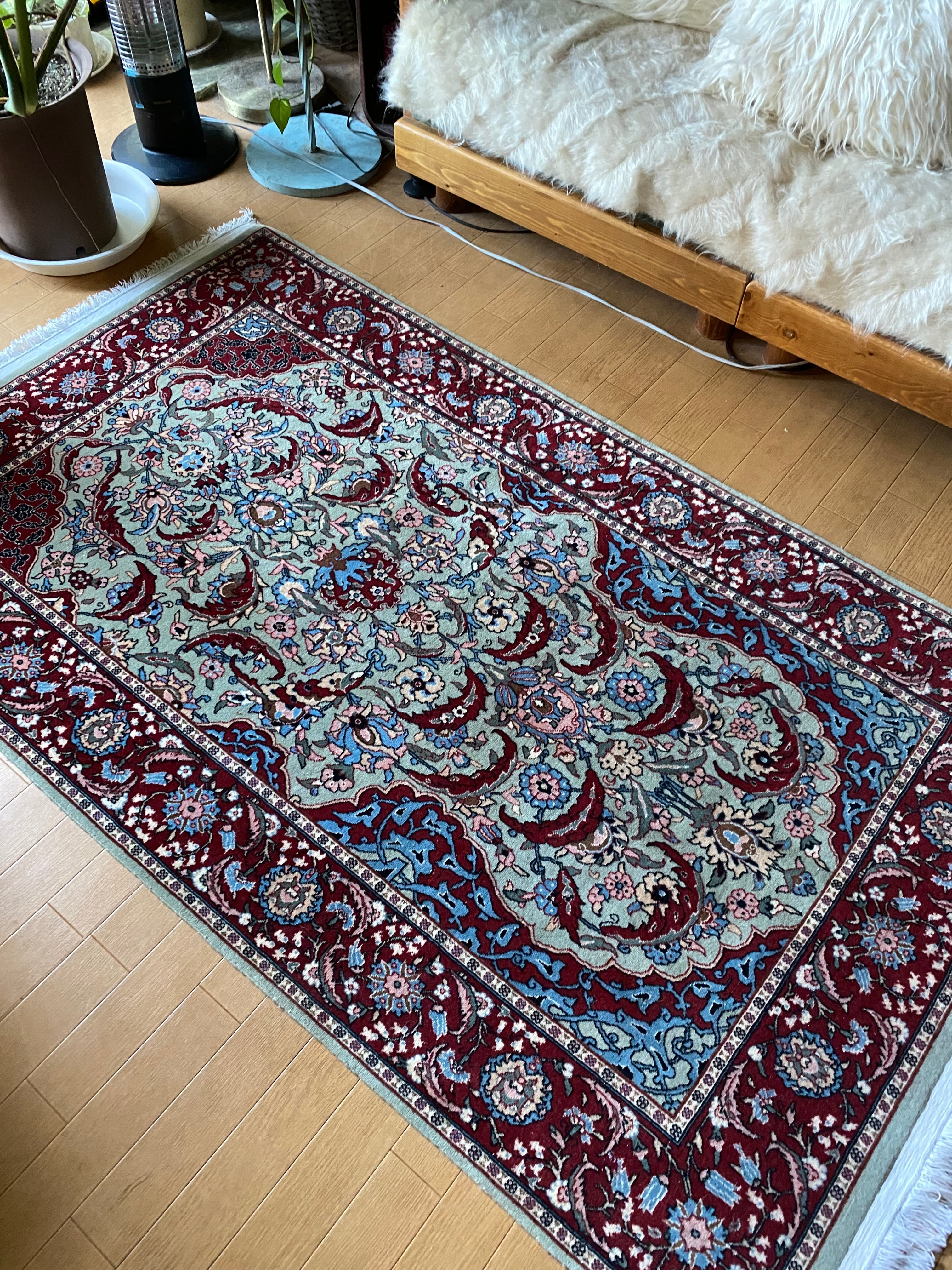 一生に一枚は欲しいシュメル工房ヘレケ絨毯今ではトルコても入手不可スルタンアフメット柄HEREKE織り込み有ステッカー付き189×109展示品ほぼ未使用品この価格で手に入るのは27年現地直輸入当店のみ