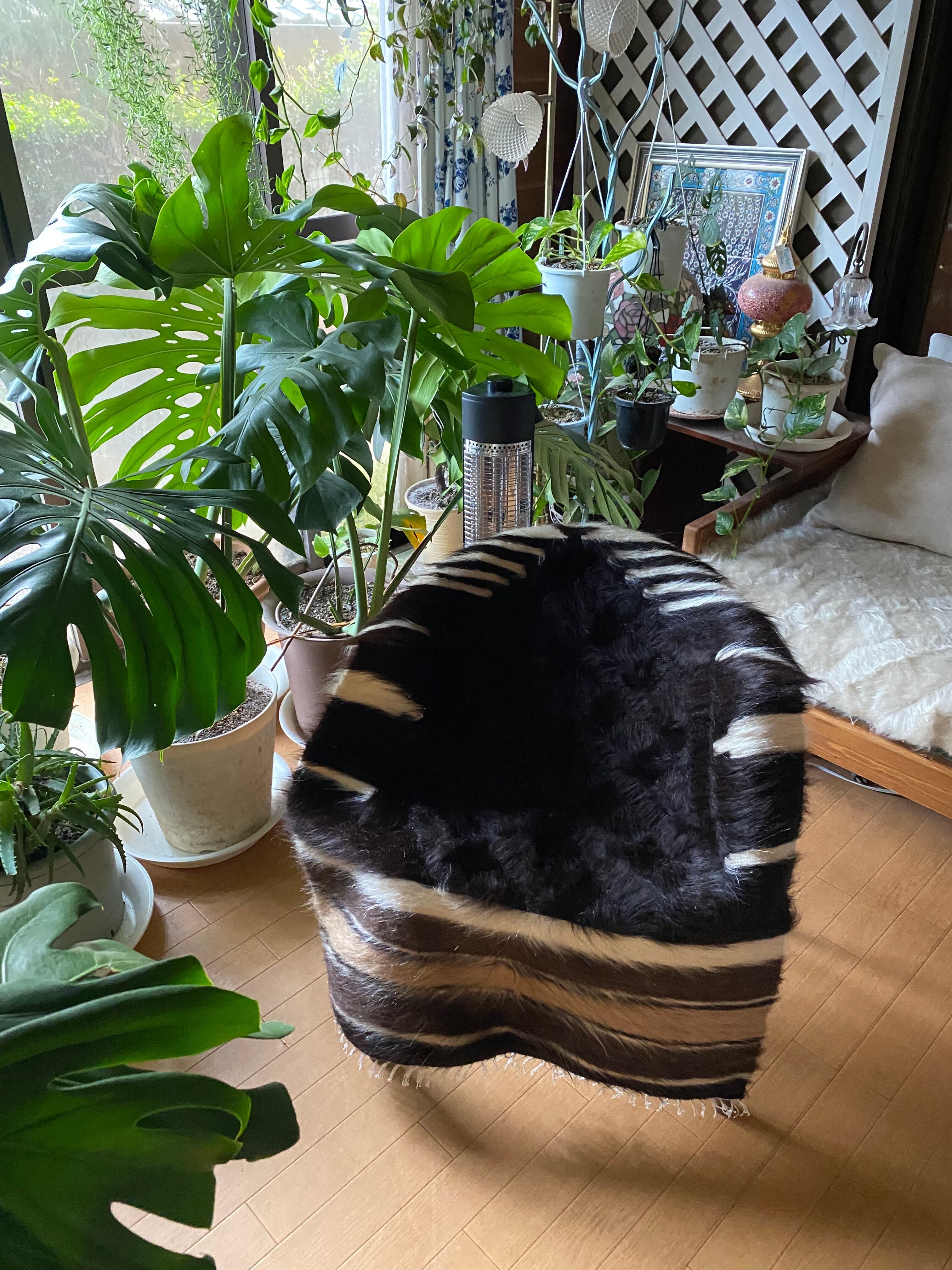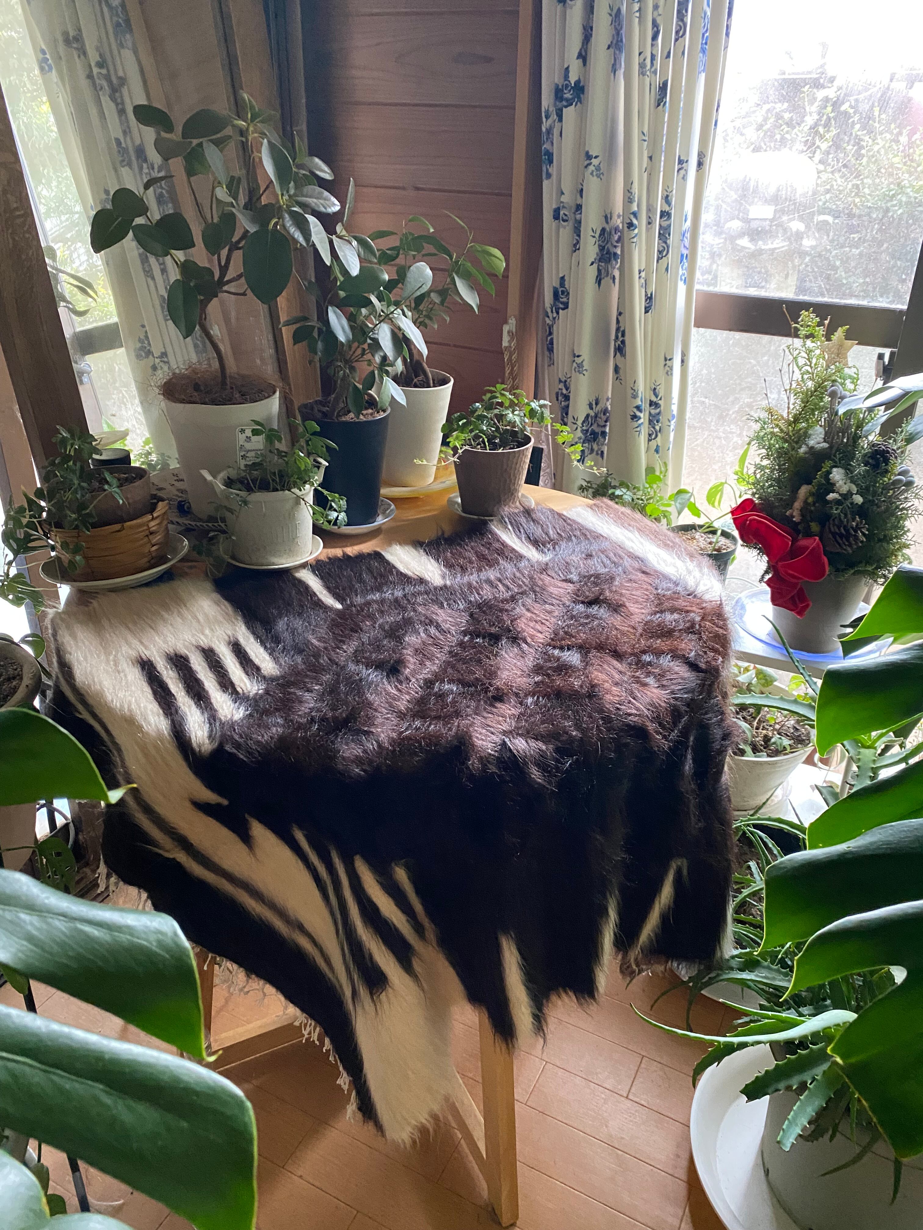 冬は毛がある面で、夏は裏面でキリムとしてお使いいただける優れものです。