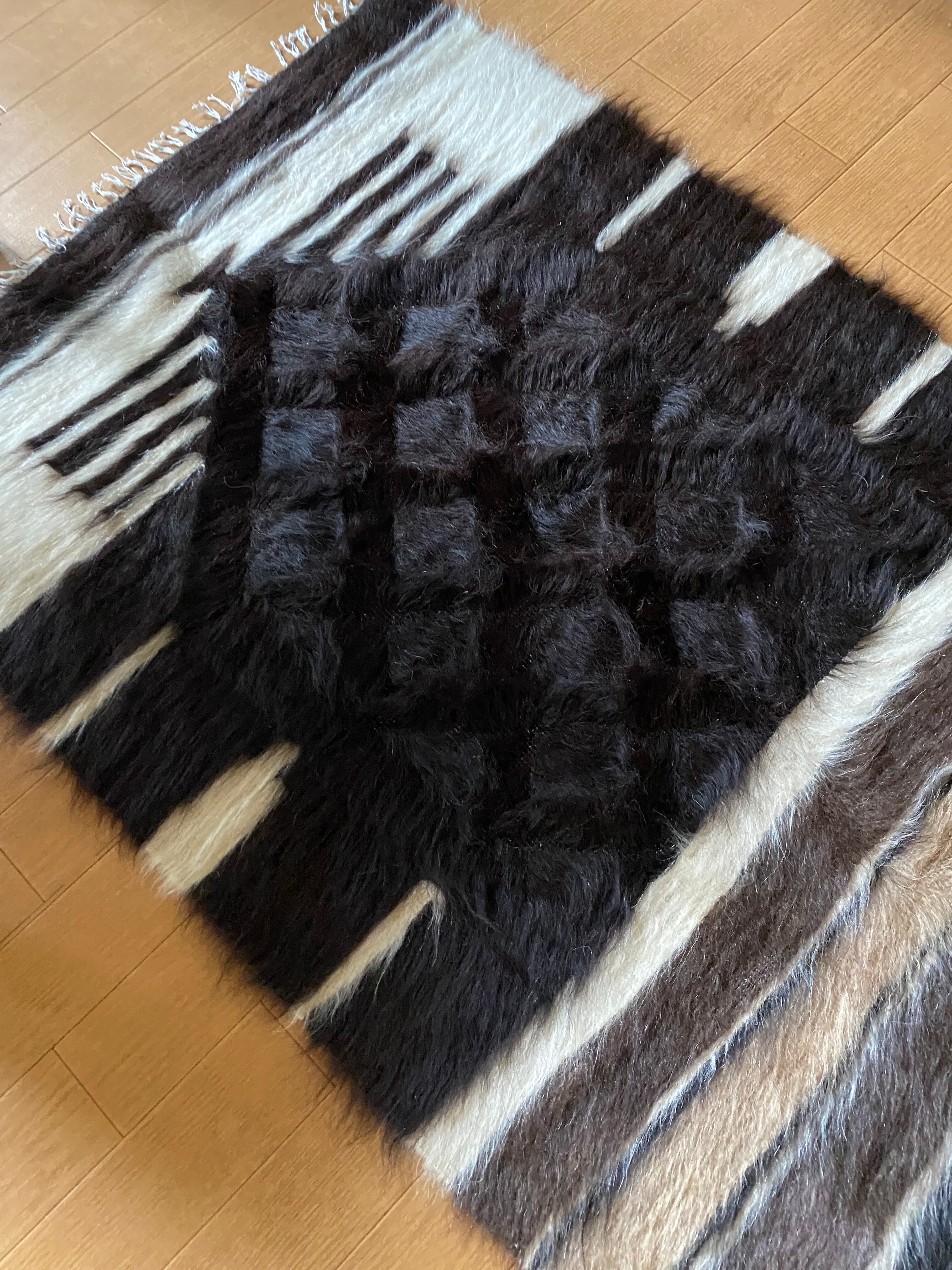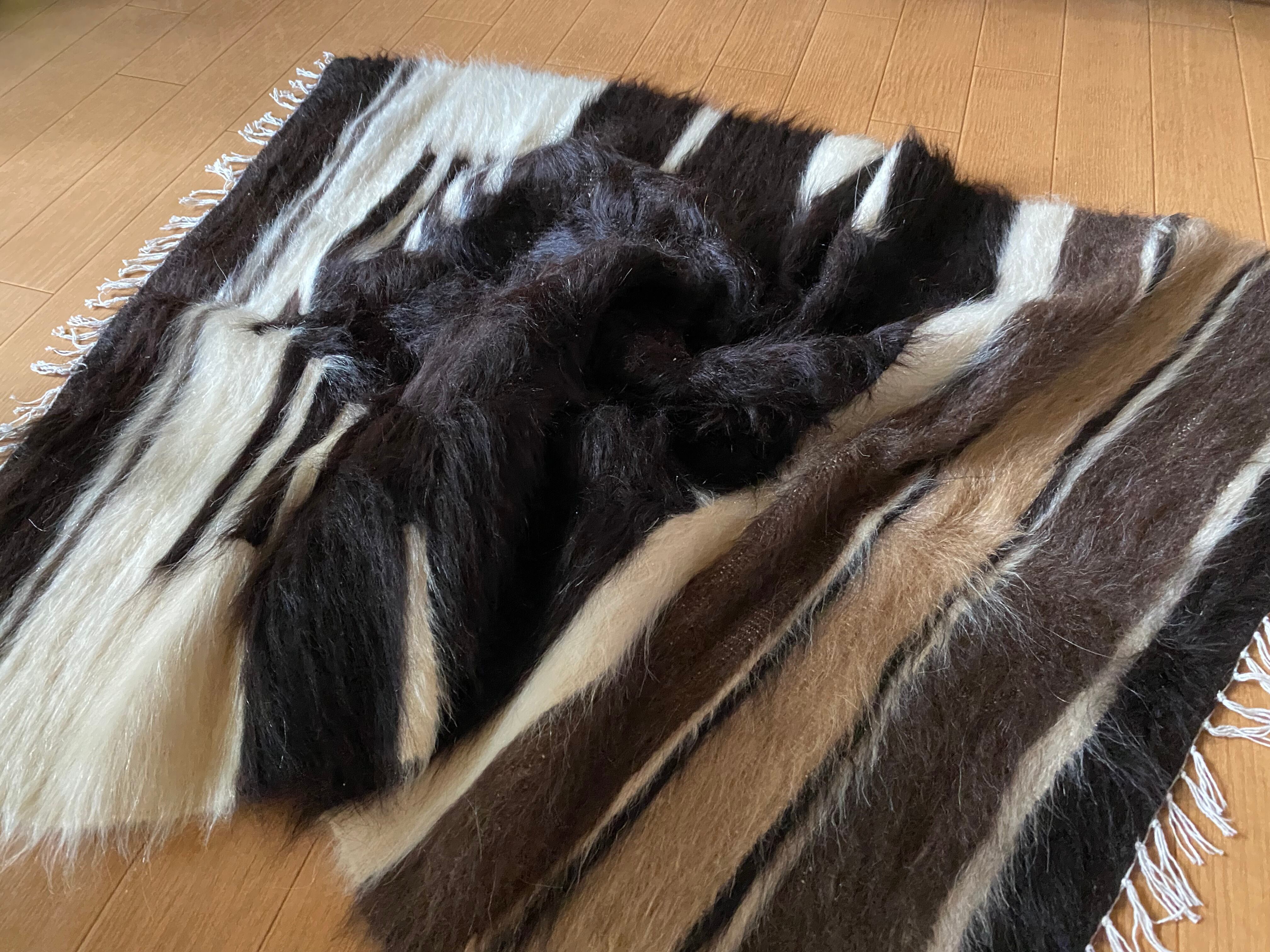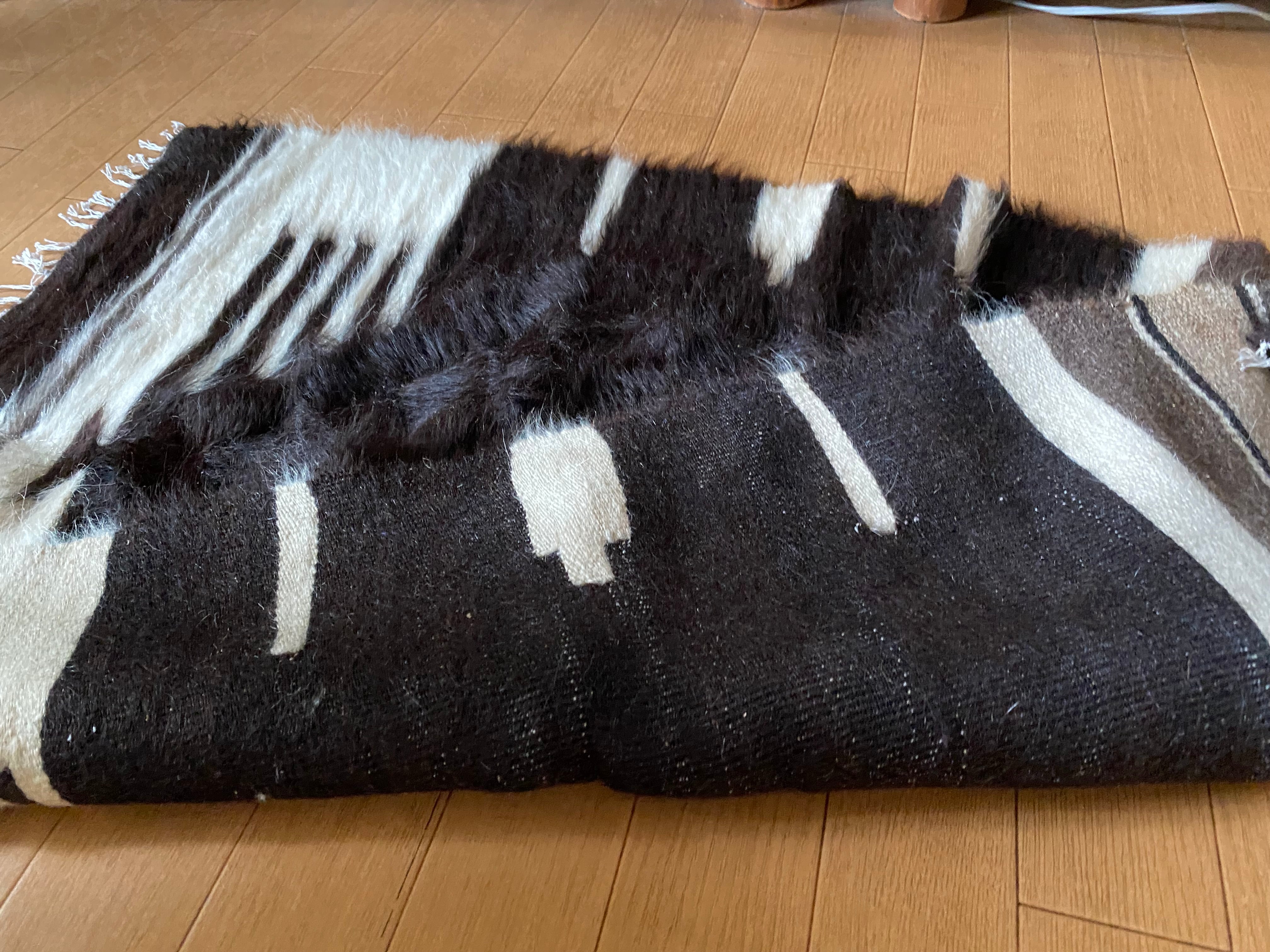 黒山羊の毛が貴重な一枚!よく見ると焦茶の毛も入っていてとても素晴らしいバッタニイェです。