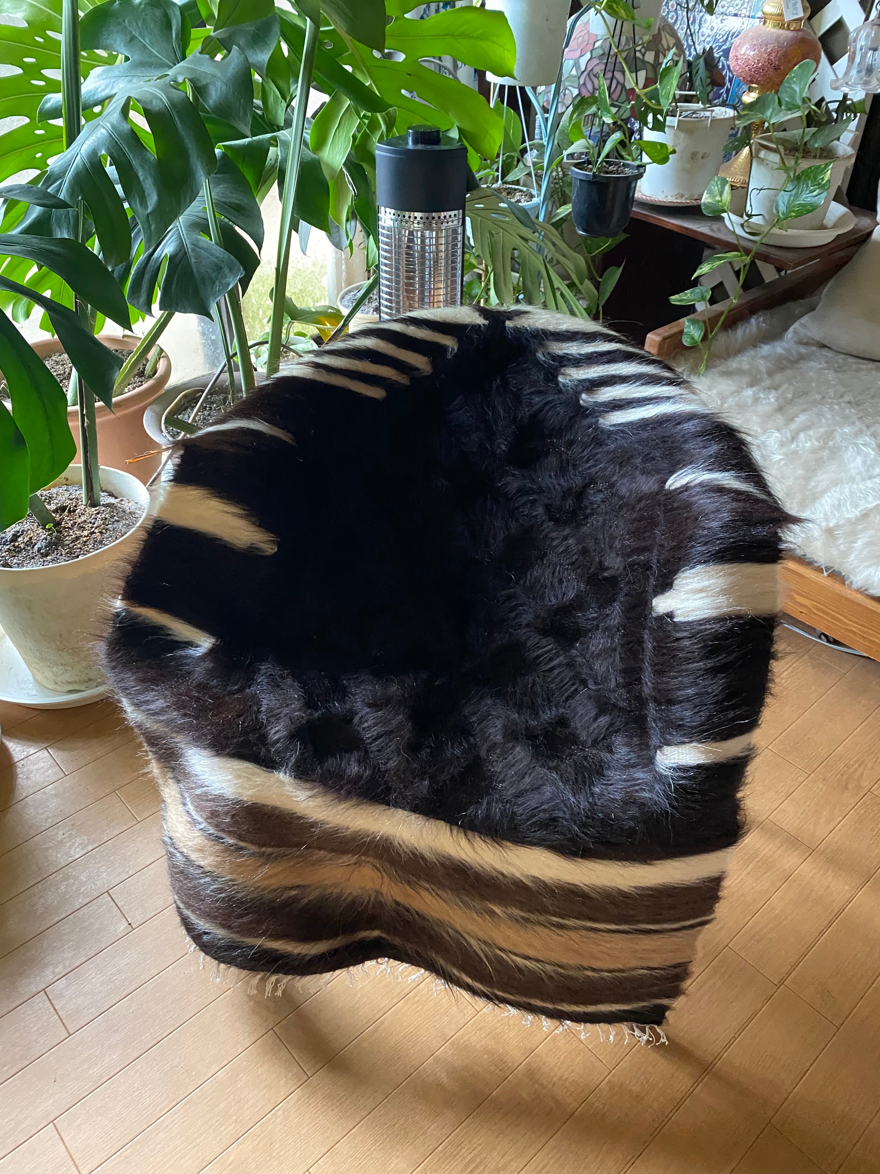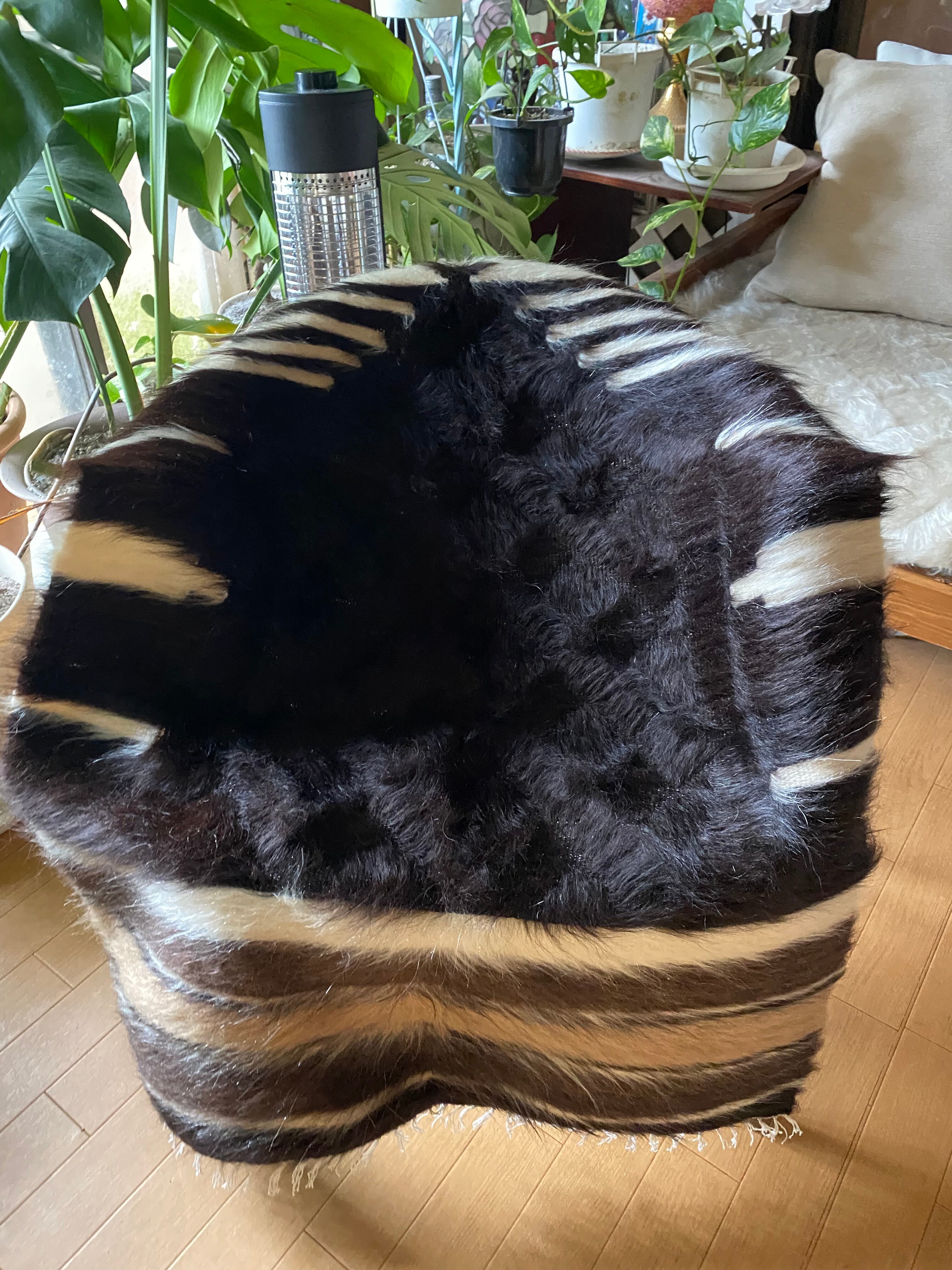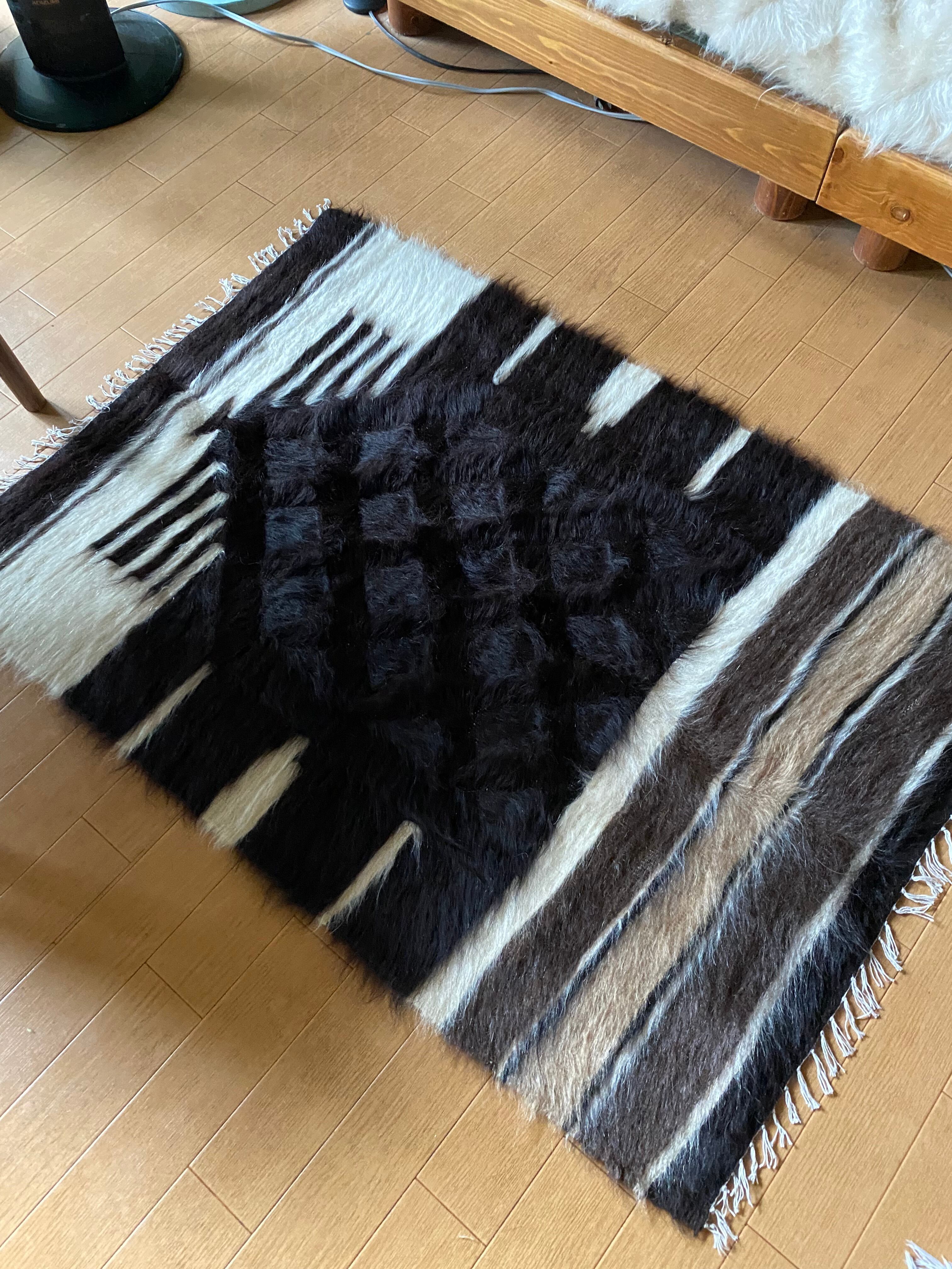 黒山羊の毛が貴重な一枚!よく見ると焦茶の毛も入っていてとても素晴らしいバッタニイェです。