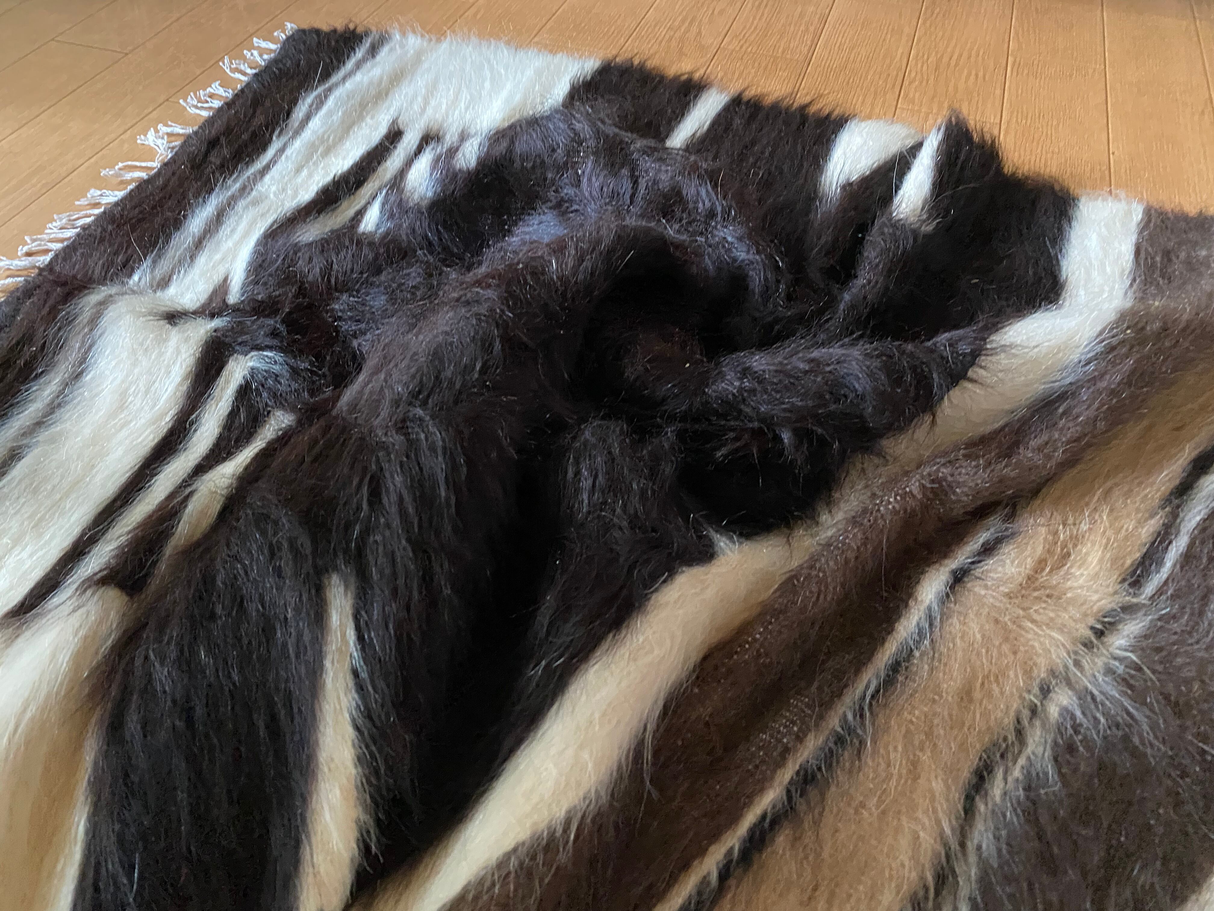 アンゴラヤギのモヘアで織られたほぼ未使用ですが、40年ほど織られたもので今織られたものよりさらに密でモヘアの質が大変良いです。新古品になります。