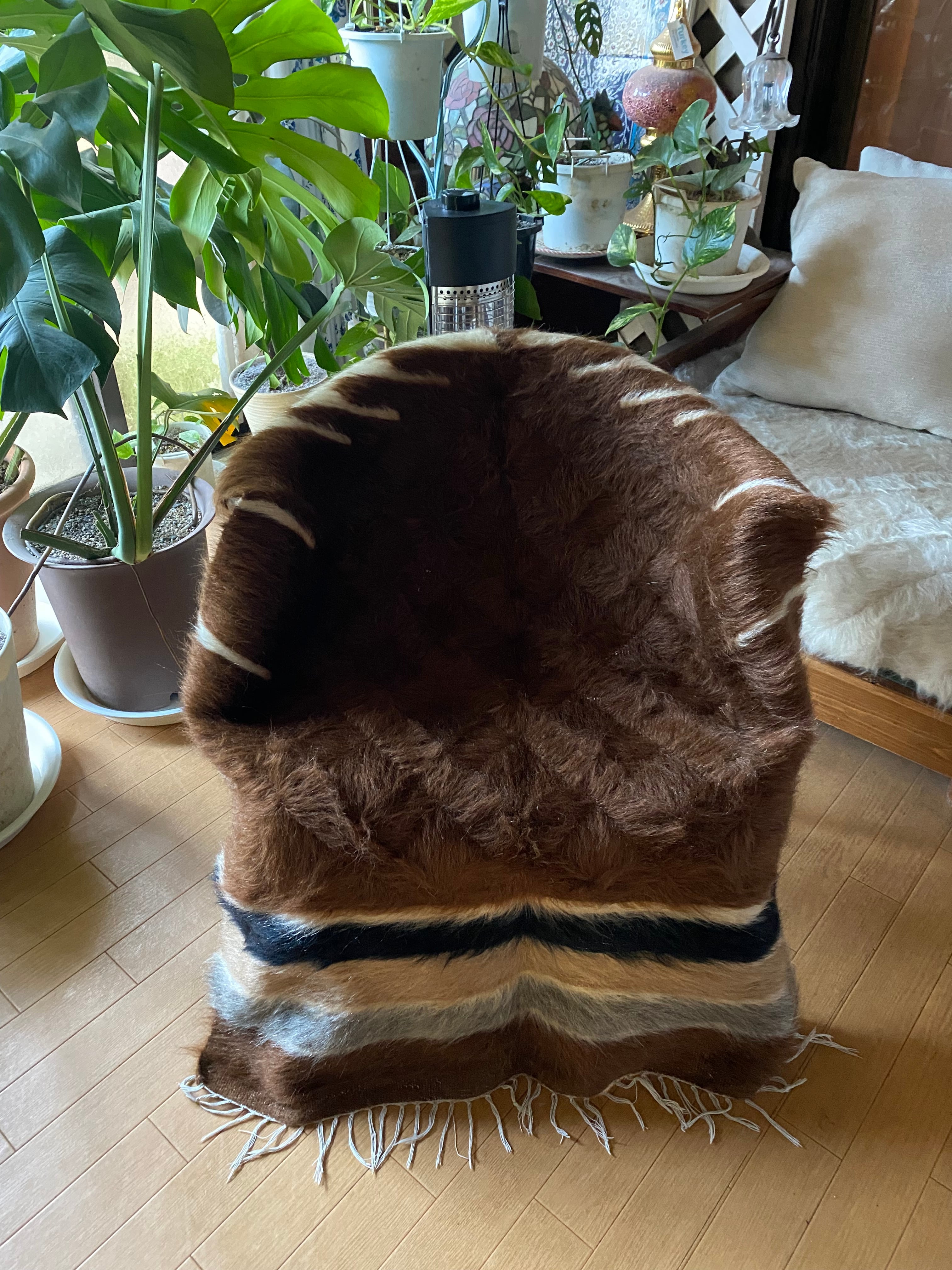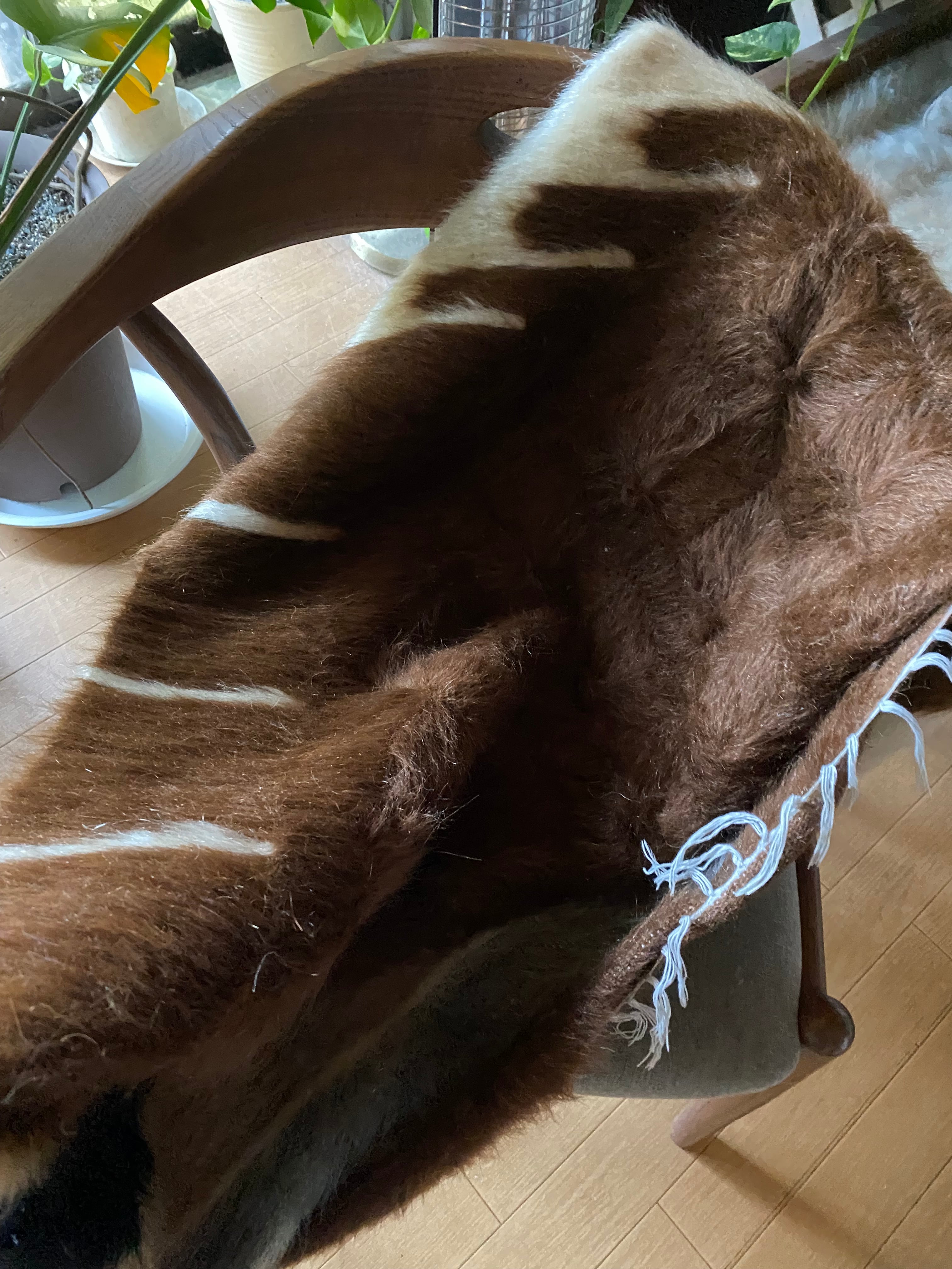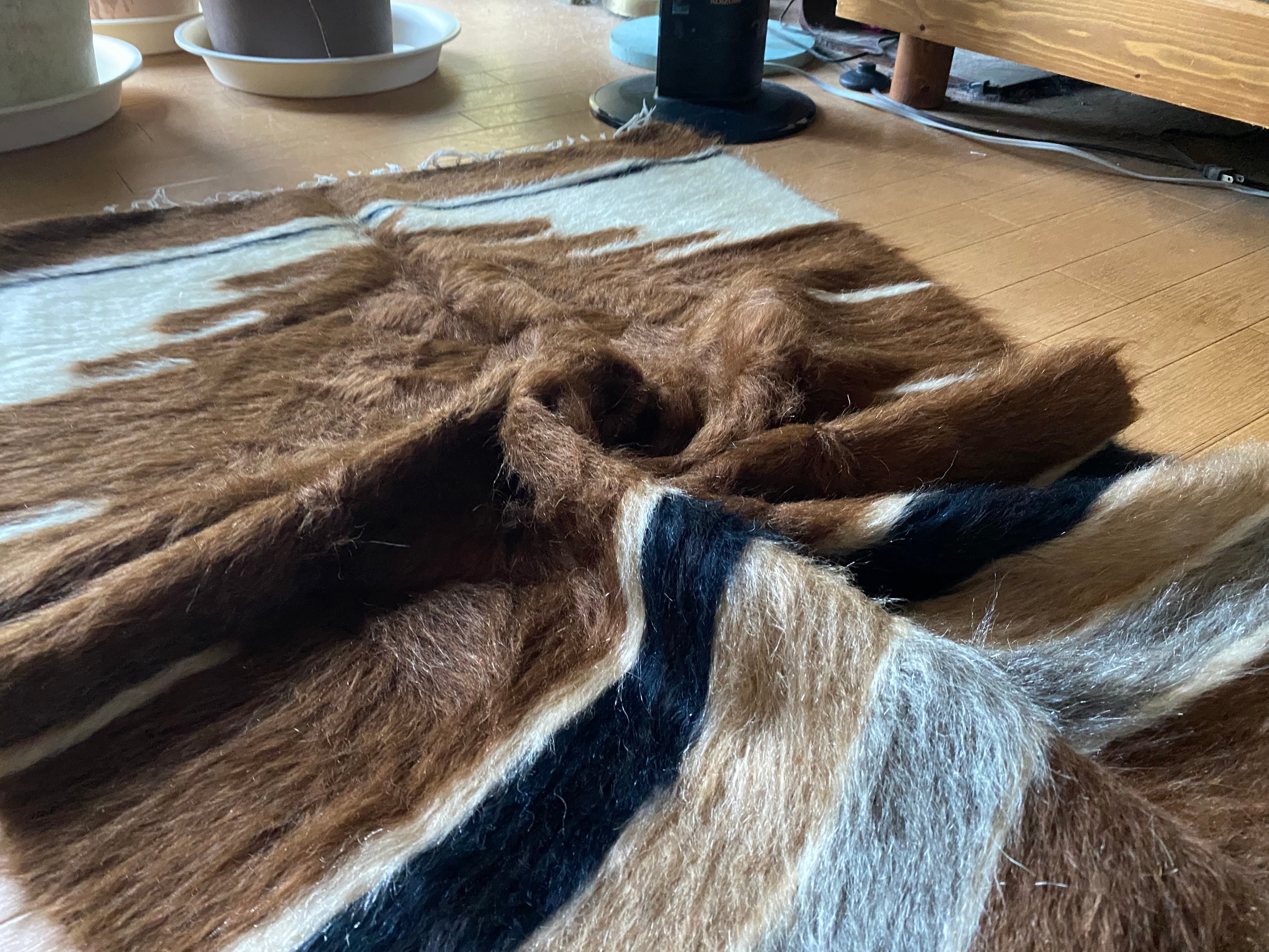 こちら通常の新しいシイルトバッタ二エにくらべ、毛量が多めの素晴らしいアンゴラ山羊100%のシイルトです!