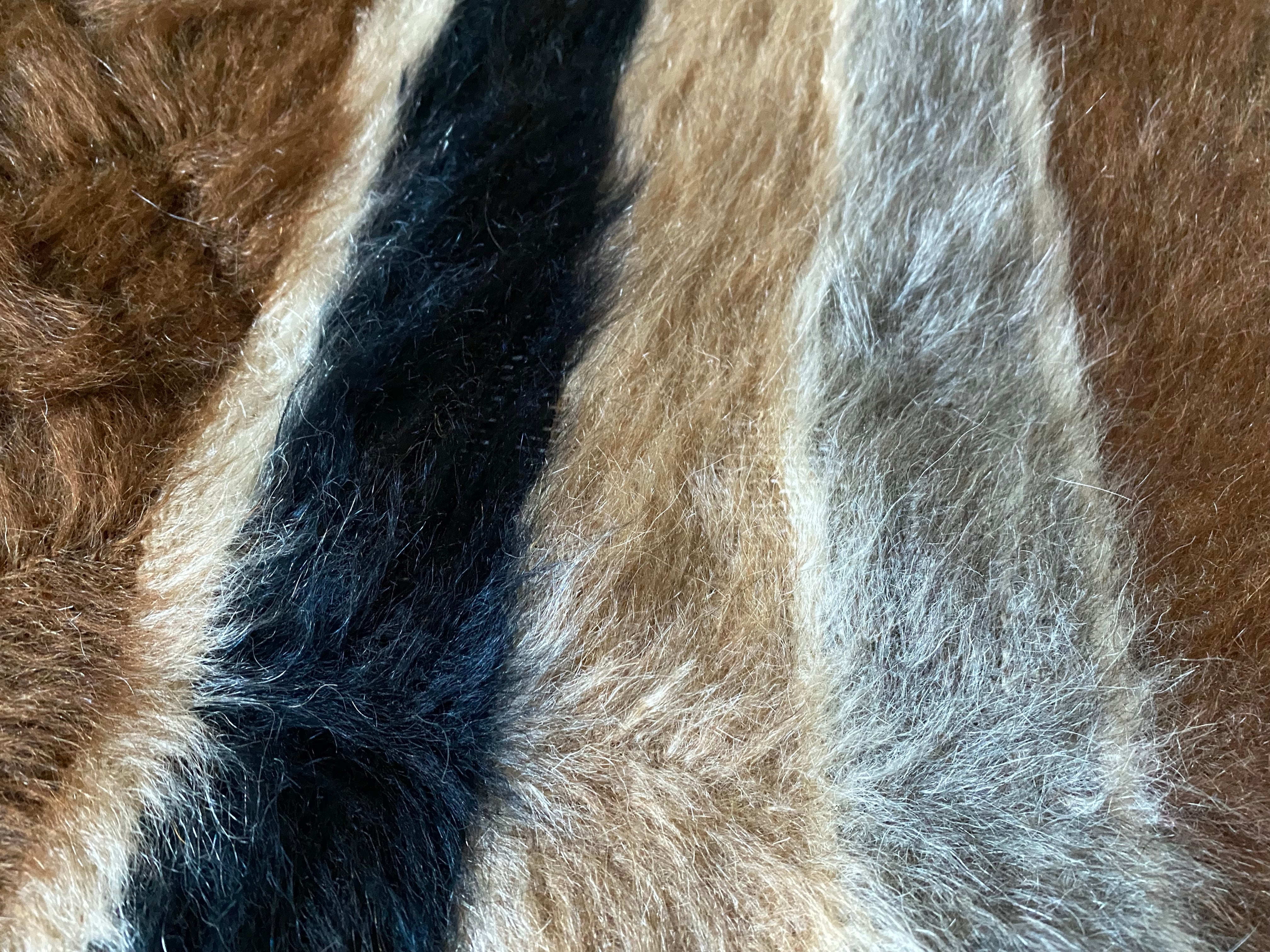 特にアンゴラ山羊からのモヘヤを使って織られているこのシイルトは大変価値も高いもので、艶もあり、素晴らしく温かいです。 自然のアンゴラヤギの毛で織られていますので、独特のくるくるとした感じも可愛く、とてもナチュ ラルな感じです。アンゴラ山羊は18世紀の中ごろまでオスマントルコが飼育を独占していたらしいです。