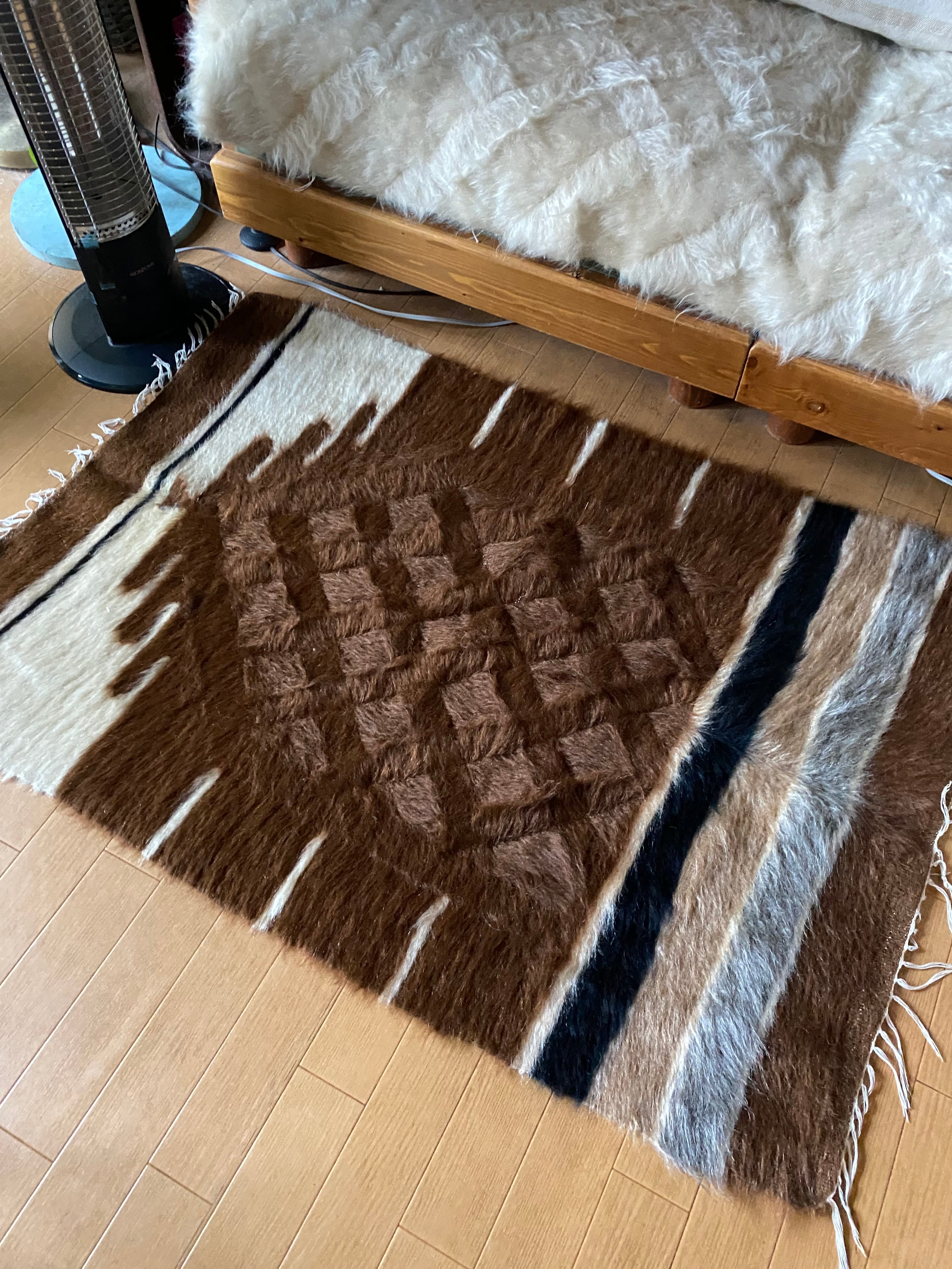 遊牧民によって動物の毛を紡いで織られているため、特に山羊の毛は多少ちくちく感はございます。