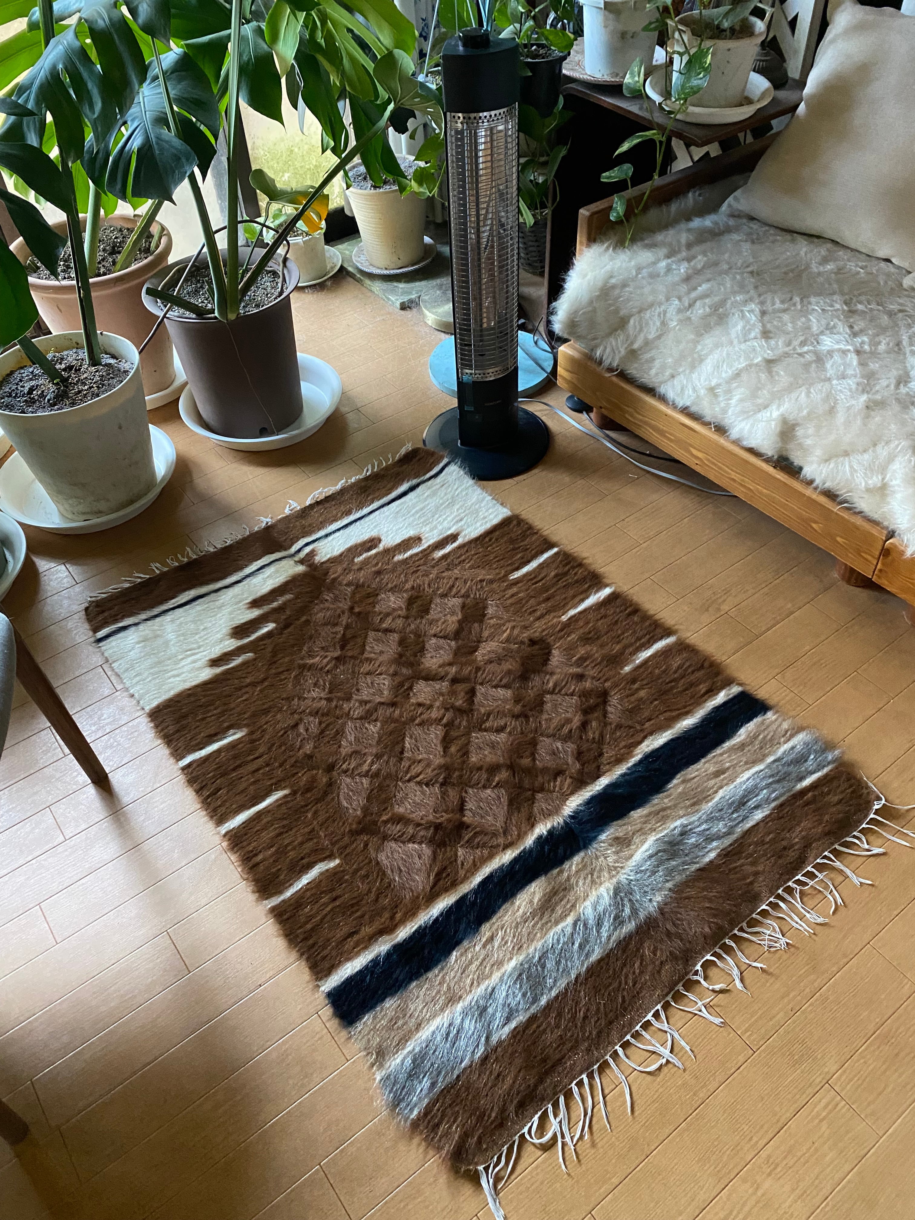 冬は毛がある面で、夏は裏面でキリムとしてお使いいただける優れものです。