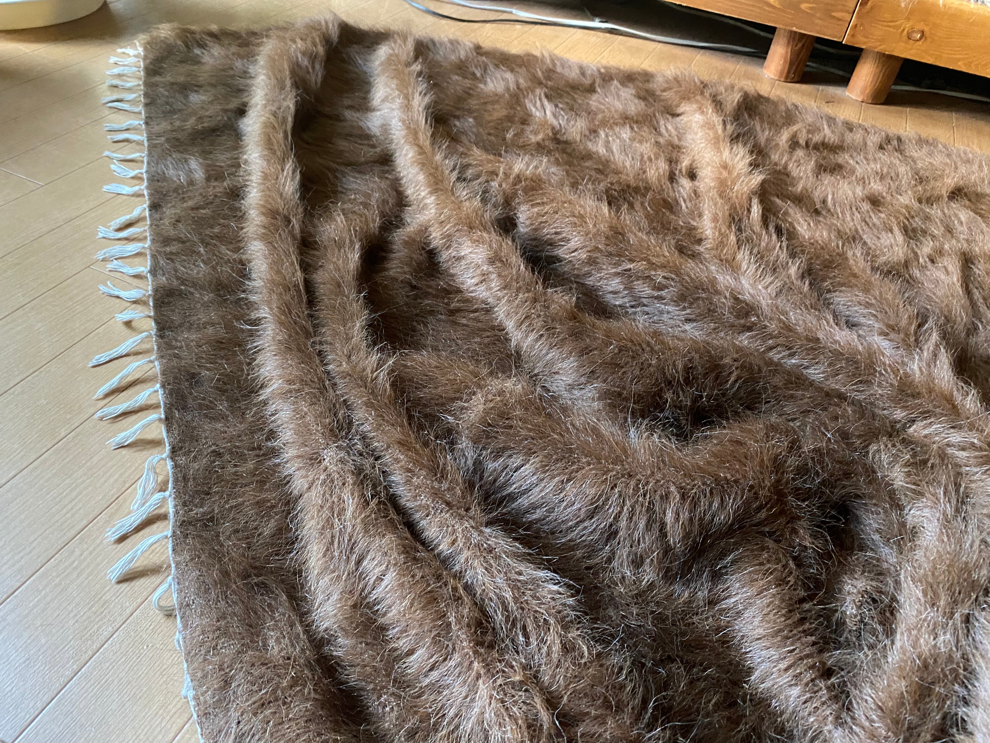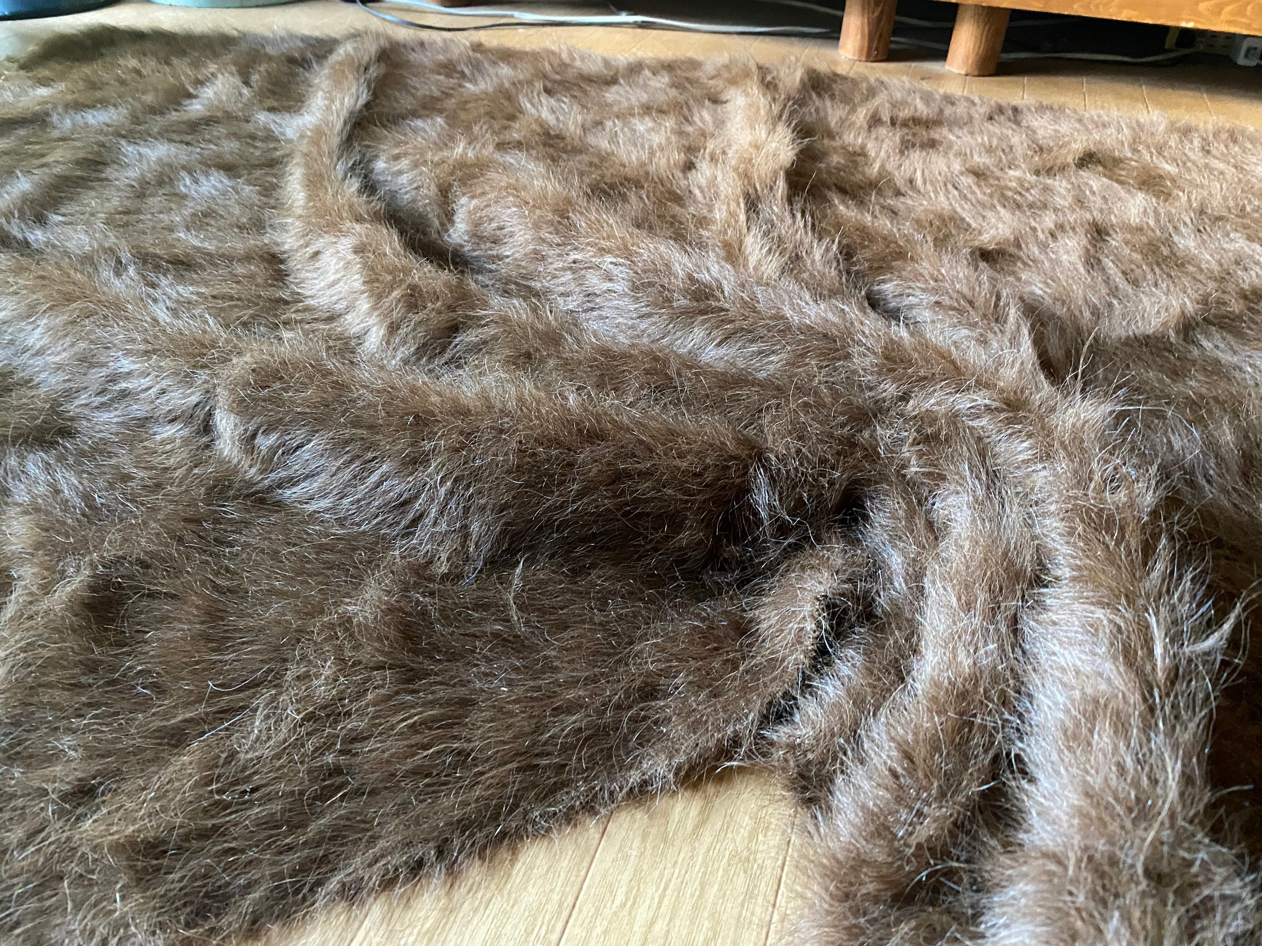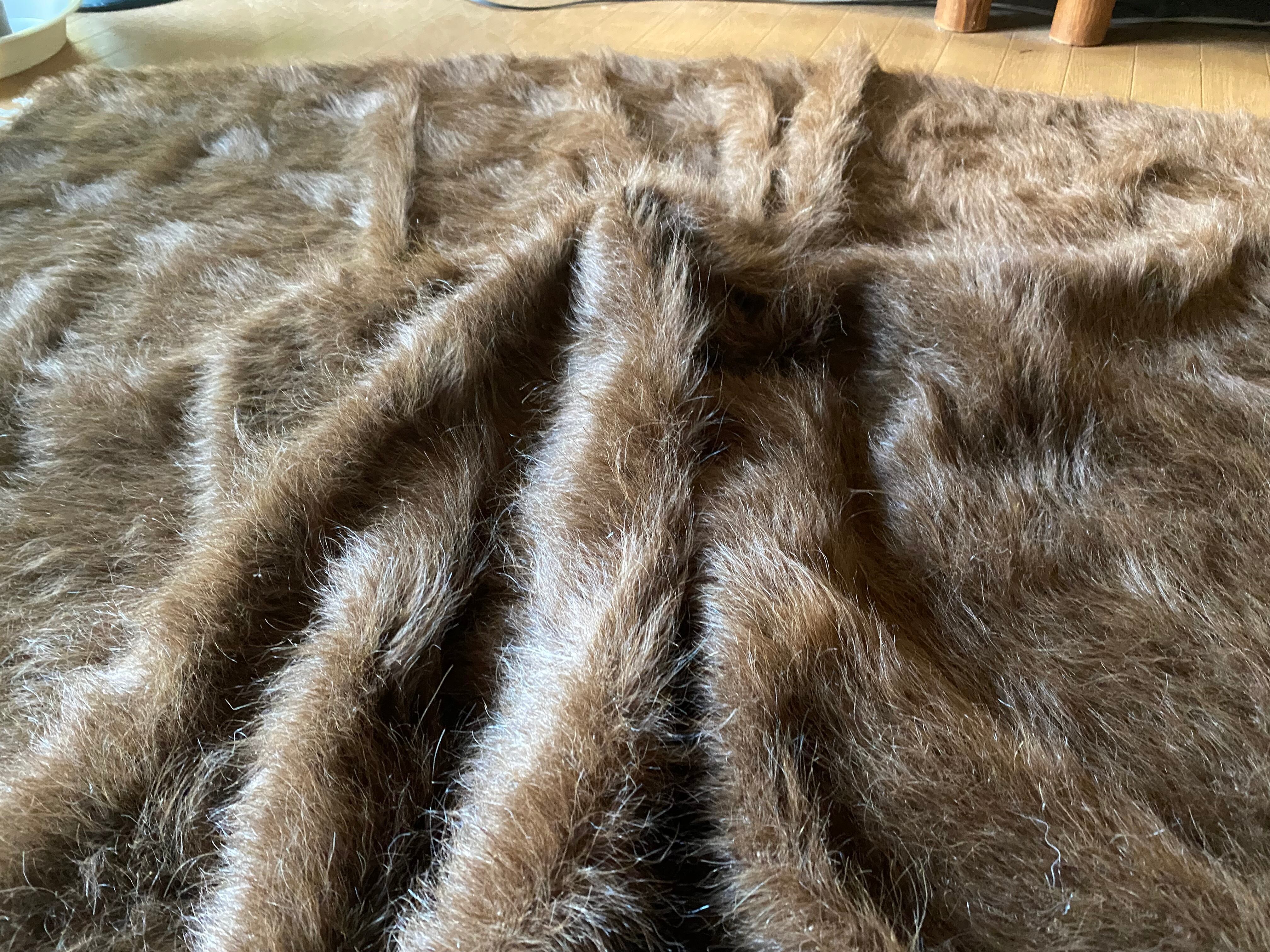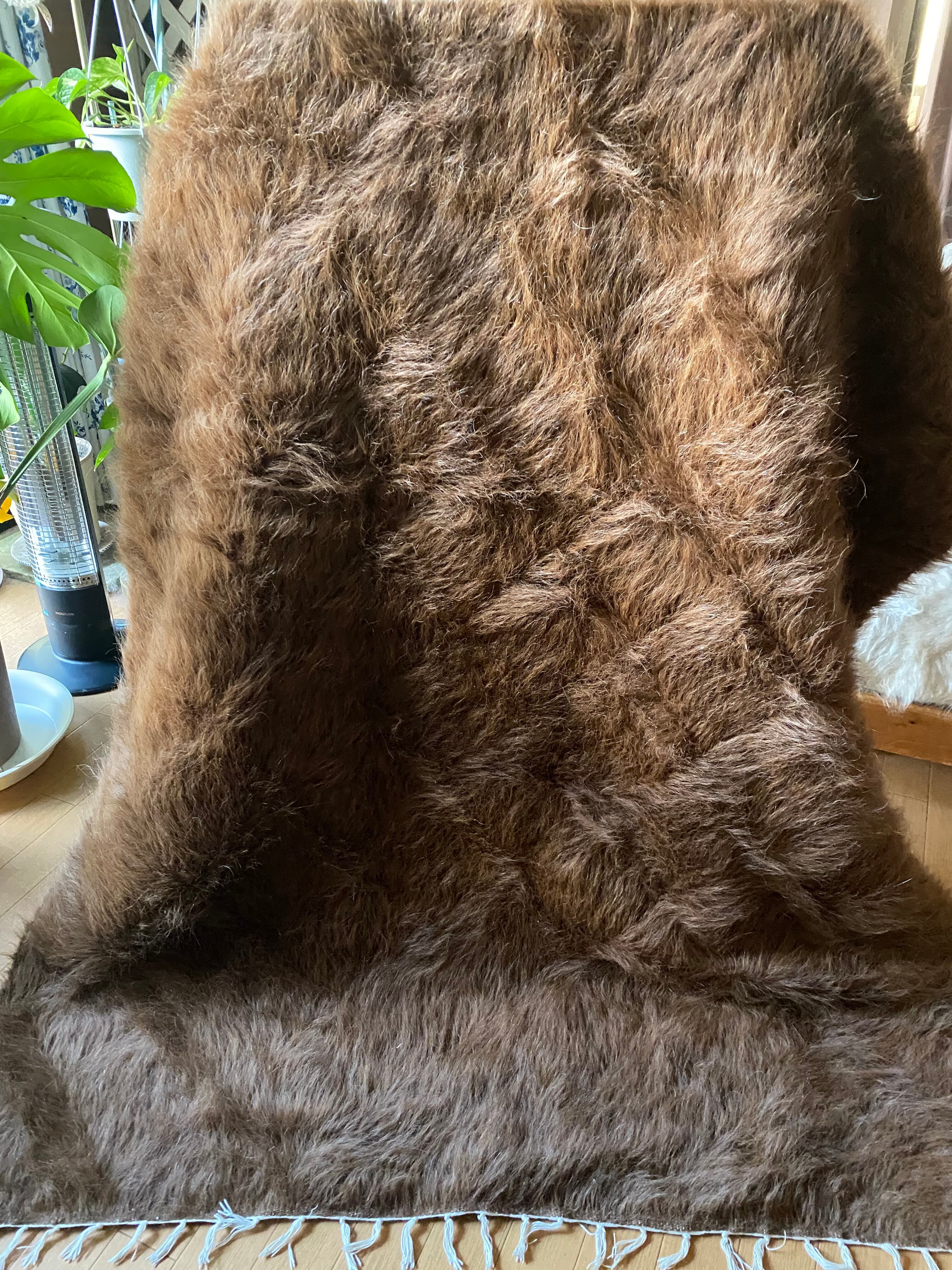 極上の大判シイルトバッタニイェ!アンゴラヤギのモヘア100%キャメル茶!贅沢3キロ以上あるずっしりまるでムートン!動物を傷つけない見事なモヘアの毛布!ラグやベッドに!ソファカバーに新品未使用品!27年来トルコ直輸入卸売価格の当店で!シイルトバッタニイェおすすめ