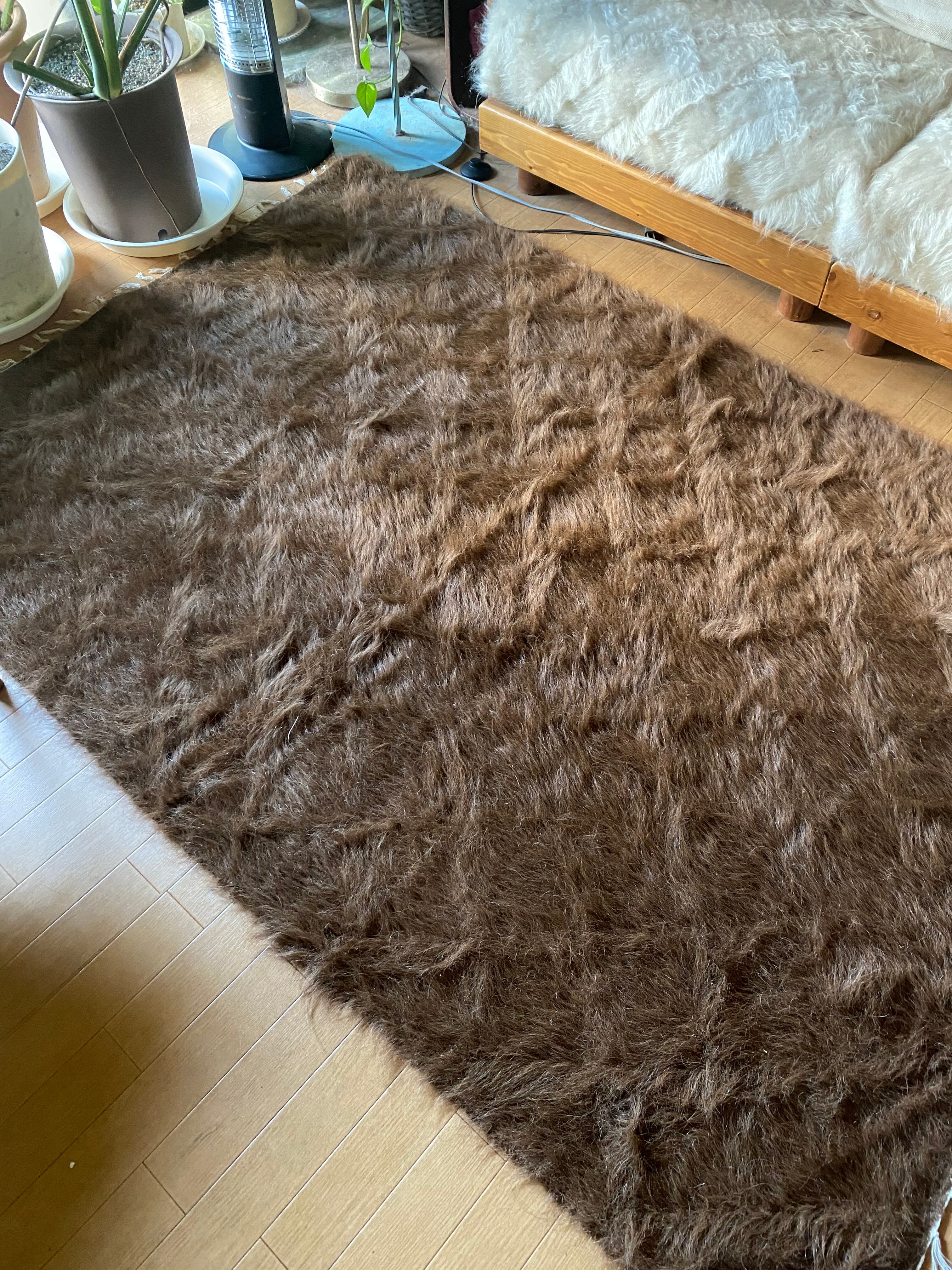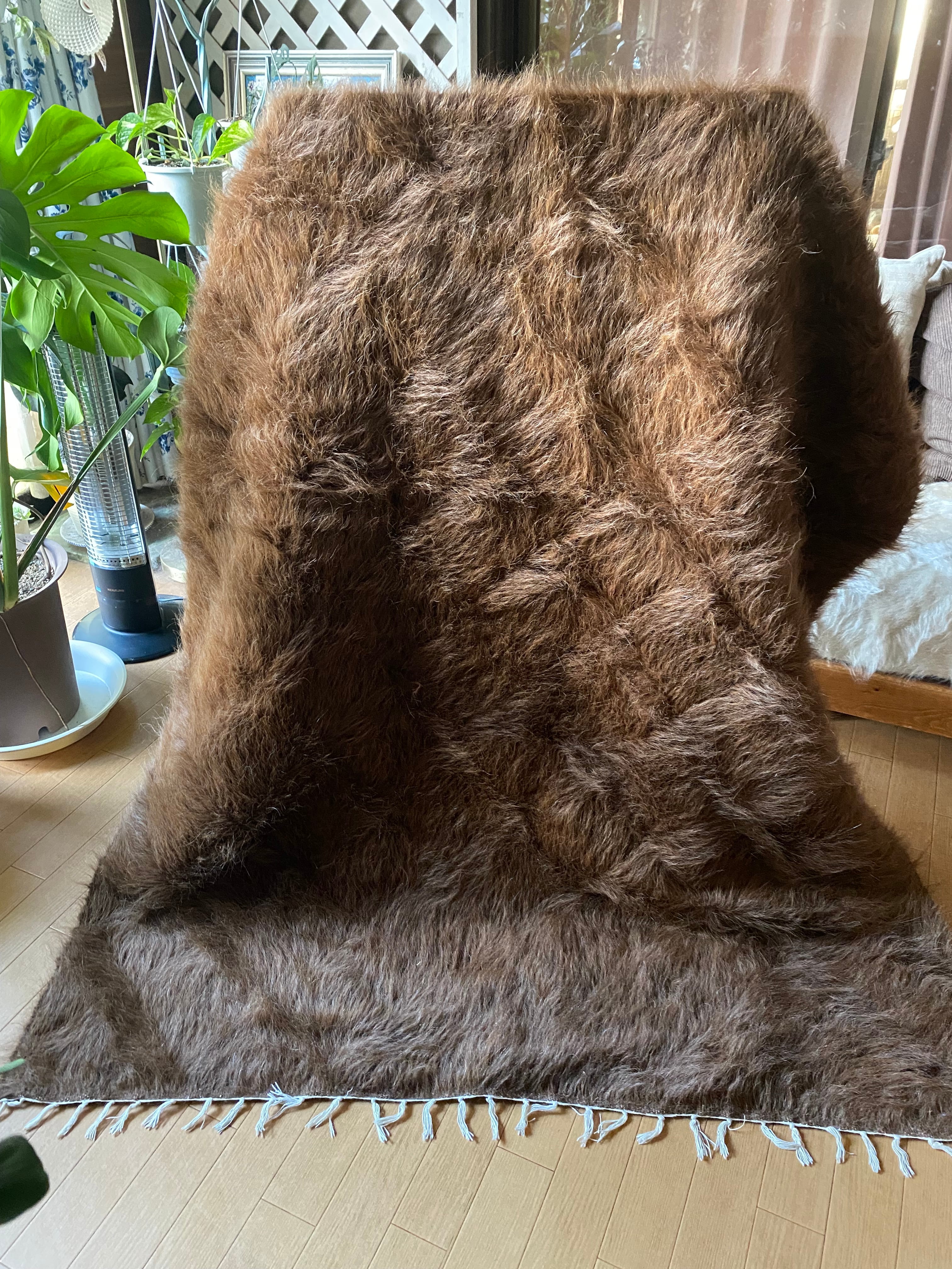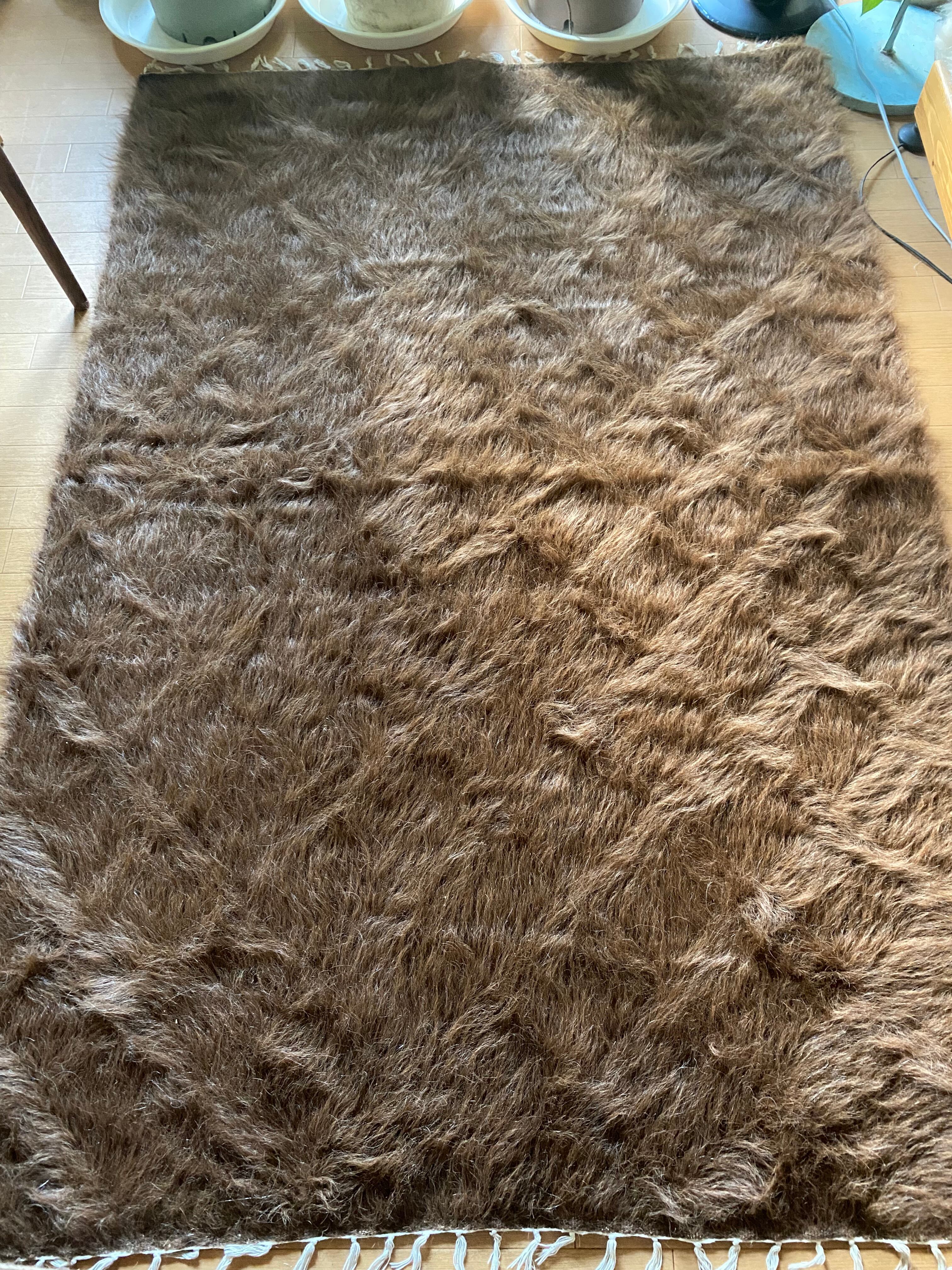 極上の大判シイルトバッタニイェ!アンゴラヤギのモヘア100%キャメル茶!贅沢3キロ以上あるずっしりまるでムートン!動物を傷つけない見事なモヘアの毛布!ラグやベッドに!ソファカバーに新品未使用品!27年来トルコ直輸入卸売価格の当店で!シイルトバッタニイェおすすめ