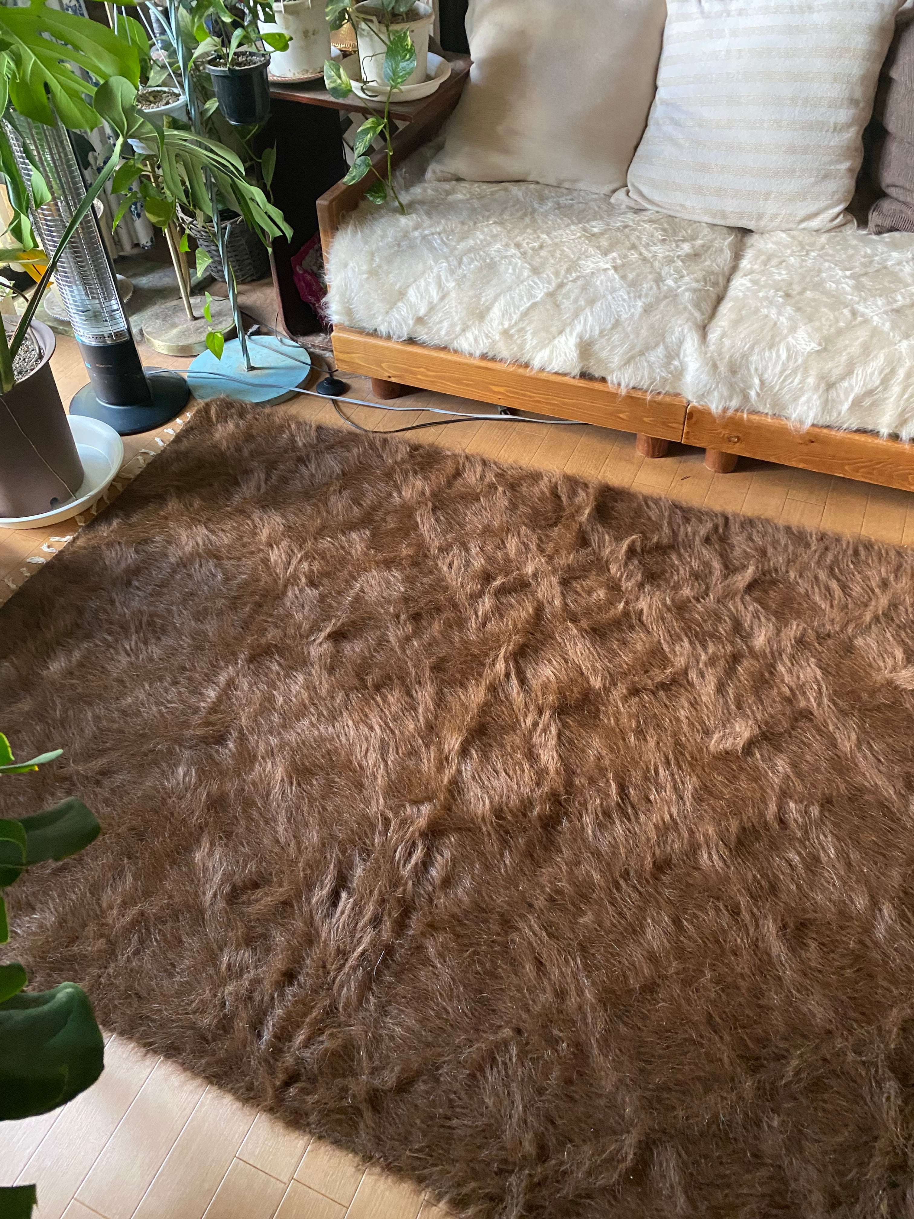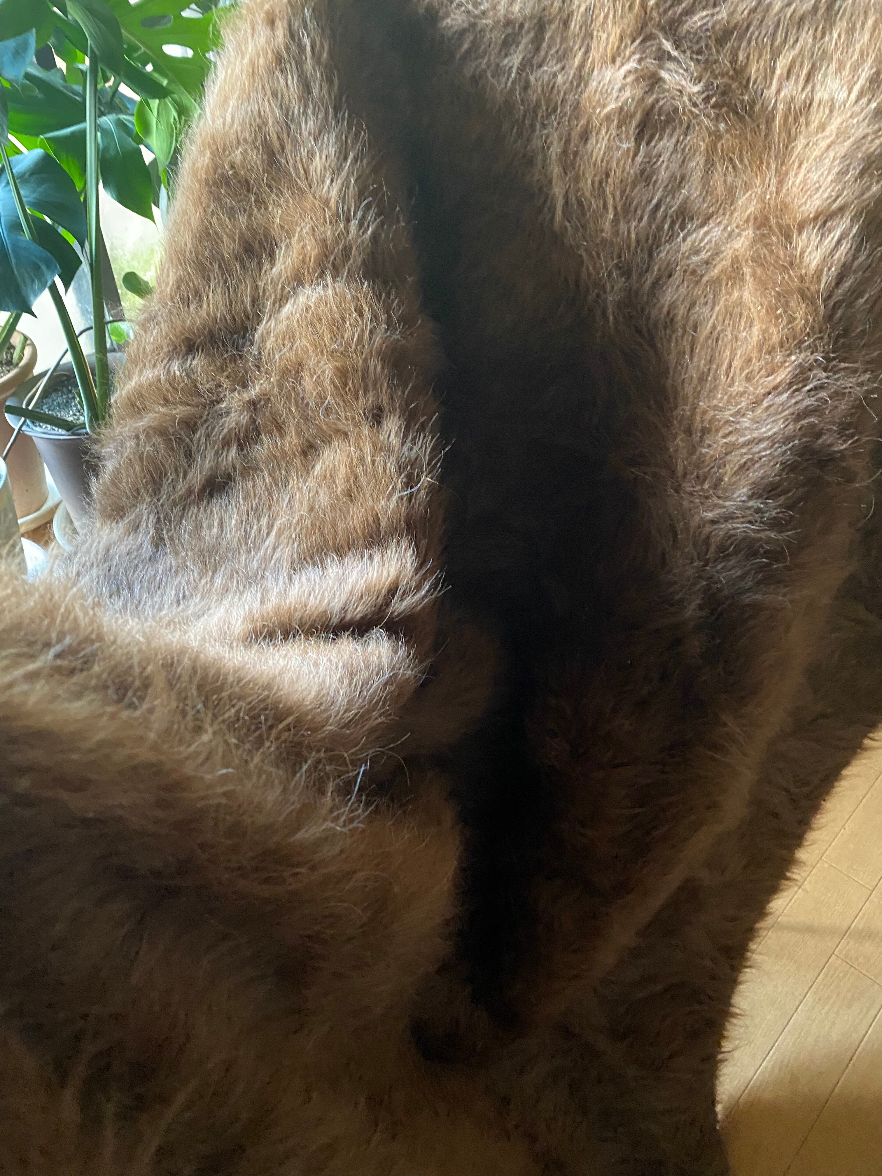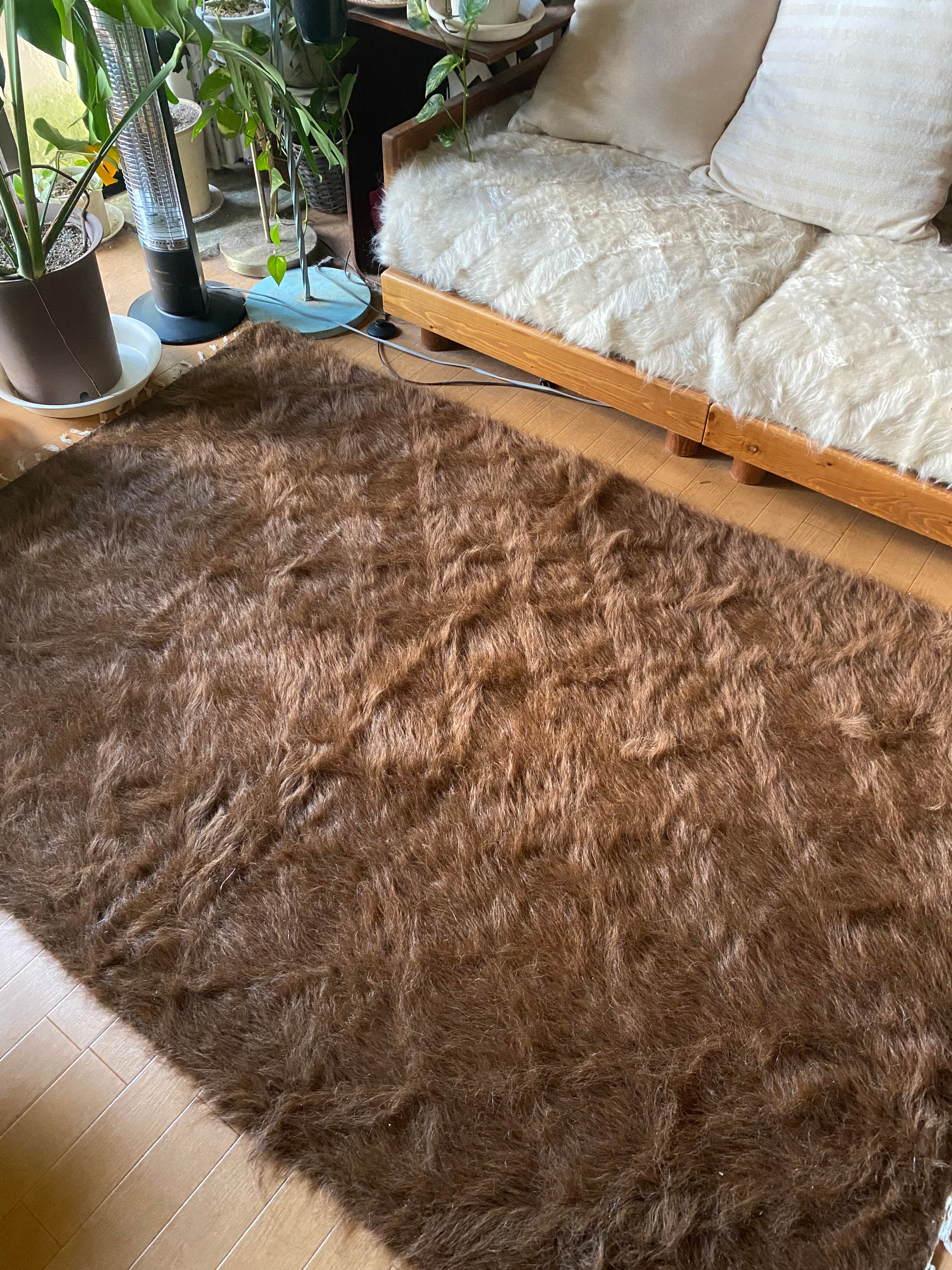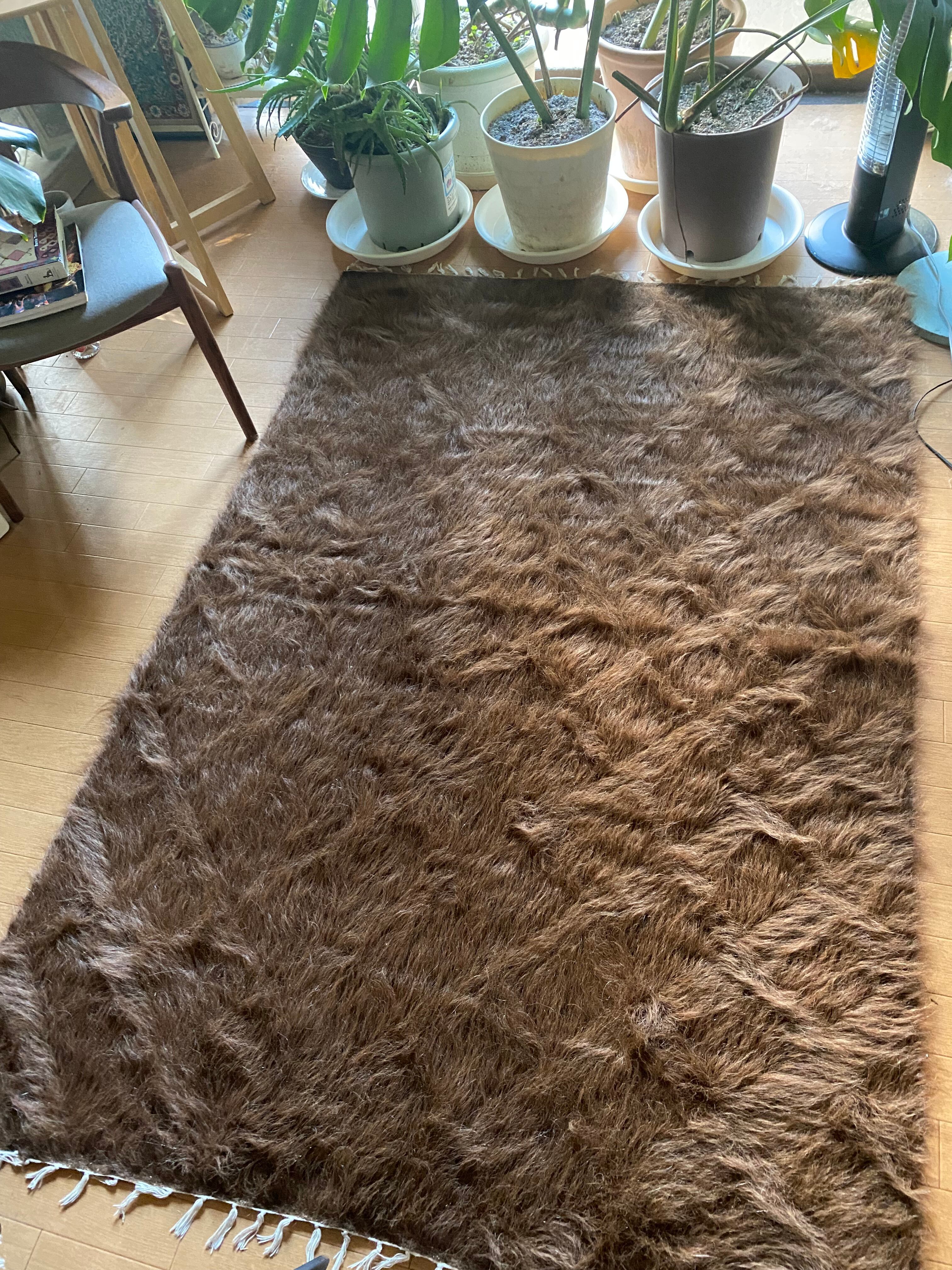 極上の大判シイルトバッタニイェ!アンゴラヤギのモヘア100%キャメル茶!贅沢3キロ以上あるずっしりまるでムートン!動物を傷つけない見事なモヘアの毛布!ラグやベッドに!ソファカバーに新品未使用品!27年来トルコ直輸入卸売価格の当店で!シイルトバッタニイェおすすめ