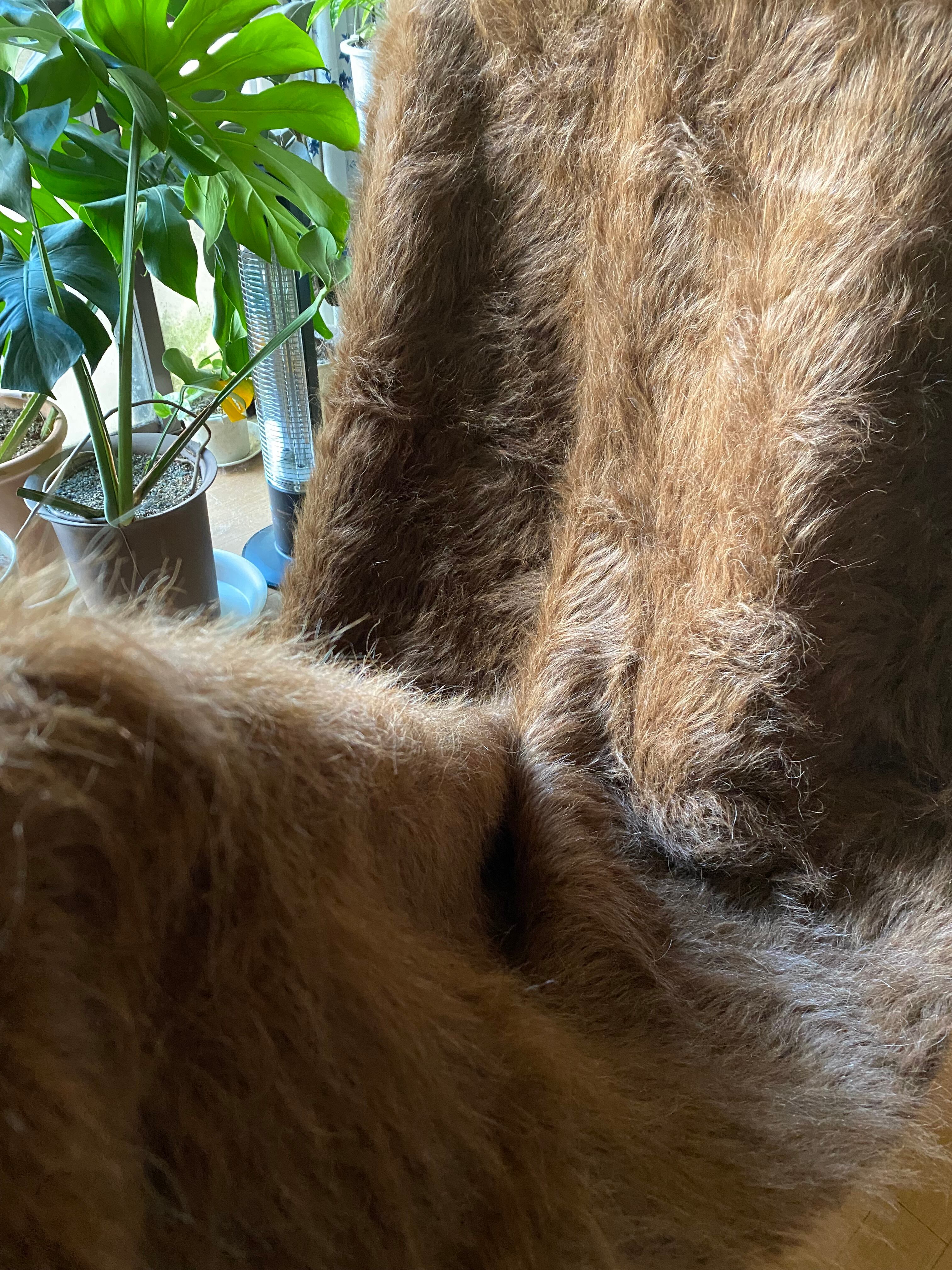 アンゴラヤギのモヘアで織られたほぼ新品未使用ですが、40年ほど織られたもので今織られたものよりさらに密でモヘアの質が大変良いです。新古品です。