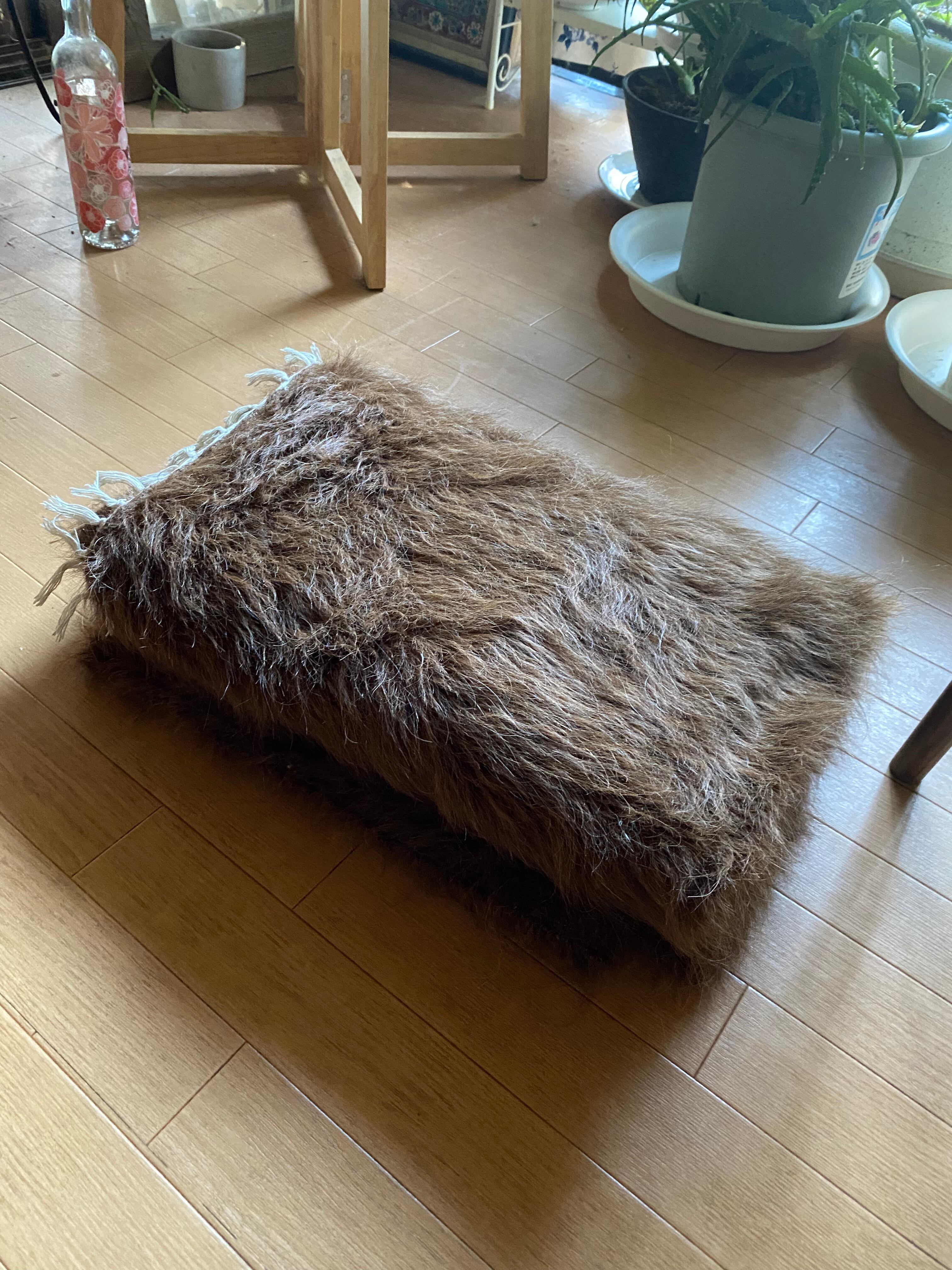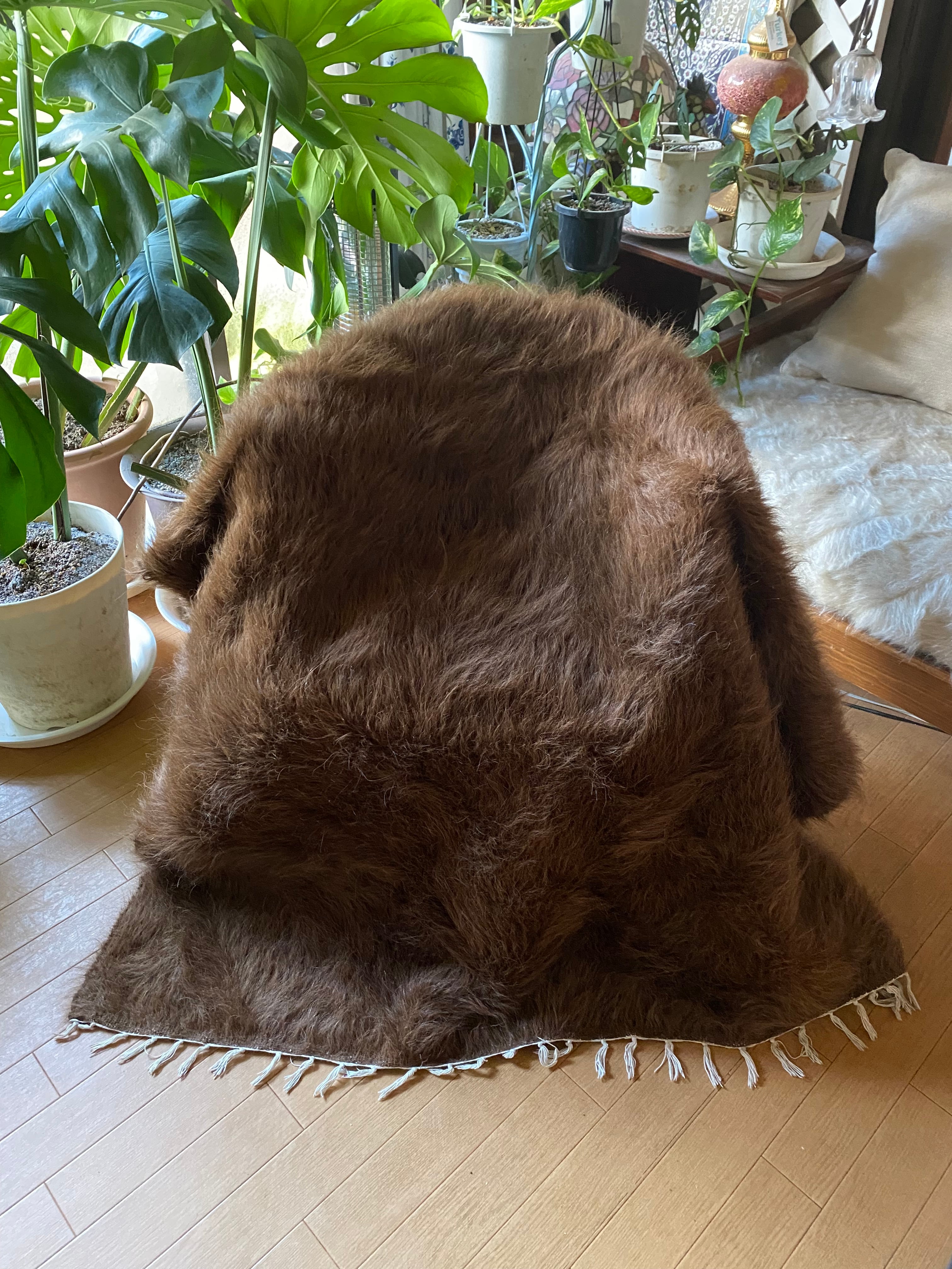 こちら通常の新しいシイルトバッタ二エにくらべ、毛量が多めの素晴らしいアンゴラ山羊100%のシイルトです!