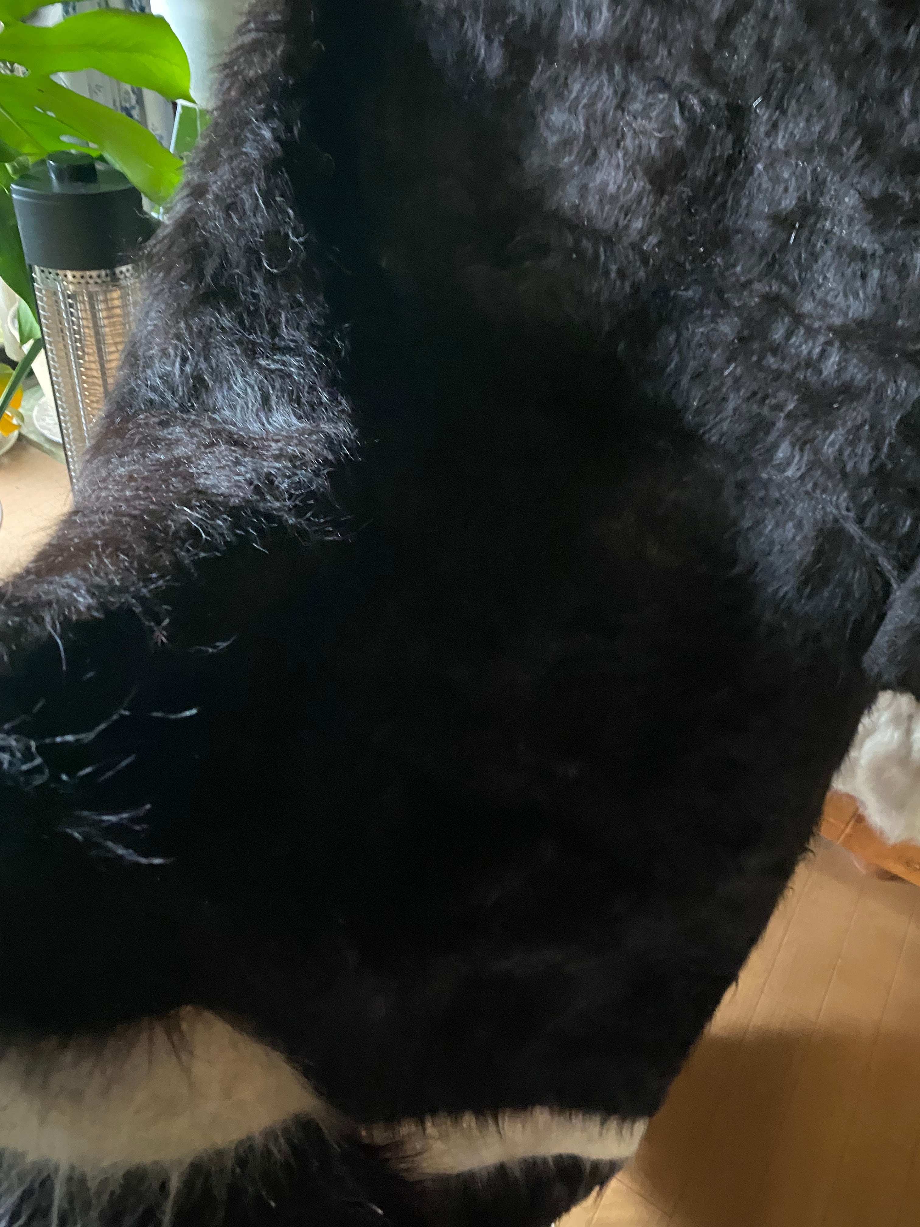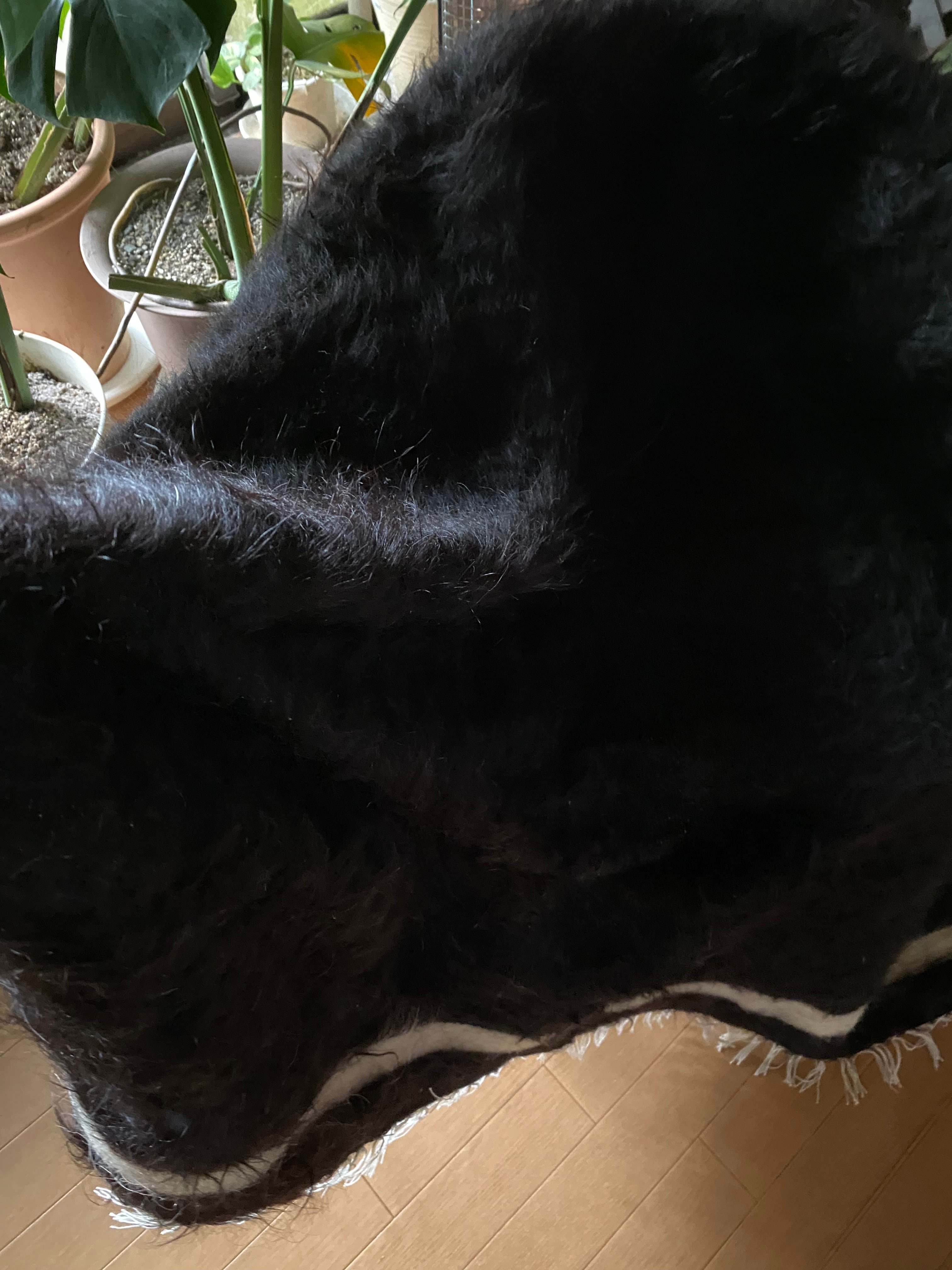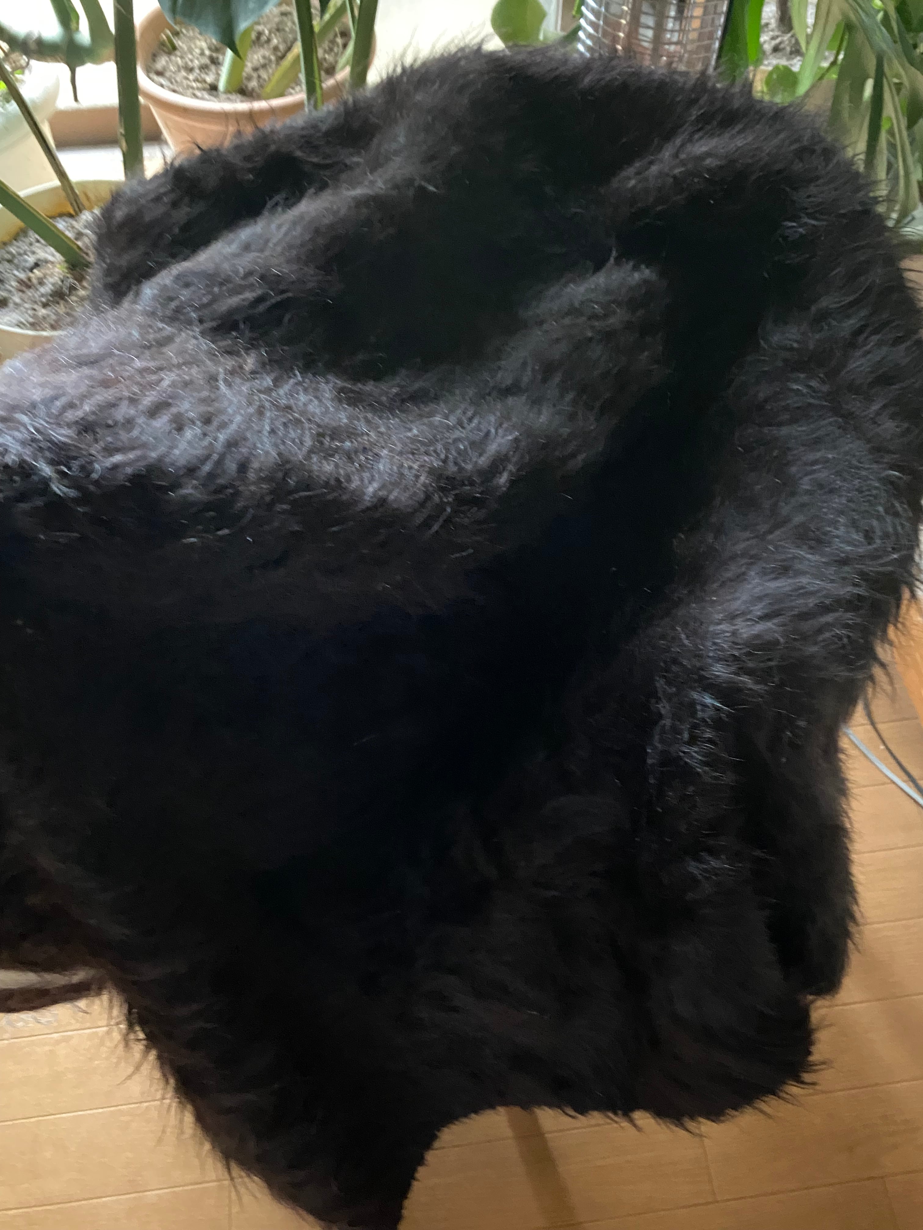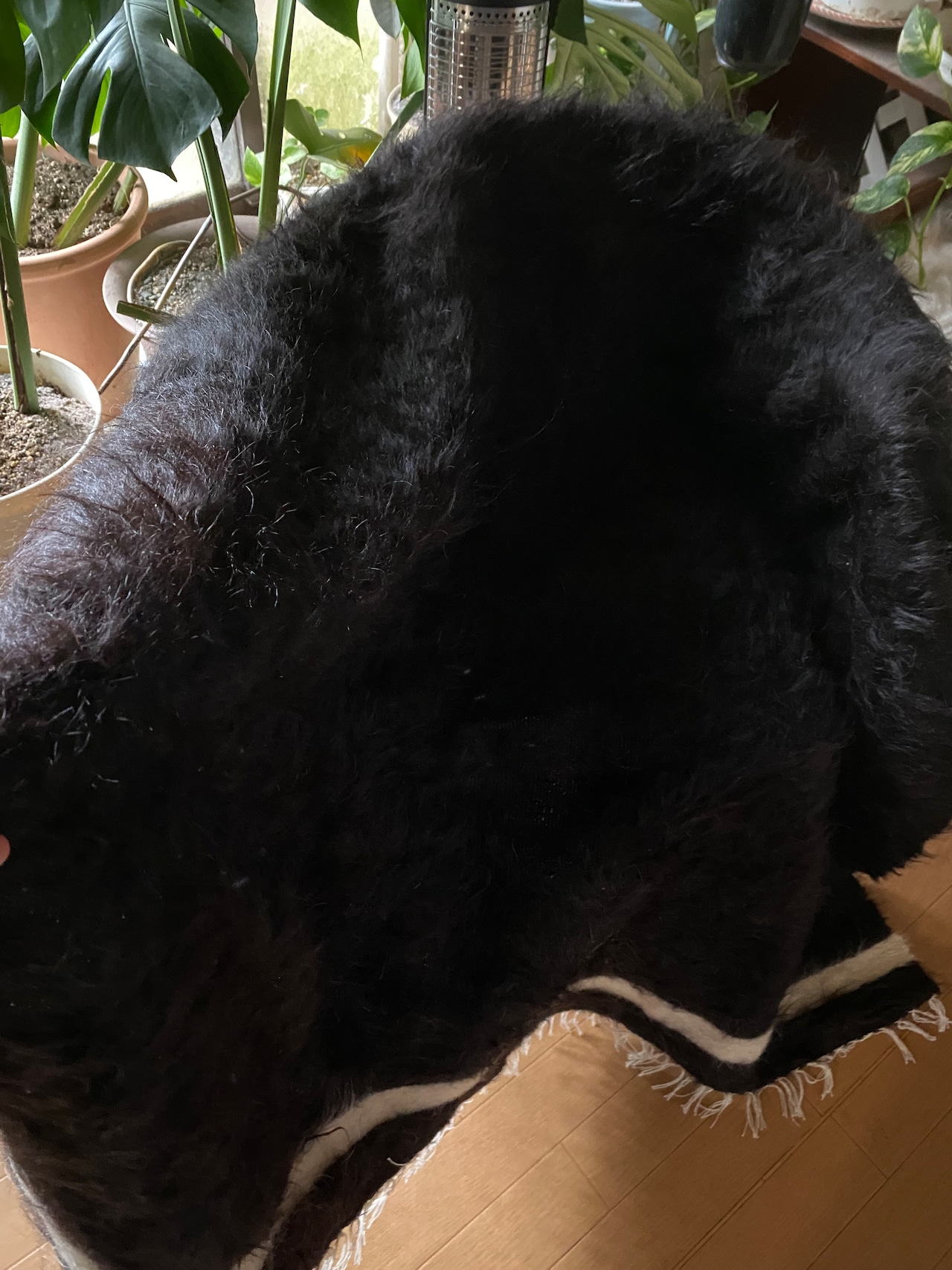大 また黒山羊のモヘア100ですので真っ黒でも光の加減で焦茶もはいり美しいです。